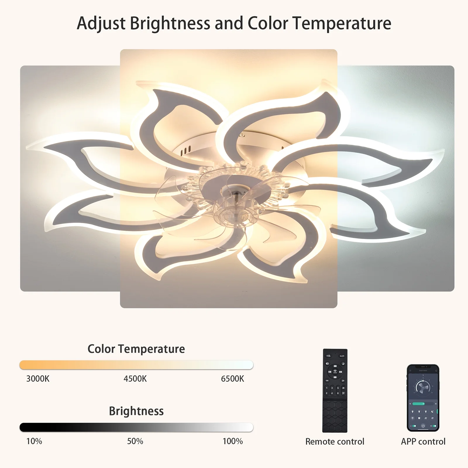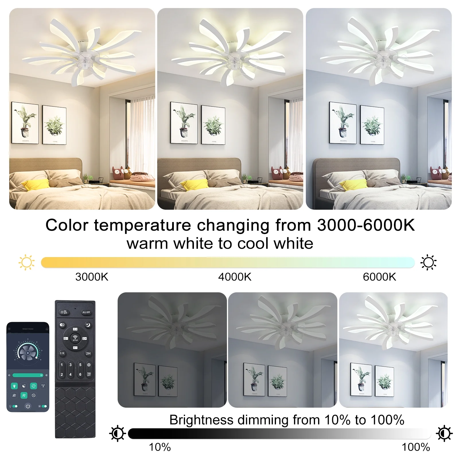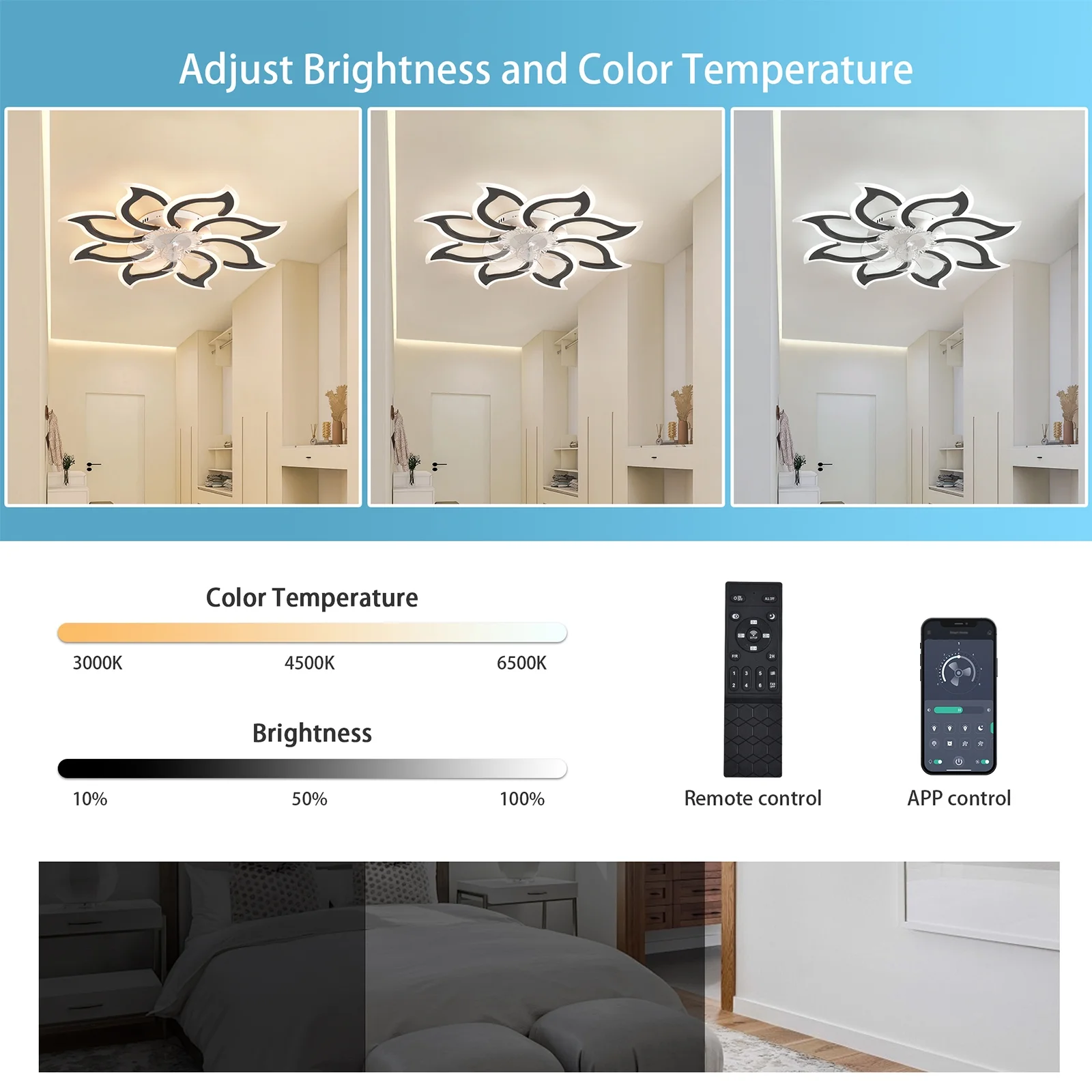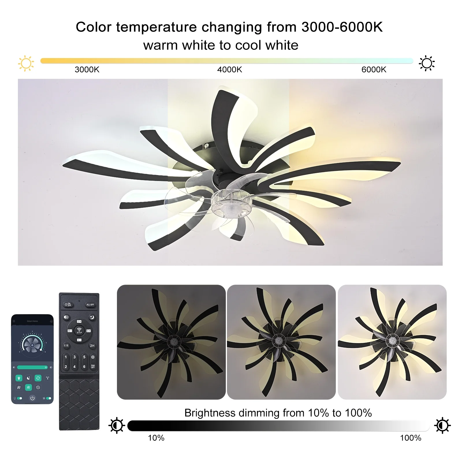 - Color temperature: 3000-6500K (SteplessDimming with remote control/APP)