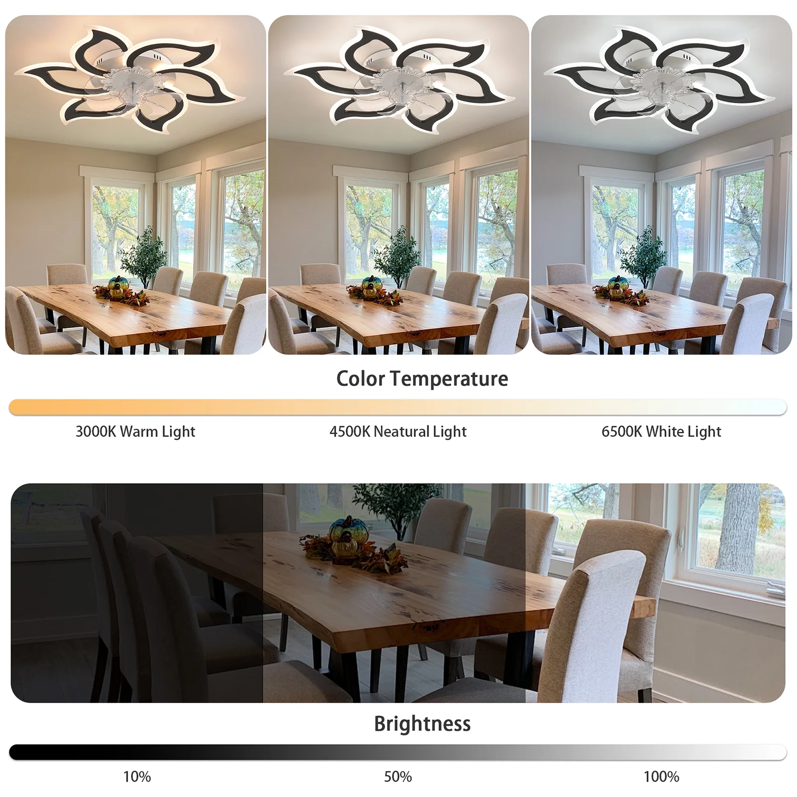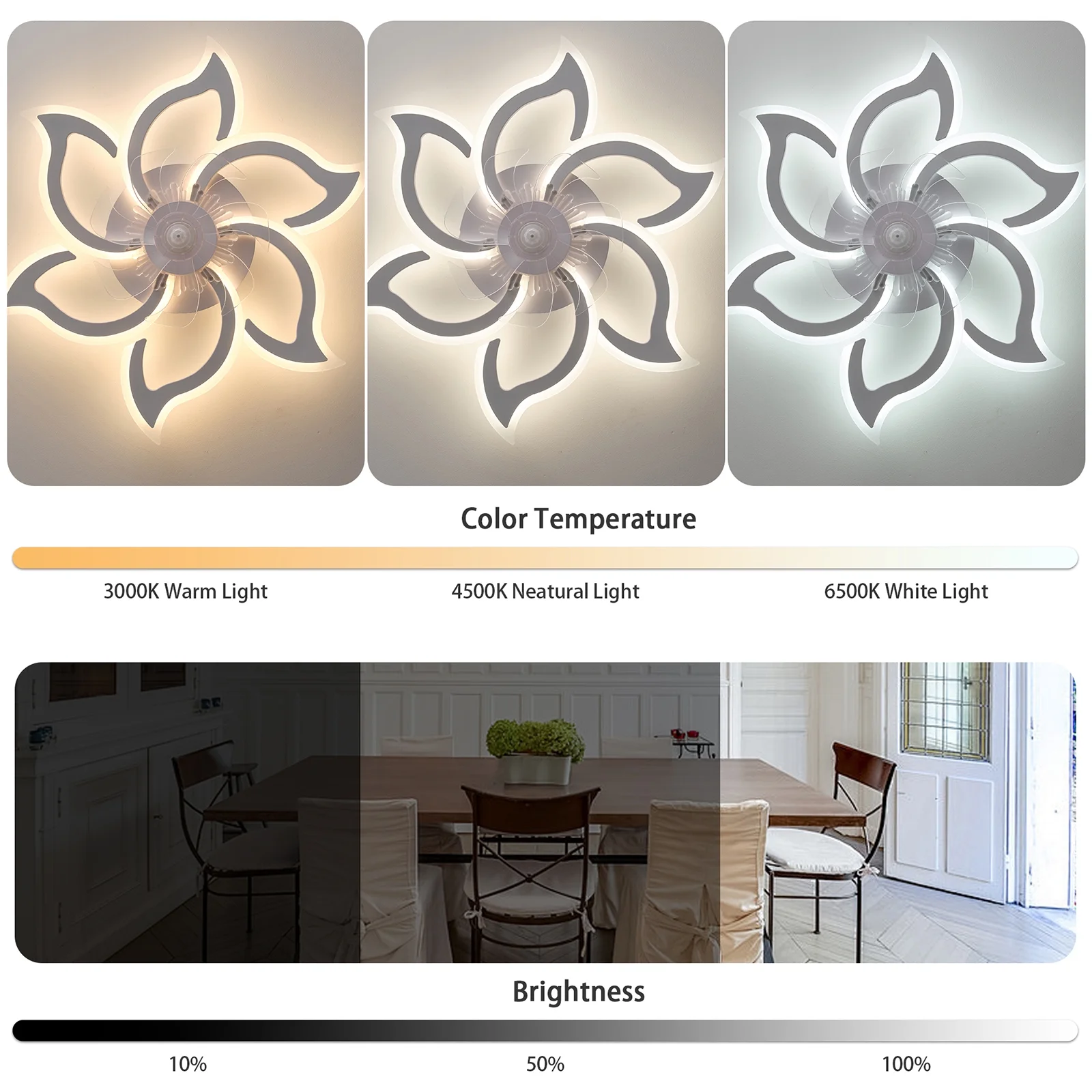 - Brightness: 10%-100%