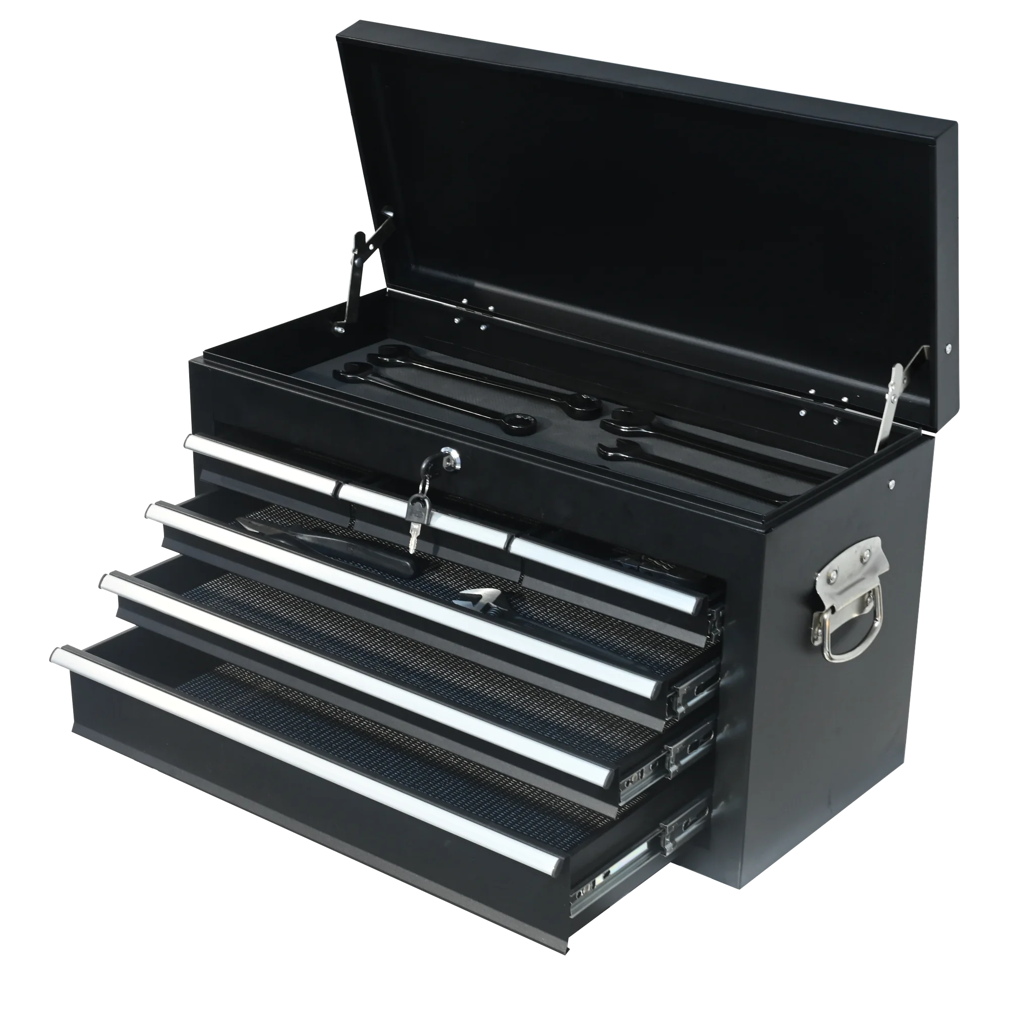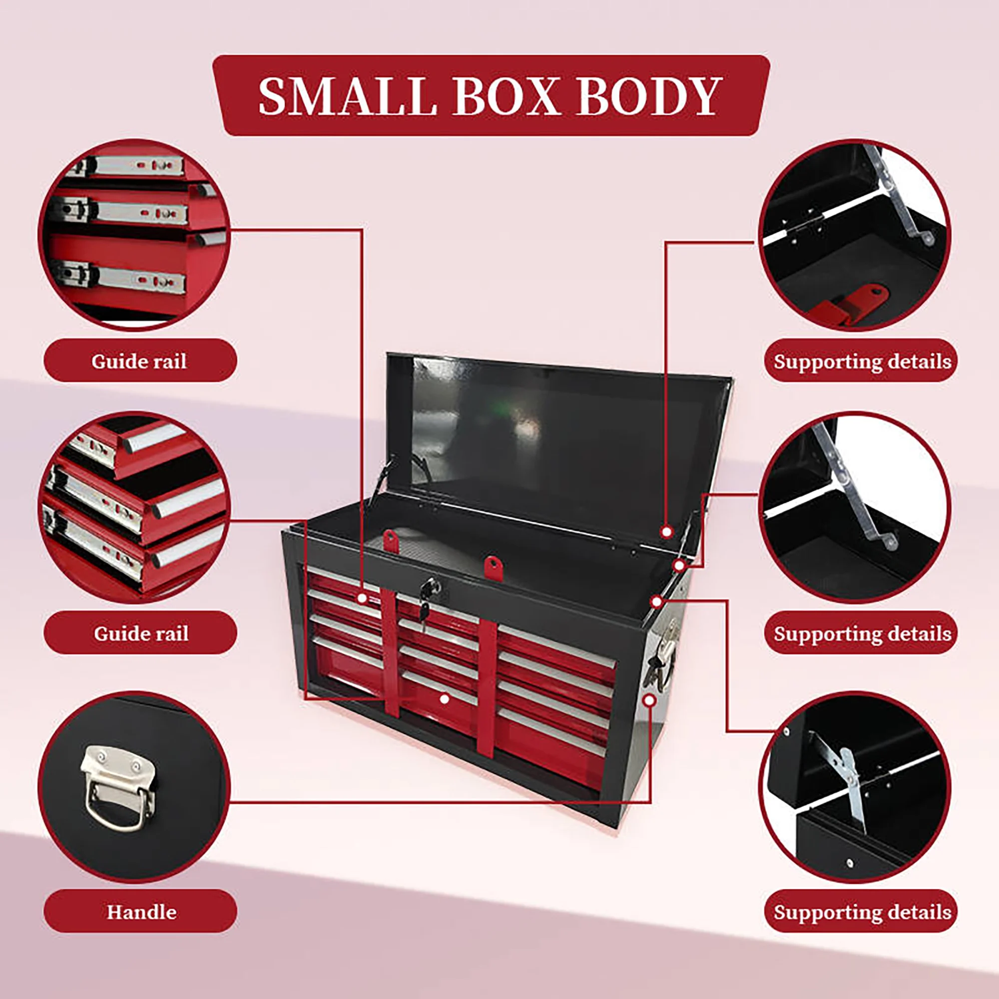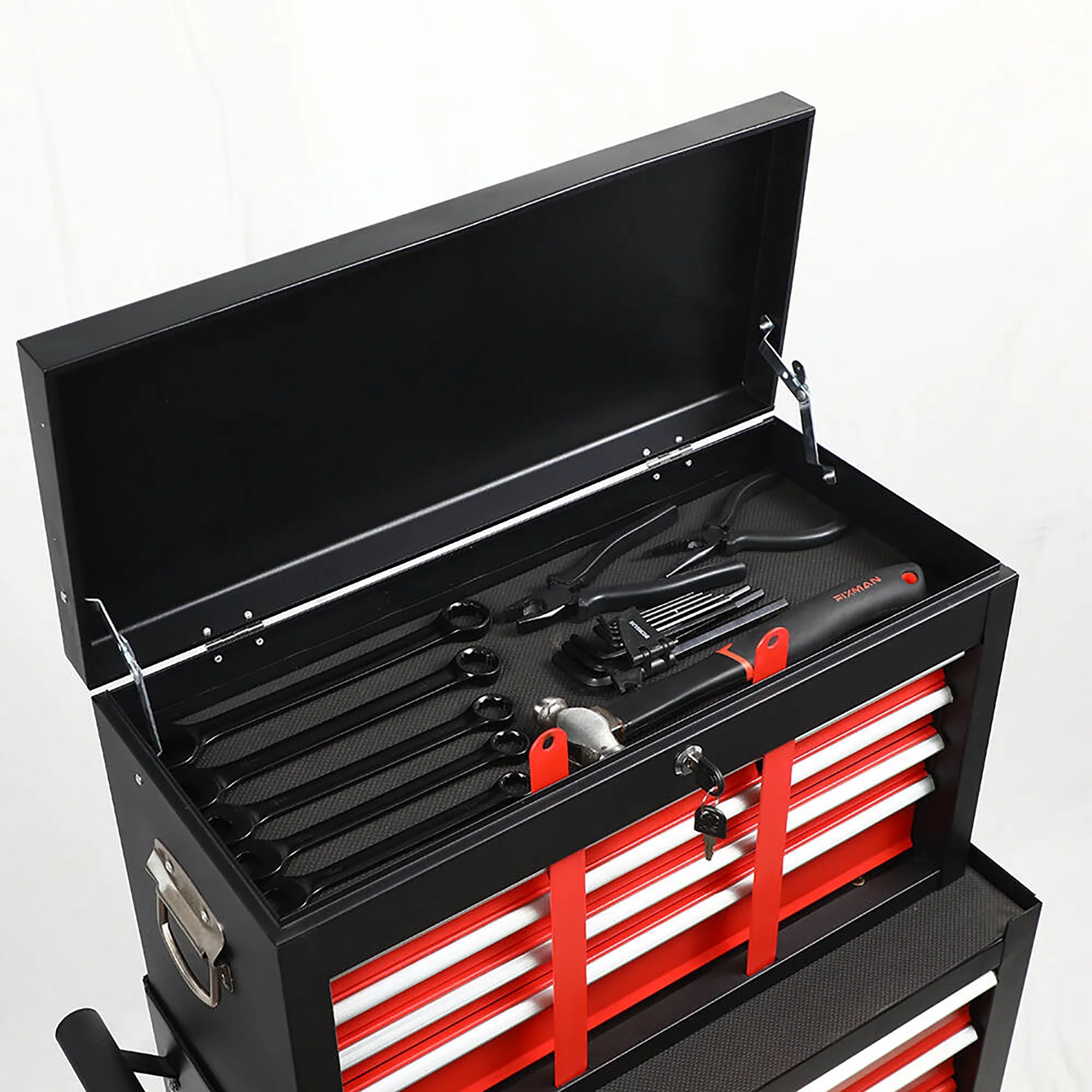 The tool cabinet is equipped with a lock and two levers to prevent the drawer from sliding out when moving. The drawer is also equipped with anti slip pads to prevent internal tools from moving and scratching the product.