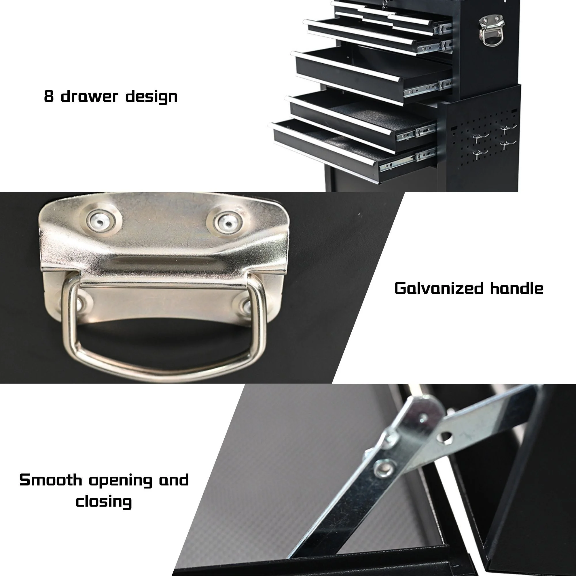 - The combination tool cart has a total of 8 drawers, 1 base cabinet, and hook holes on the side, which can be used and has a large storage space.
