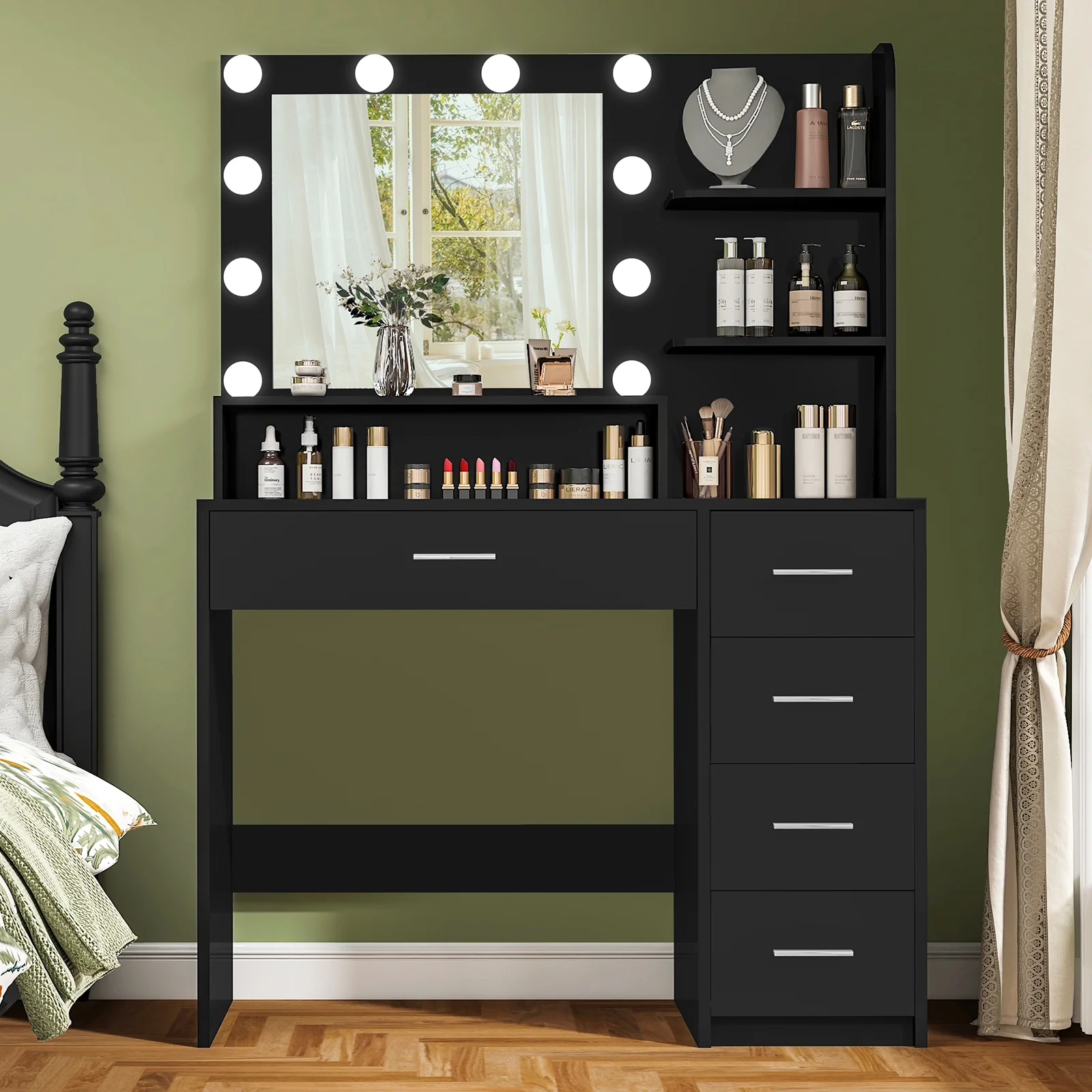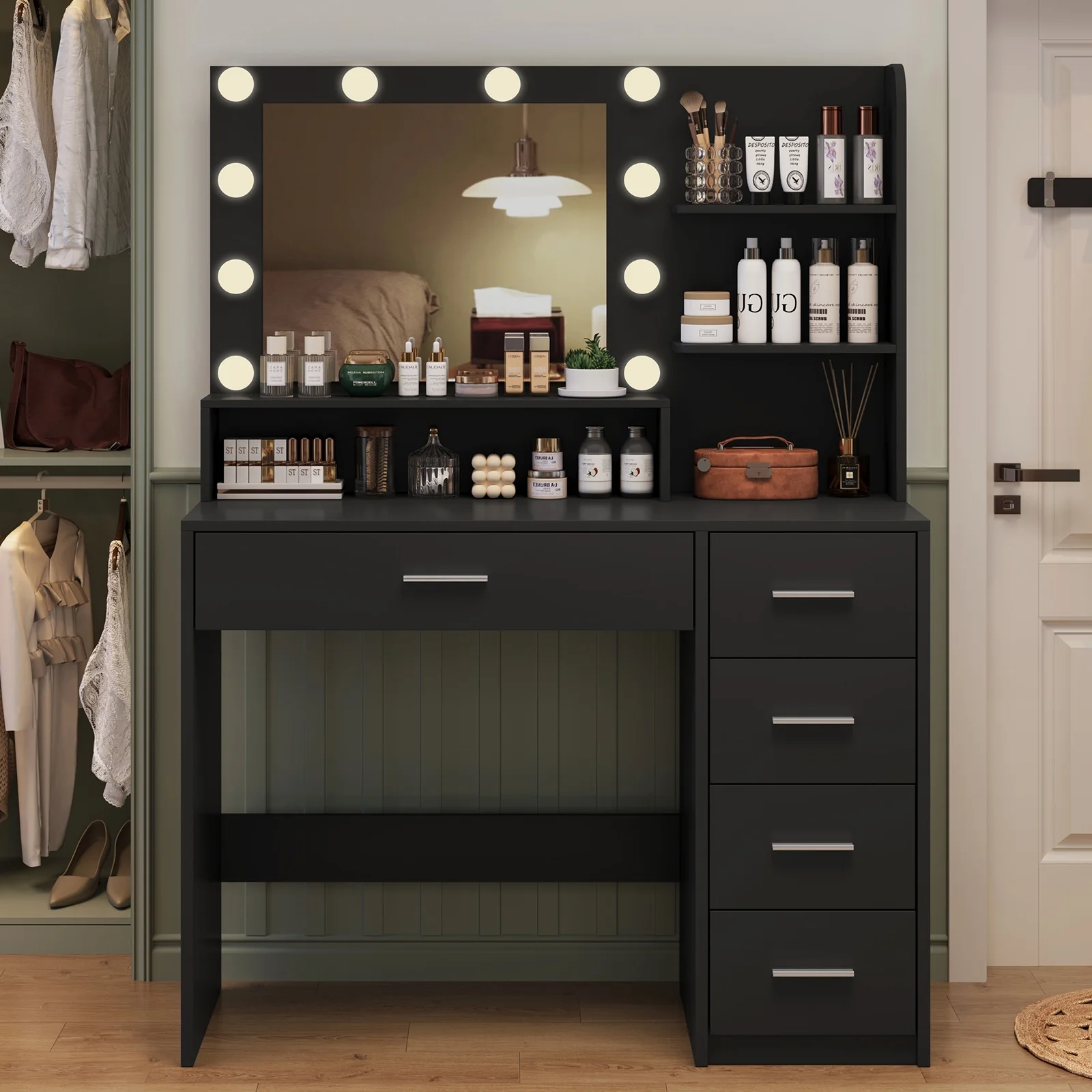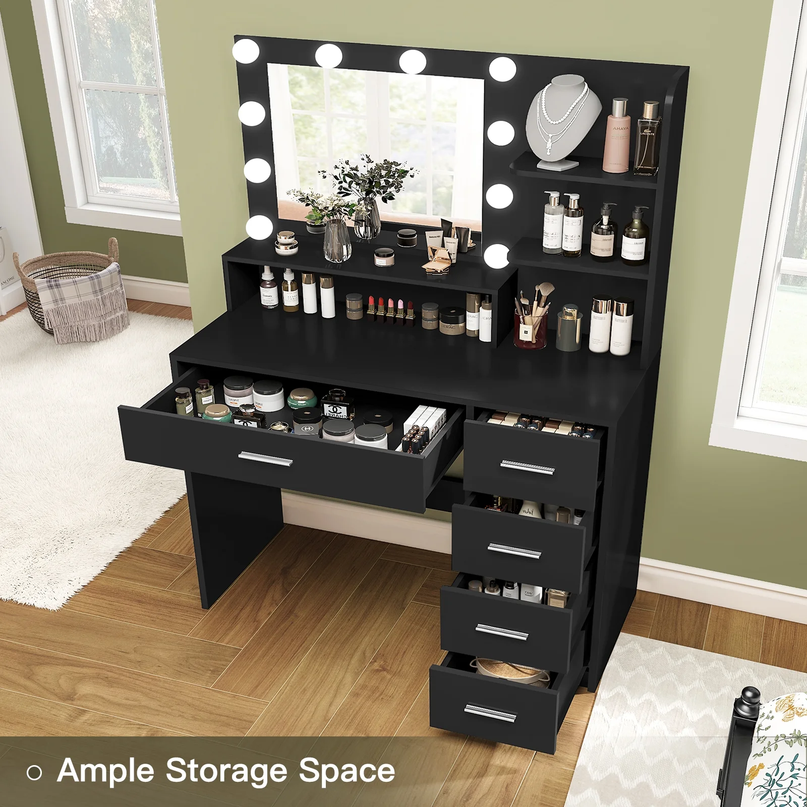 - ��See Yourself Beautifully In the Mirror��Now you never have to worry about having inadequate lighting when applying makeup! The vanity table features 10 LED light bulbs with 3 color modes(cool white, warm white or warm yellow), and the brightness of each color of light can be adjusted to meet your needs for different brightness when applying makeup.