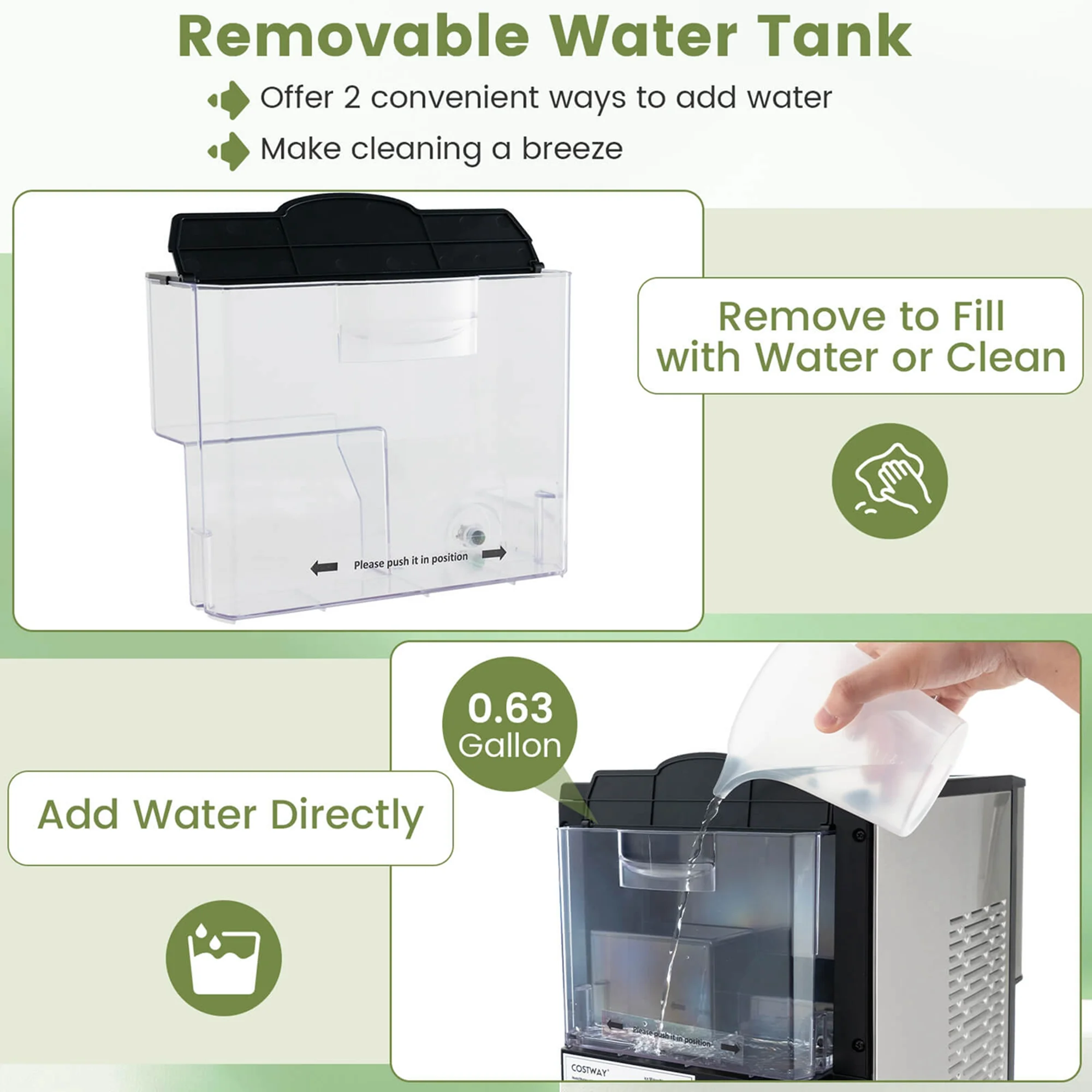 2 ways to add water, offering convenience
