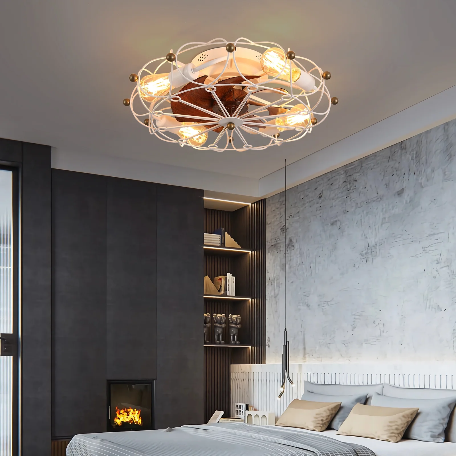 Small footprint, big style.?? This 20" caged ceiling fan combines rugged metal framing with seven sleek plastic blades, delivering powerful airflow in compact spaces like kitchens, bedrooms, or home offices. The embedded LED light (included) and six-speed reversible motor (remote-controlled) offer year-round comfort, while the ultra-low 5.7" profile fits snugly under standard ceilings. Weighing just 6.2 lbs with an open cage design, this fan blends industrial edge with modern minimalism��perfect for rustic, farmhouse, or urban loft aesthetics.