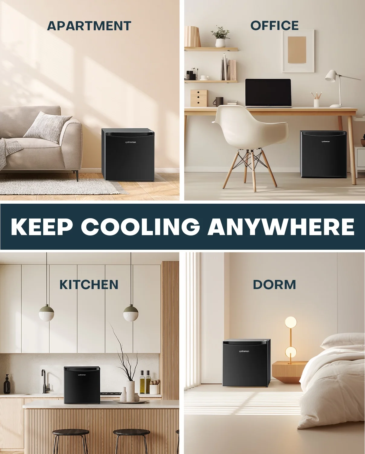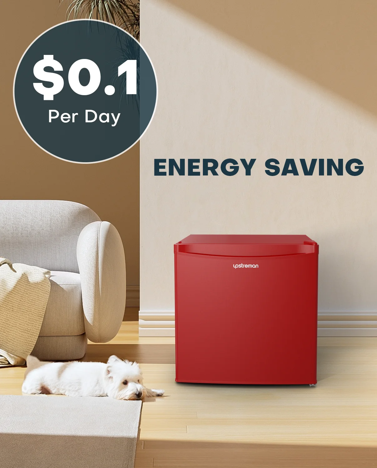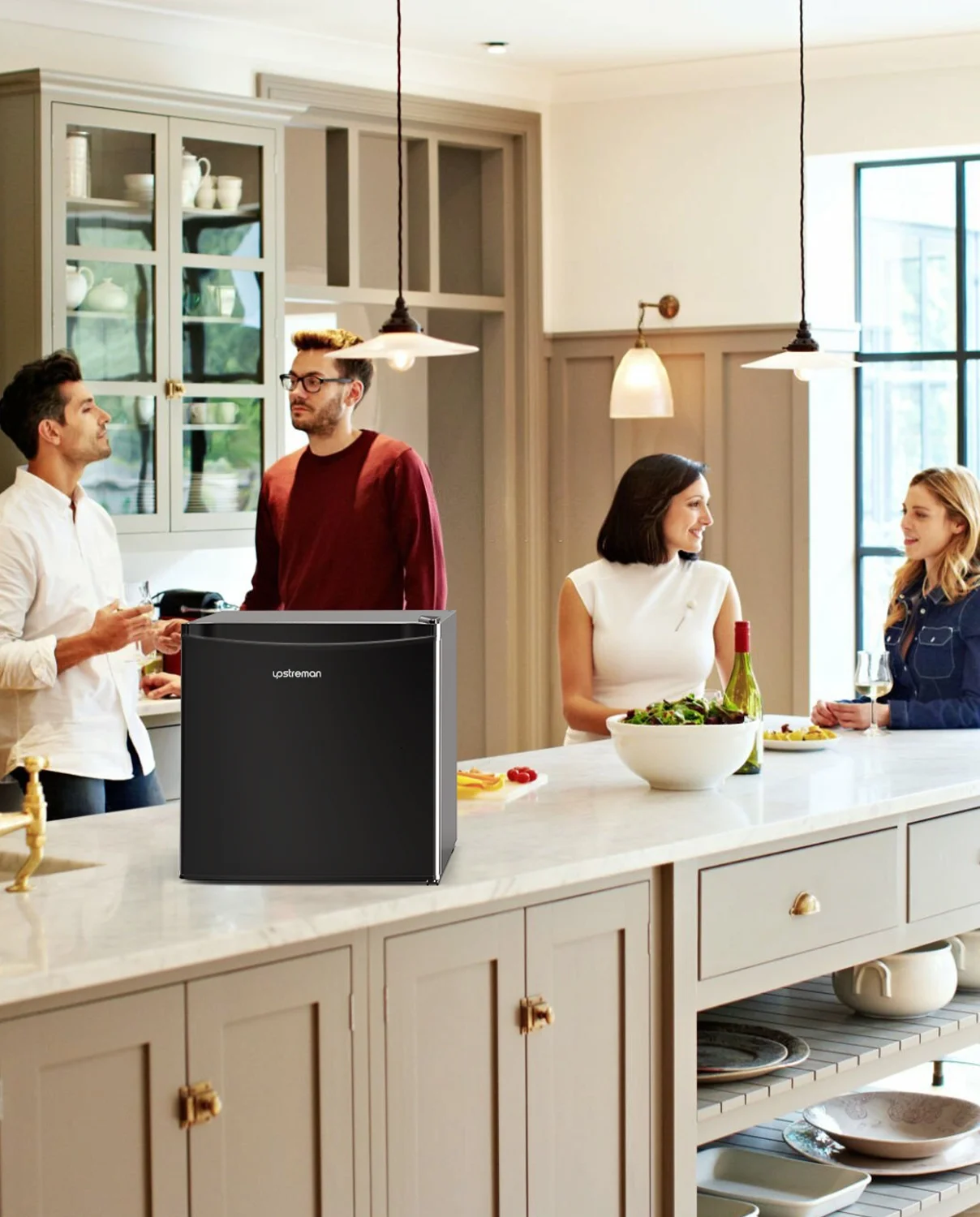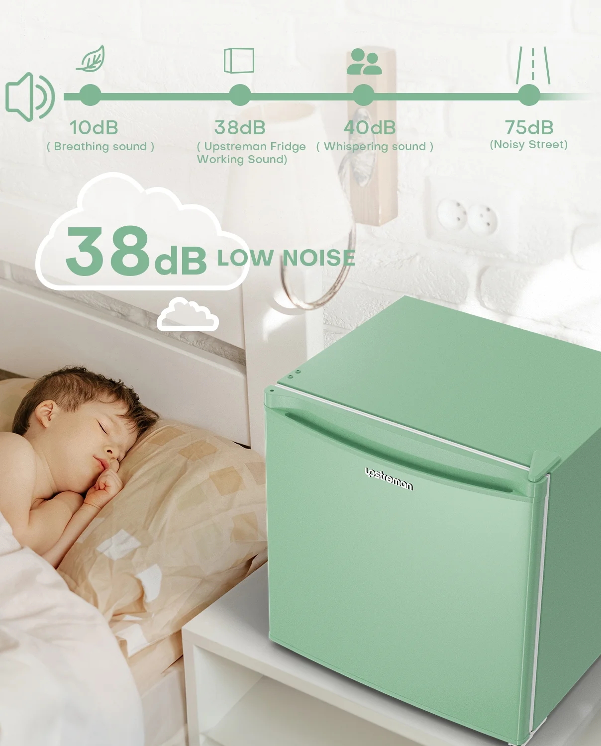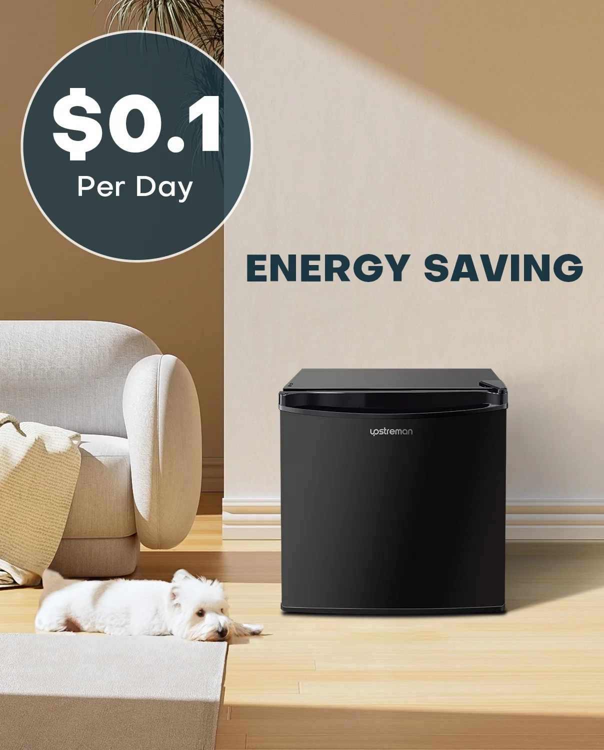 Upstreman 1.7 cu ft Mini Fridge with Freezer Single Door Compact Refrigerator, Low Noise, Energy Saving, Adjustable Temperature, Reversible Door, for Home Office Dorm, Black FR17