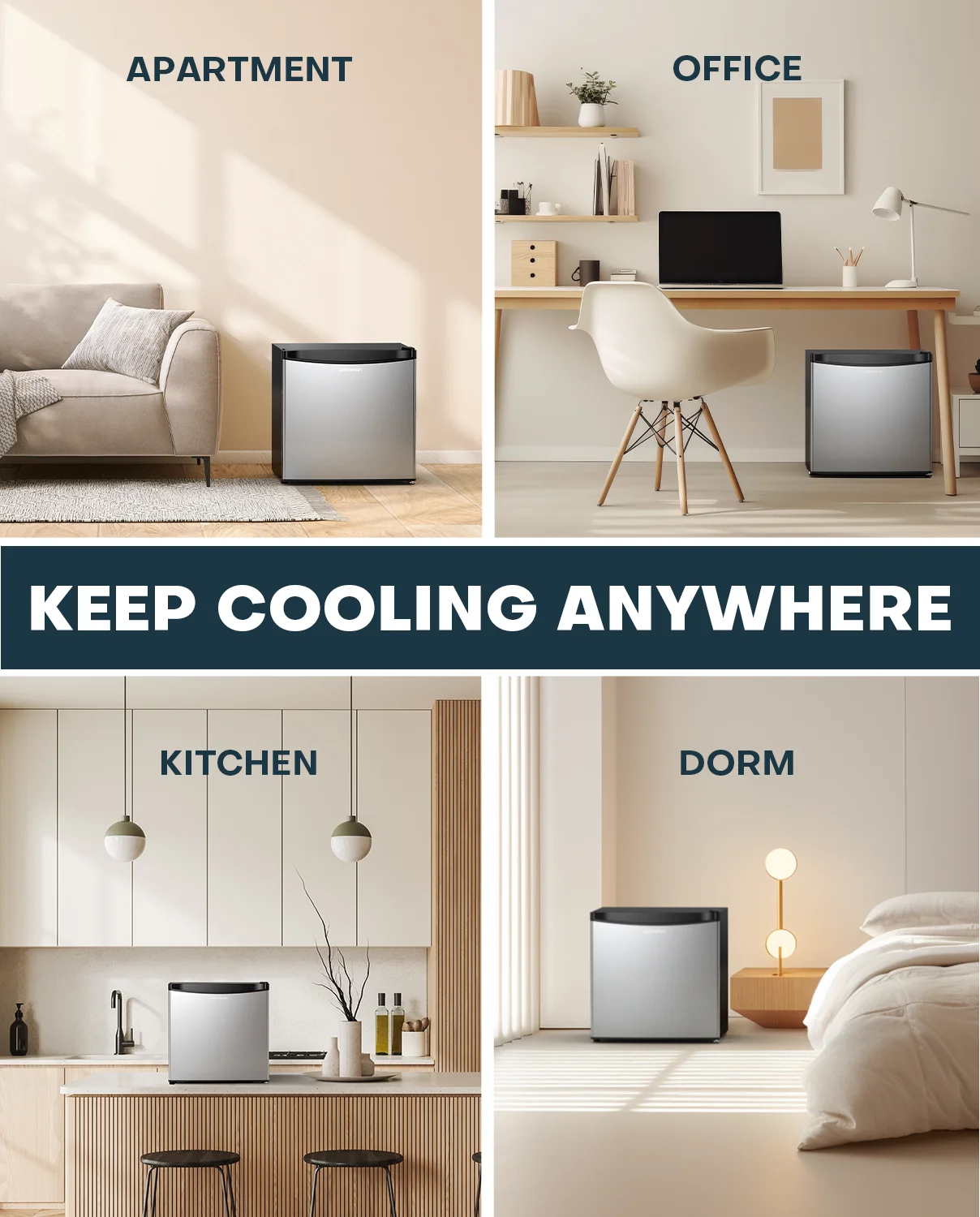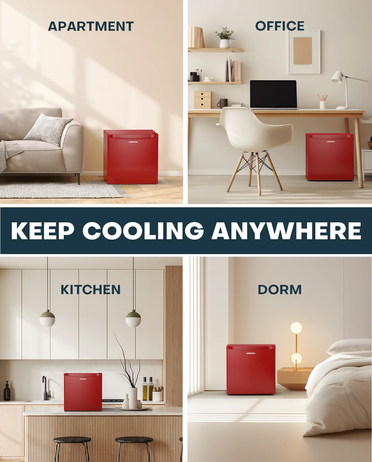 - Compact Design and Space Saving: The 18.9" W x 17.7" D x 19.3" H mini fridge will not take up your too much space and is perfect for small spaces such as dorm, office or apartment. You can put it on the counter or under your desk.