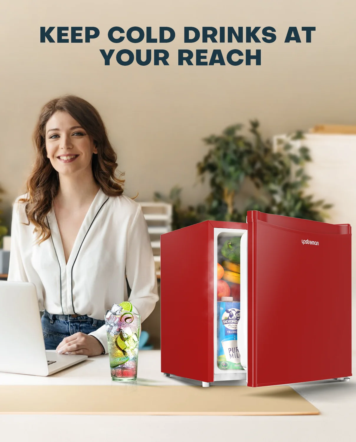 Large Capacity: The 1.7 cu ft large capacity of mini fridge for bedroom can hold about 60 cans of 330 ml cola, provide ample storage space for your canned and bottled beverage, fresh fruit and vegetable, etc., to keep your food fresh.