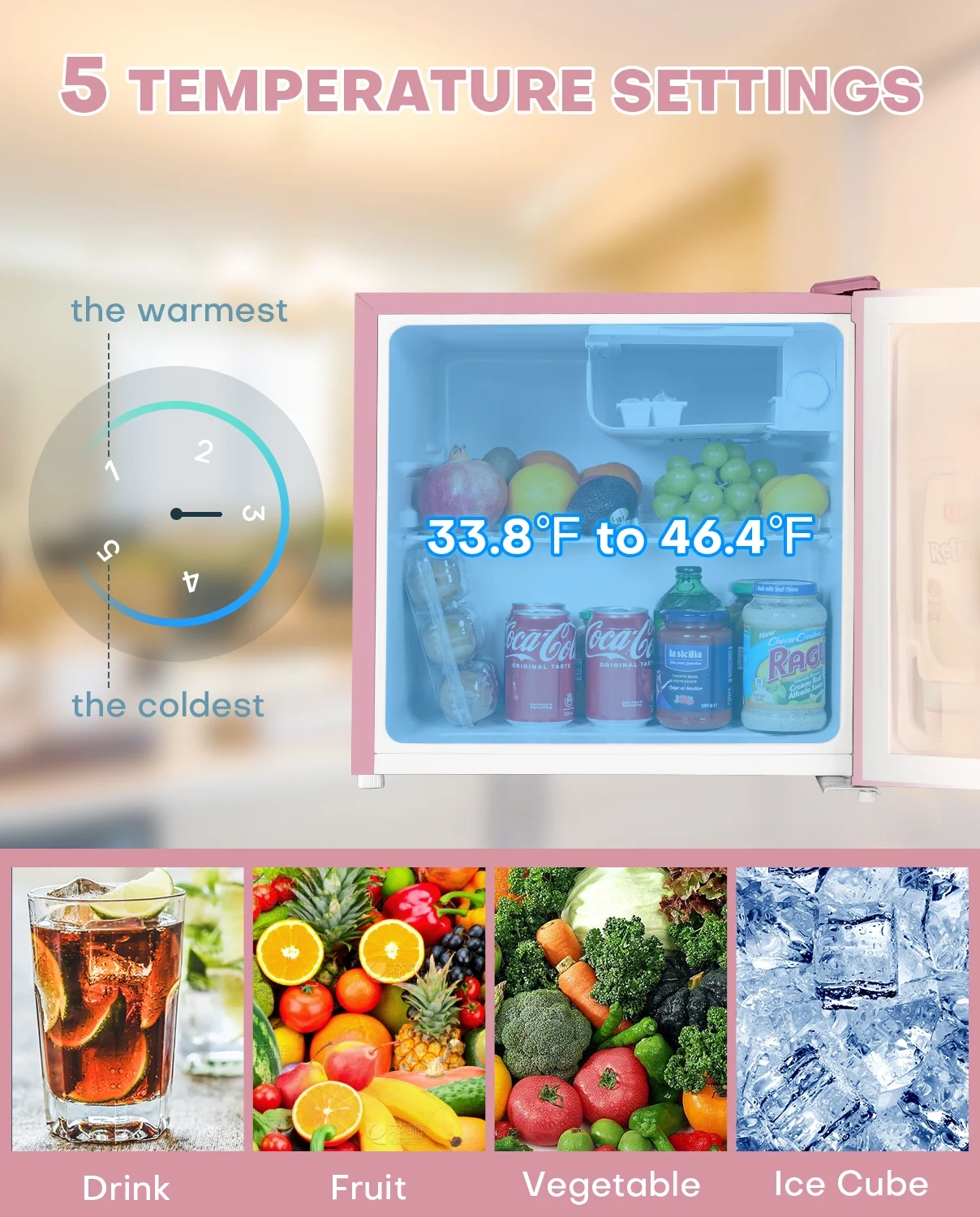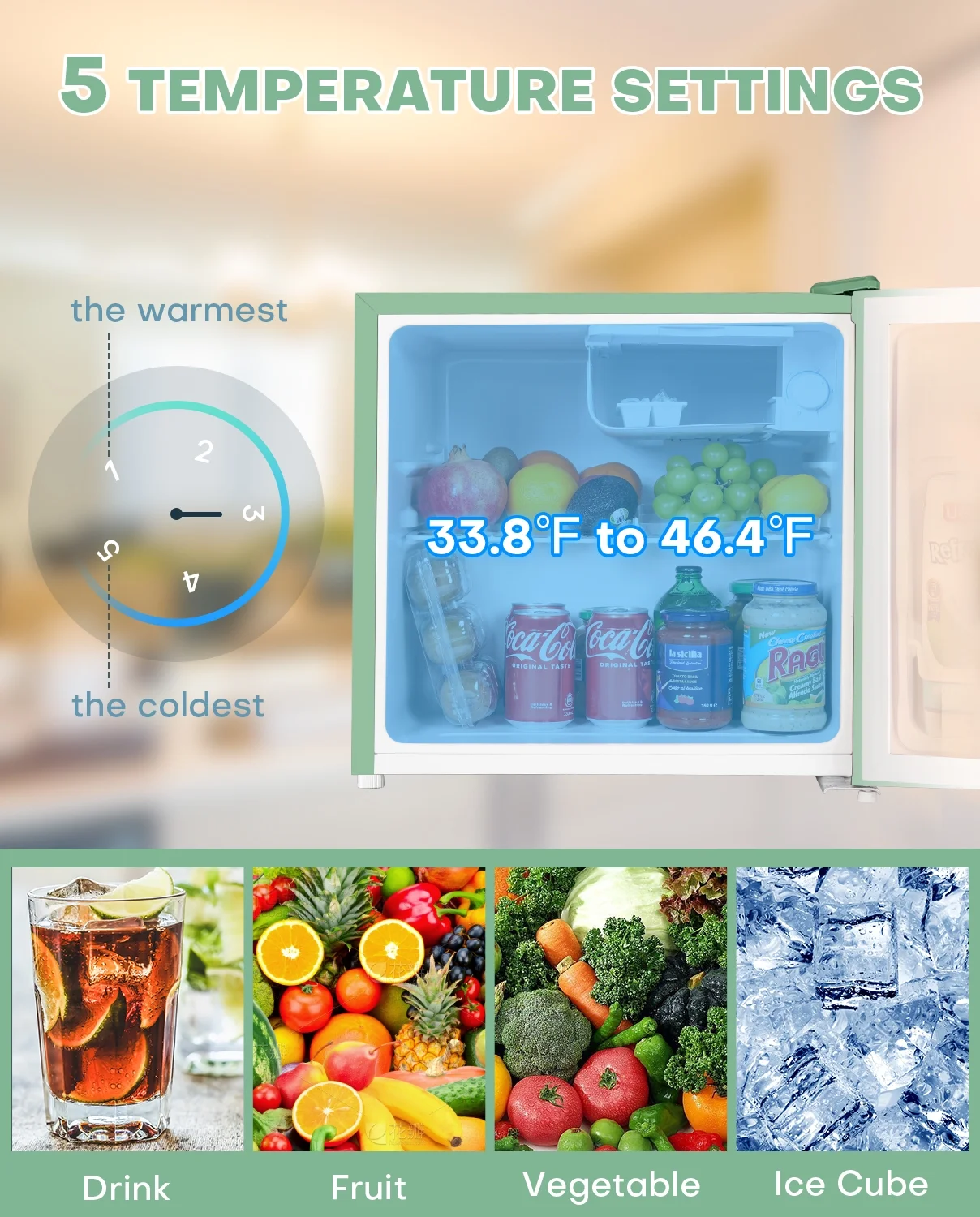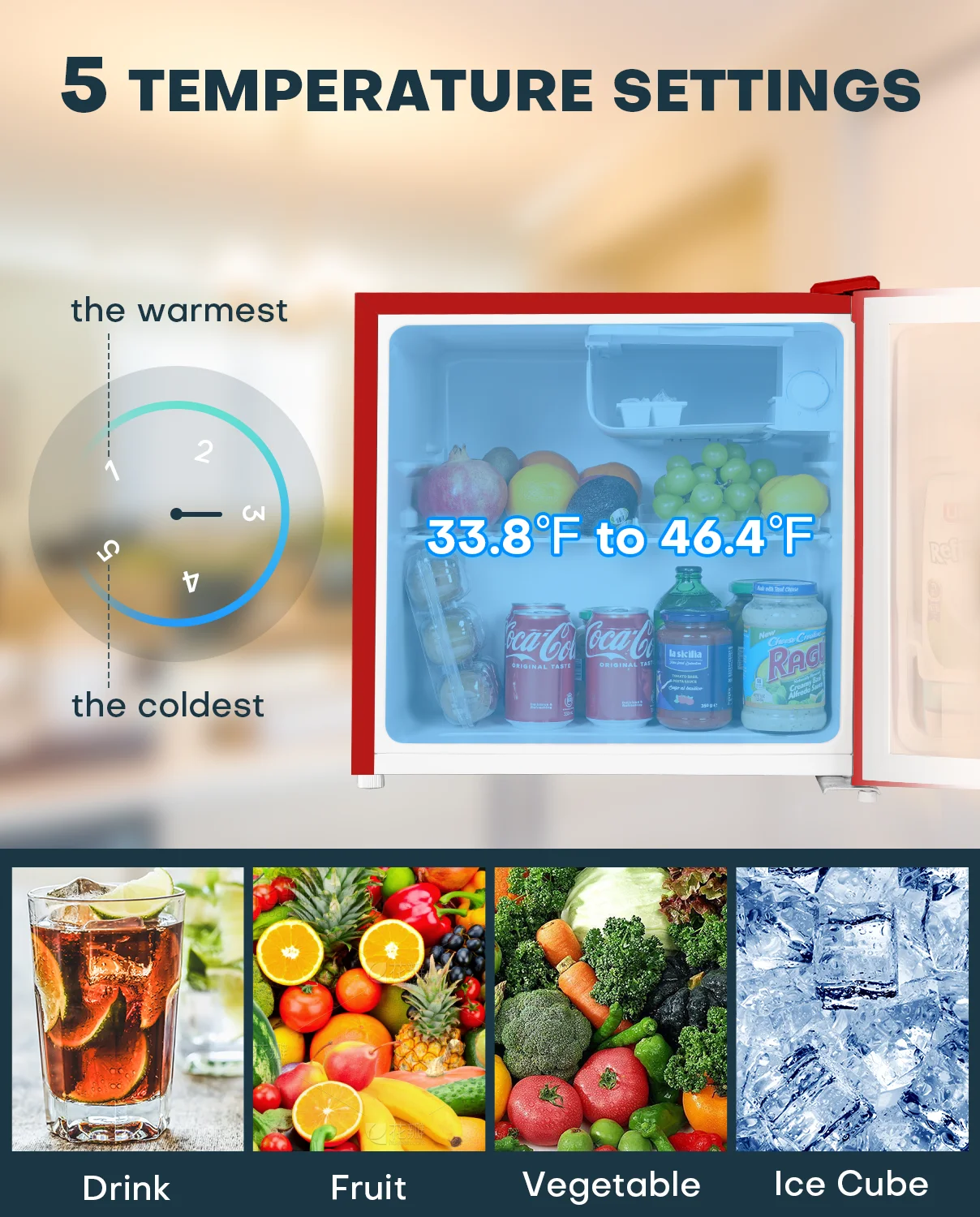 - 5 Adjustable Temperature Settings: The mini fridge with freezer has 5 adjustable temperature levels, with a temperature range from 33.8?��F to 46.4?�� F, you can adjust the temperature of the fridge to the right location according to your needs, store beverages, vegetables, fruits, snacks, etc. in the best way.