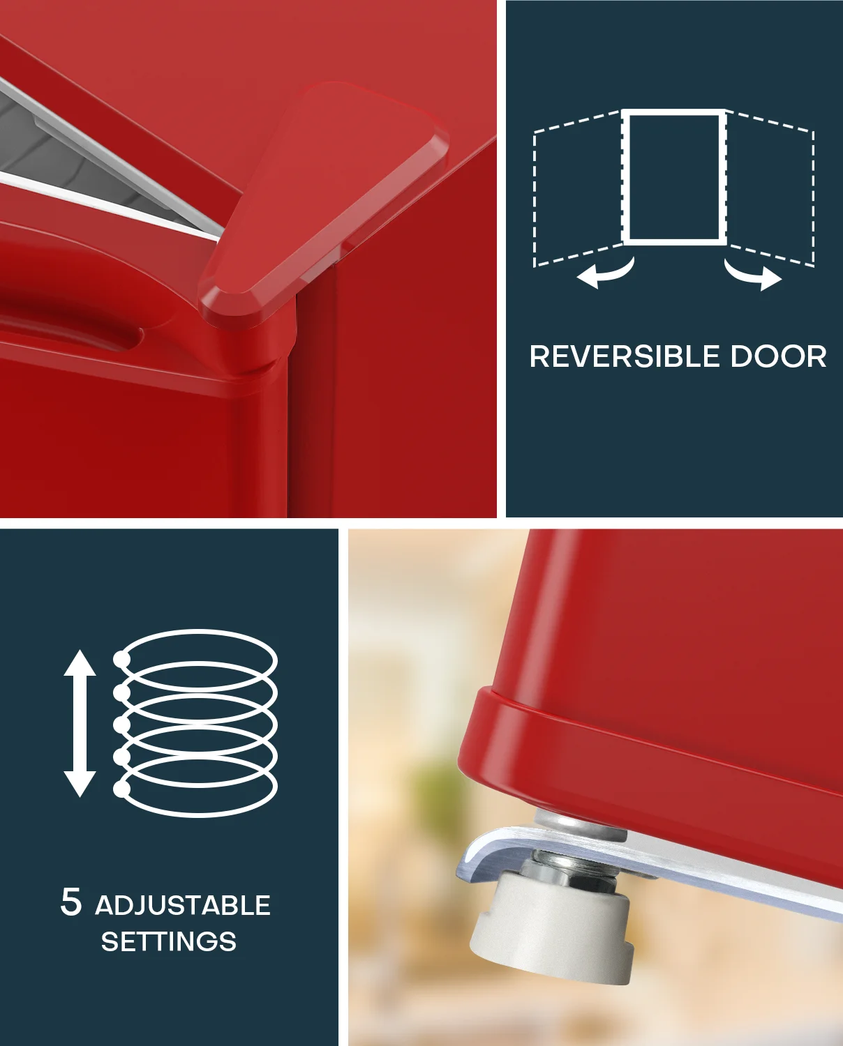 - Reversible Door Design: You can easily open the mini refrigerator door from the right or left by mounting the hinge on the left or the left, which provides extra flexibility in the placement and installation of the refrigerator.