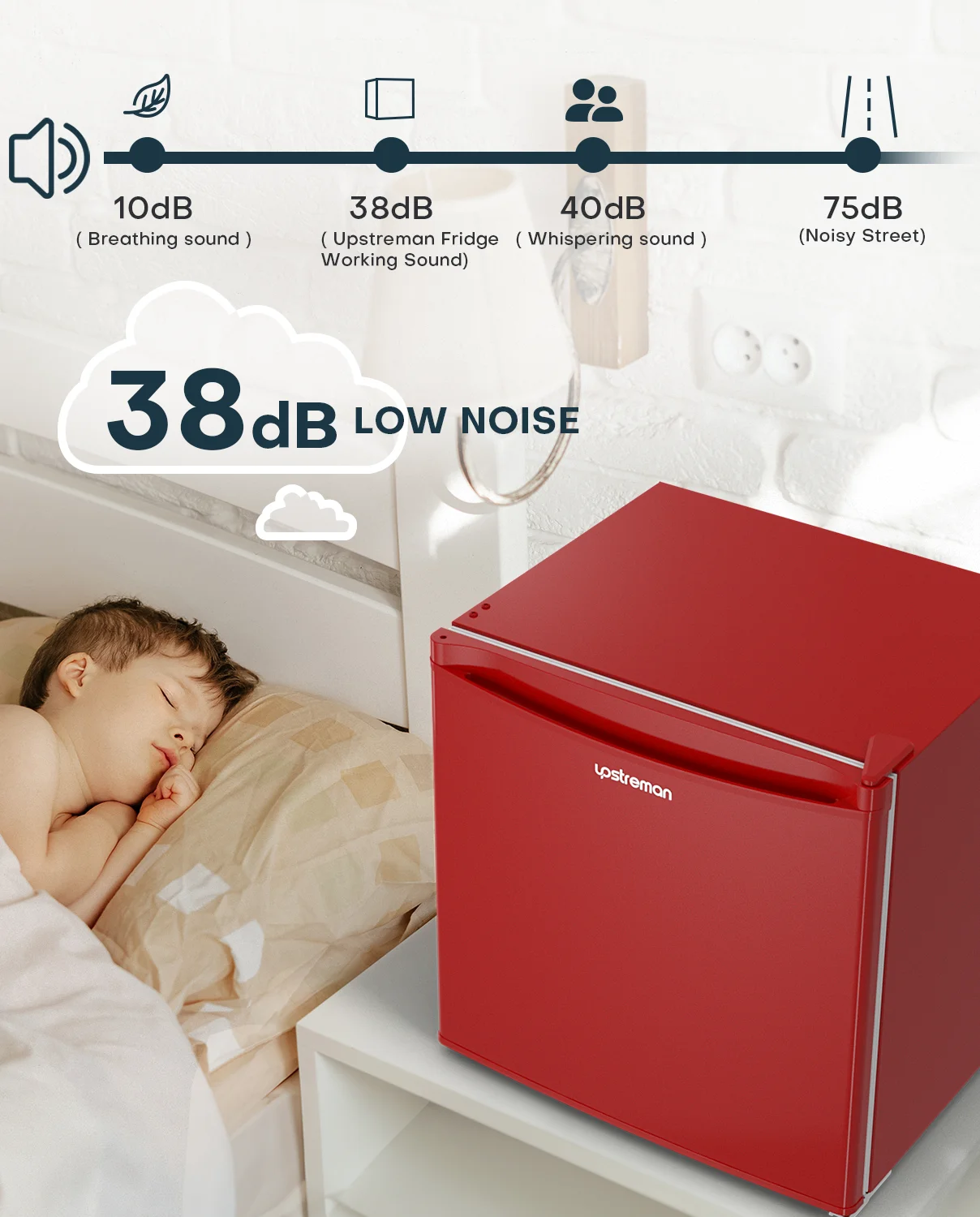 - 38dB Low Noise: The working noise of this small refrigerator is only 38 db, which will not affect your daily work and rest, bring you a quiet and comfortable environment while keep food fresh.