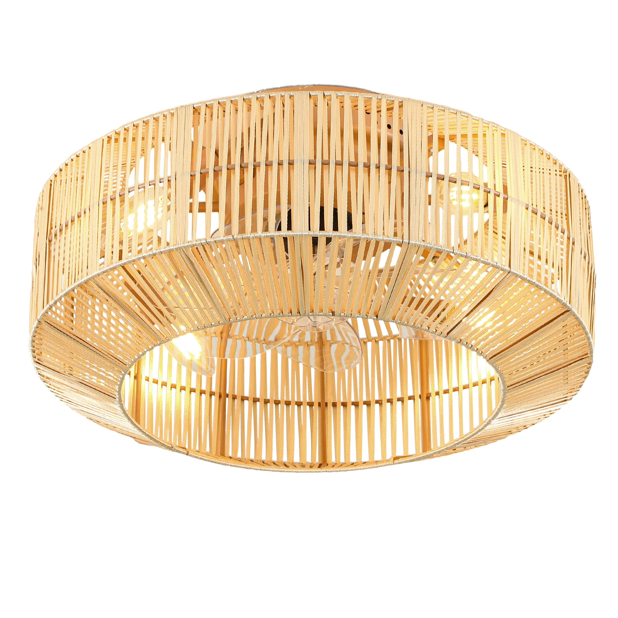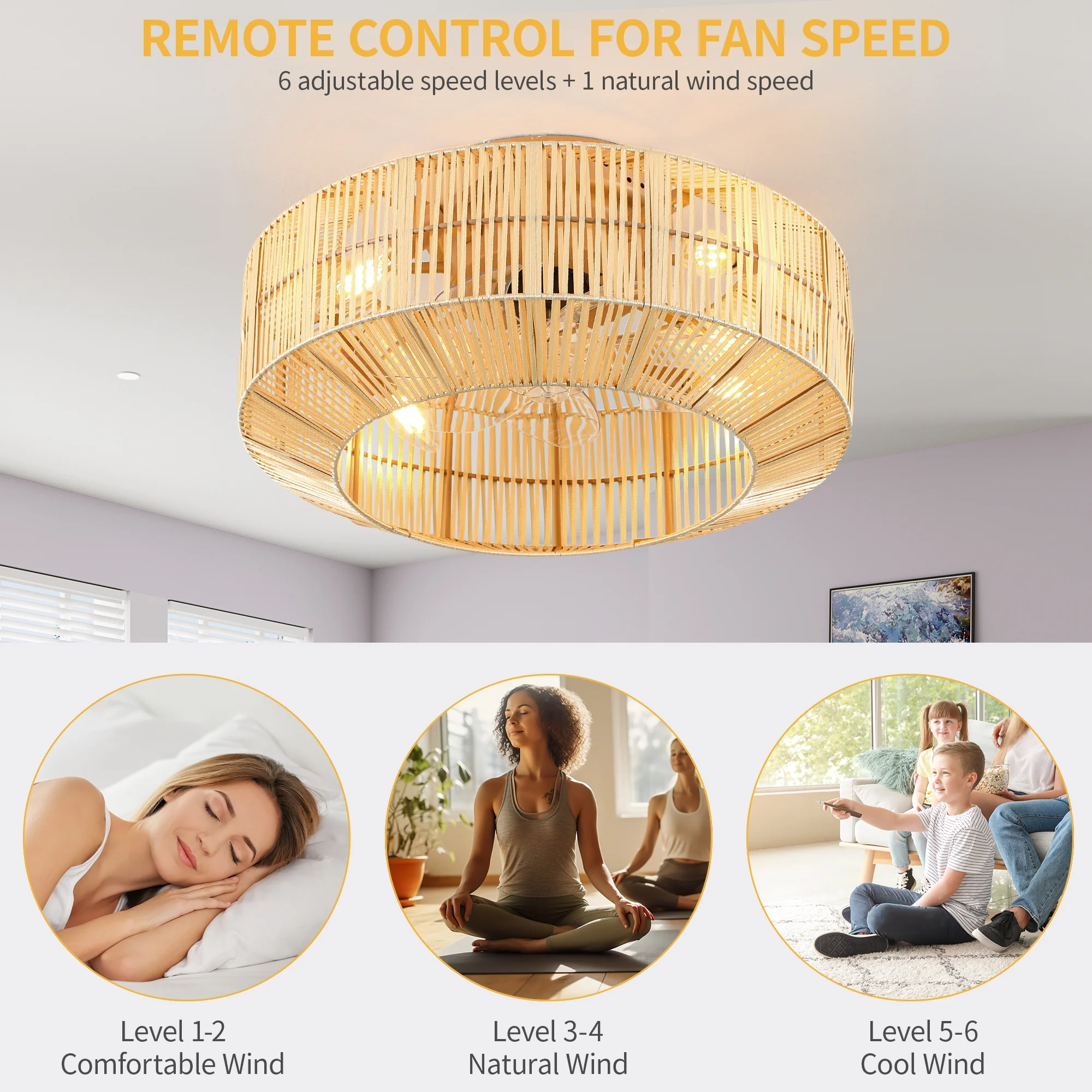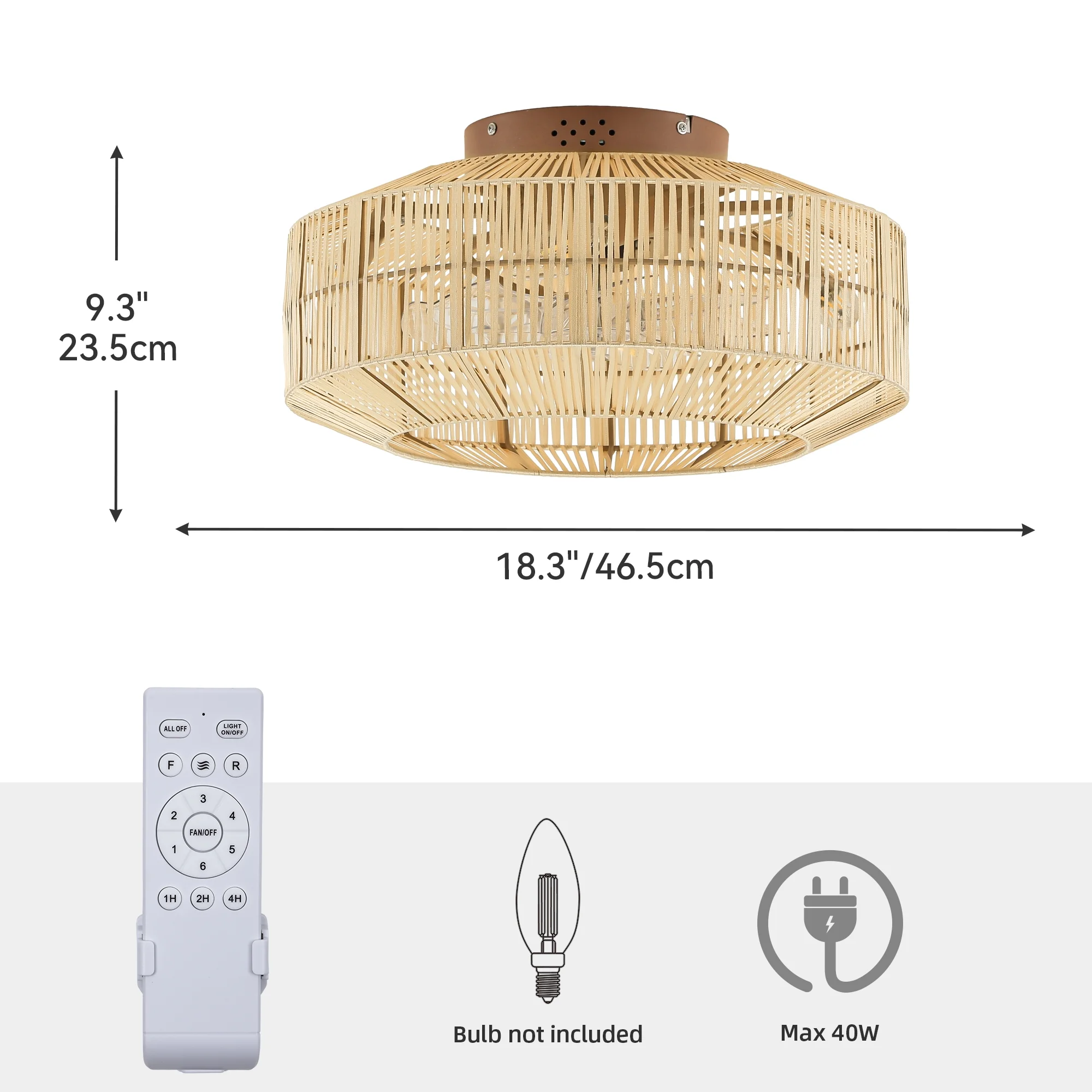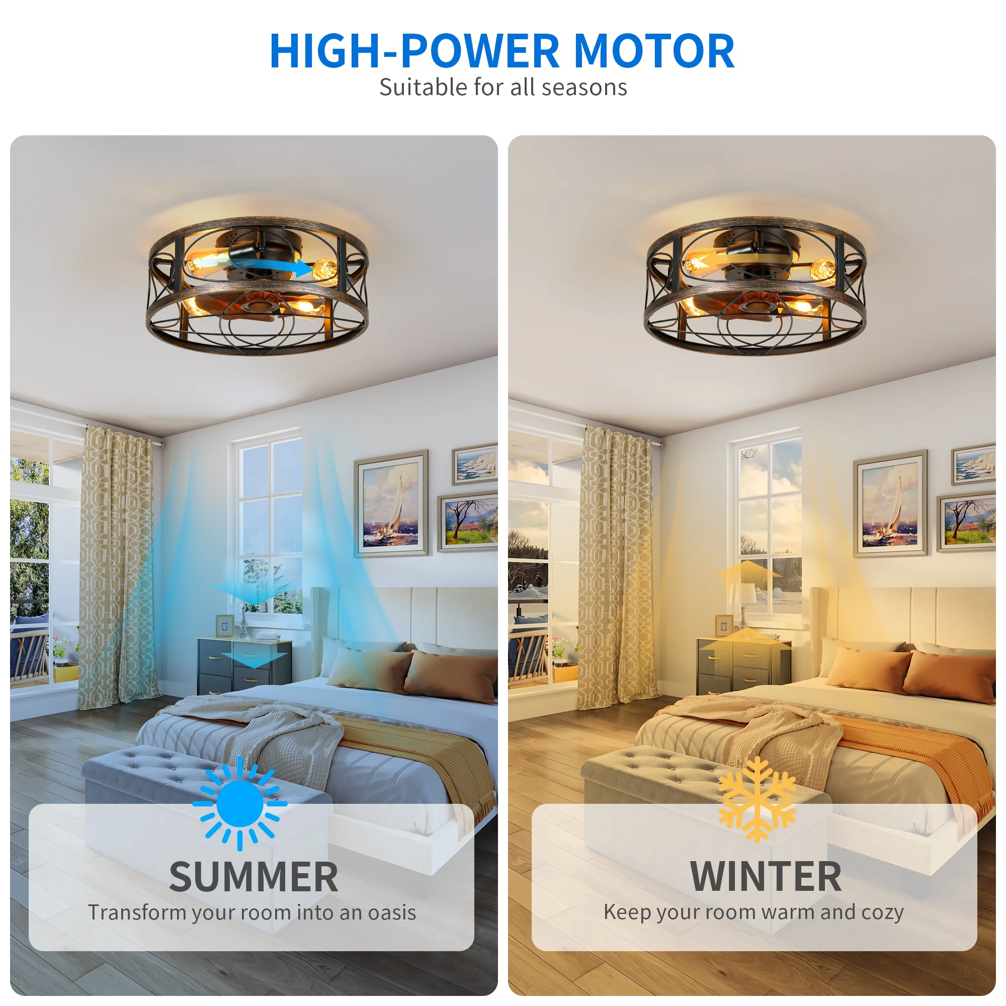 Dextrus 20" Caged Ceiling Fan with Lights and Remote Control, Rustic Farmhouse Flush Mount Design with Reversible DC Motor, 6 Speed Settings for Indoor/Outdoor Use (Brown & Black)