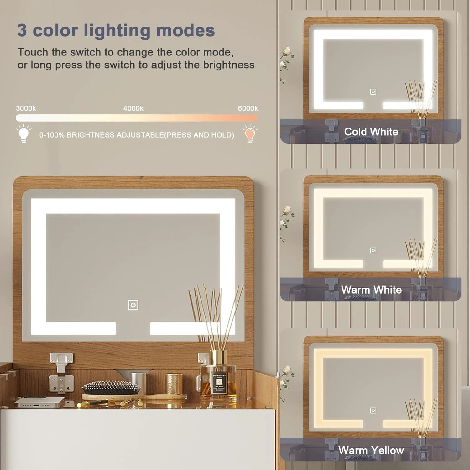 - ��3 Color LED Makeup Mirror��- This flip-Top mirror makeup vanity provides 3 lighting effects, which can switch between natural light, cold light and warm light. Then you can choose the light you want according to different scenes and different makeup.