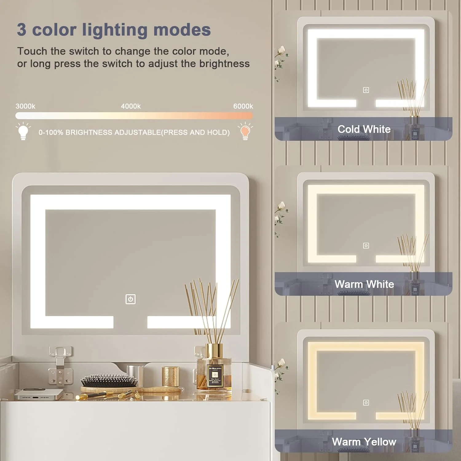 Makeup Vanity Desk, White Vanity with Lighted Mirror