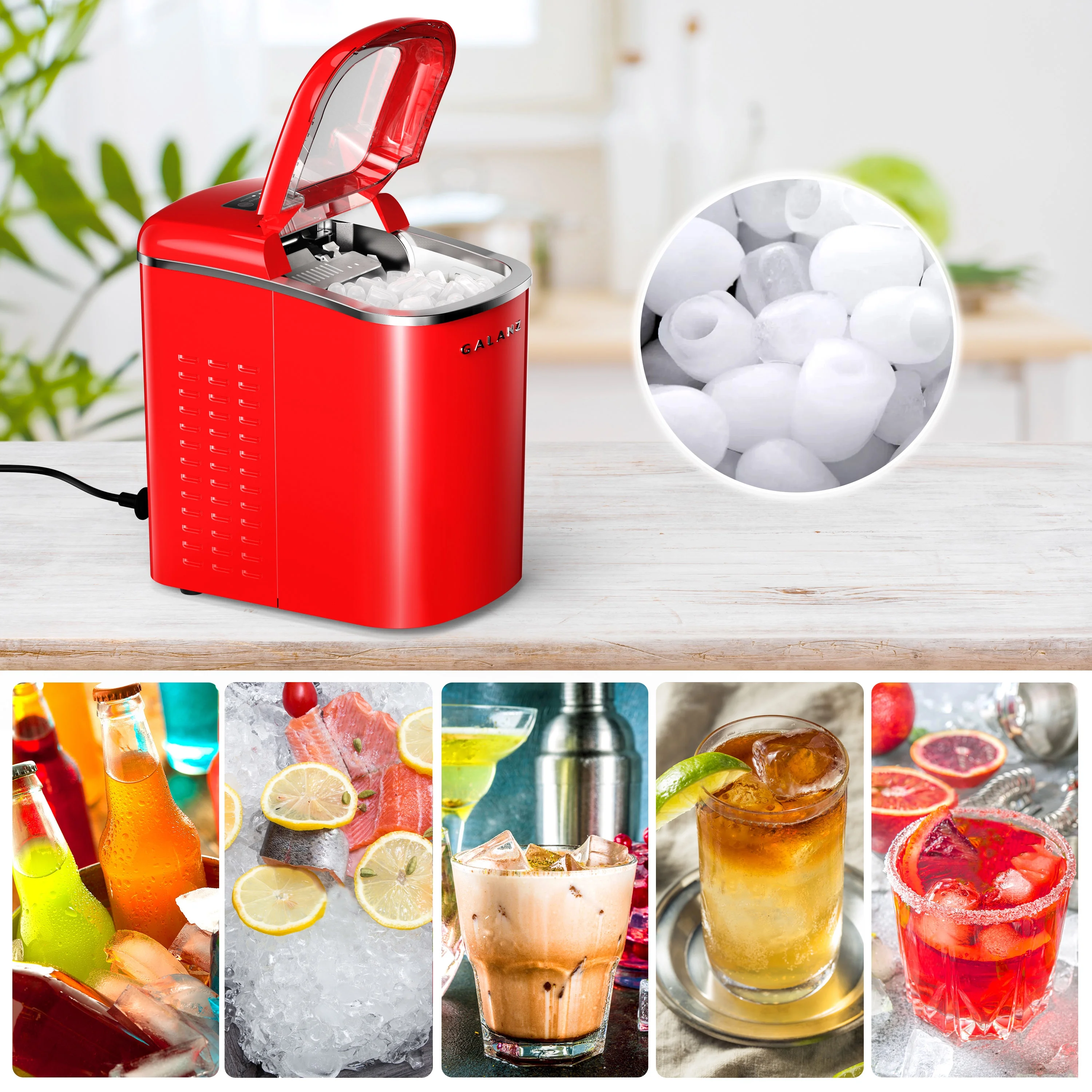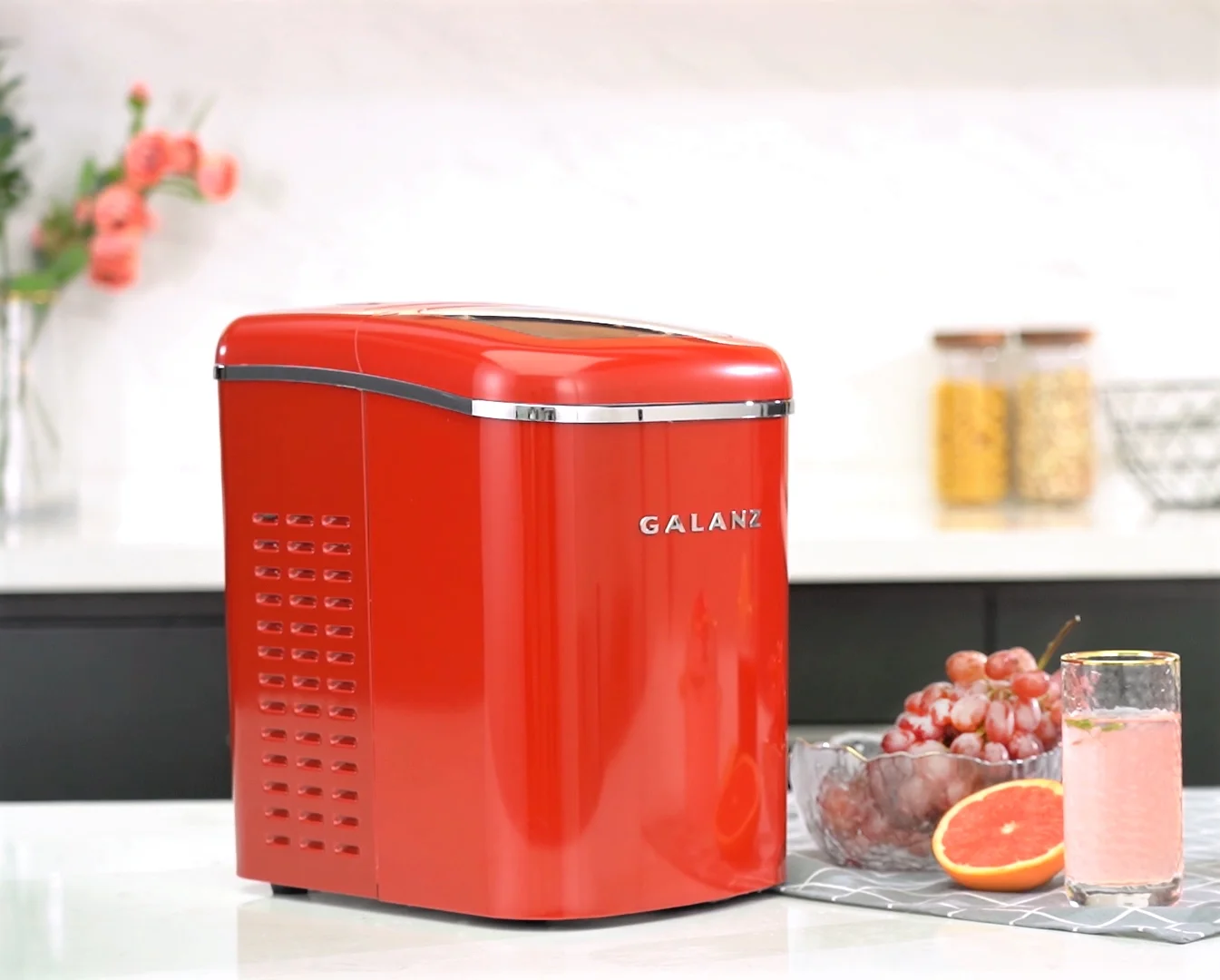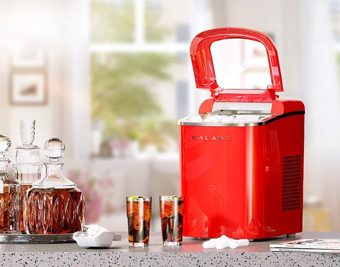 - COMPACT WITH FUN DESIGN - Compact size and fun, retro red look will accentuate any kitchen countertop -Ice maker measures 8.86" W x 12.32" L x 13.15" H, 2.1 L capacity