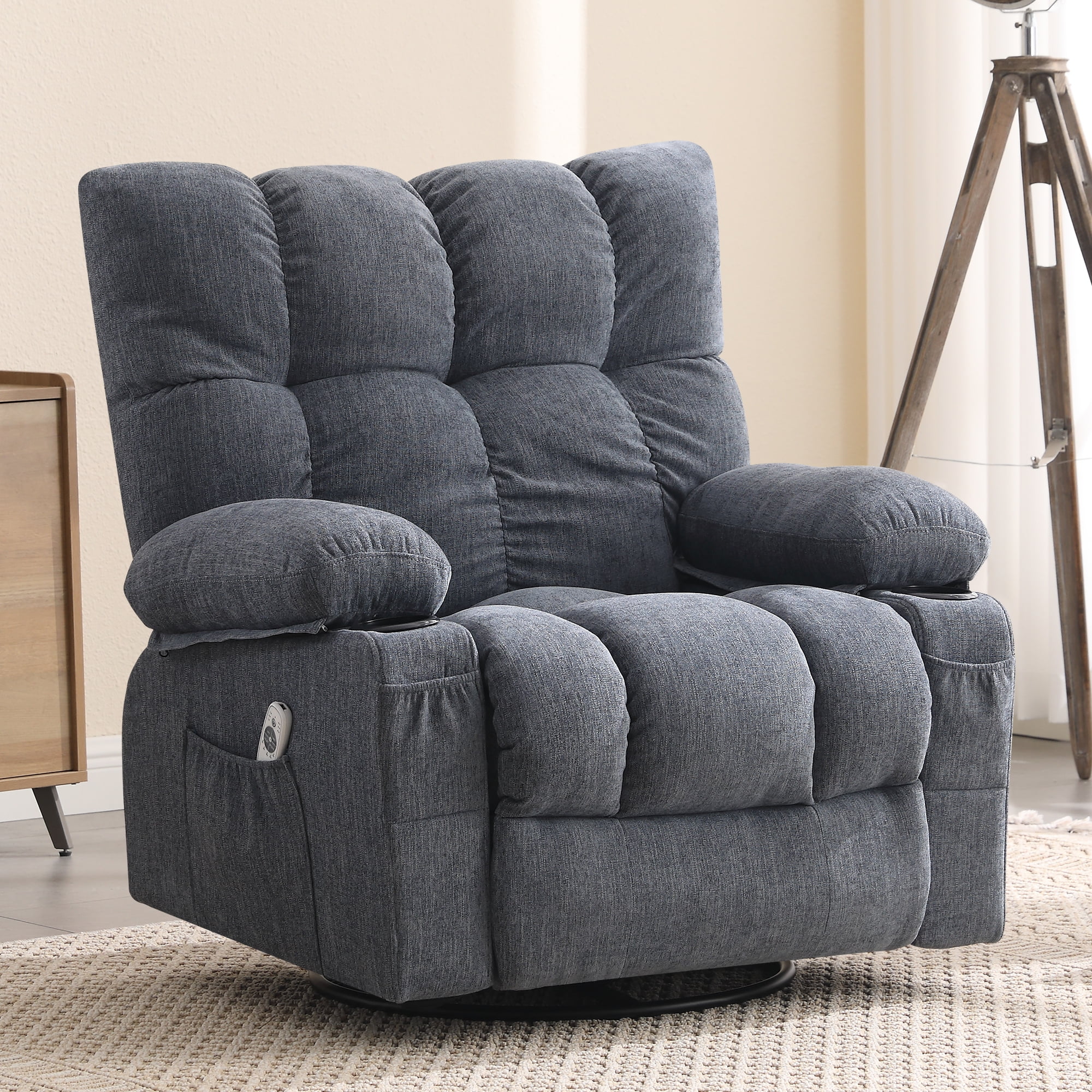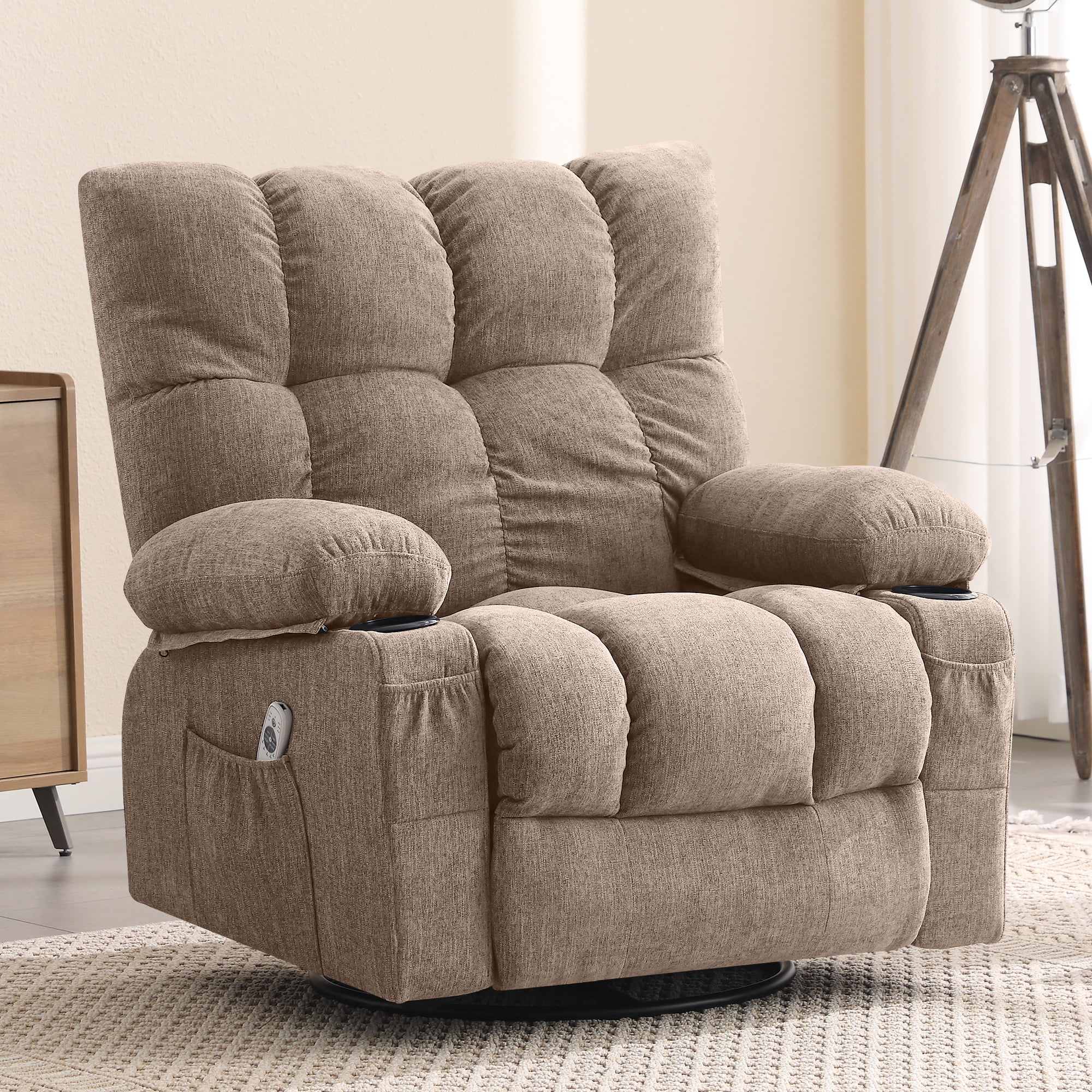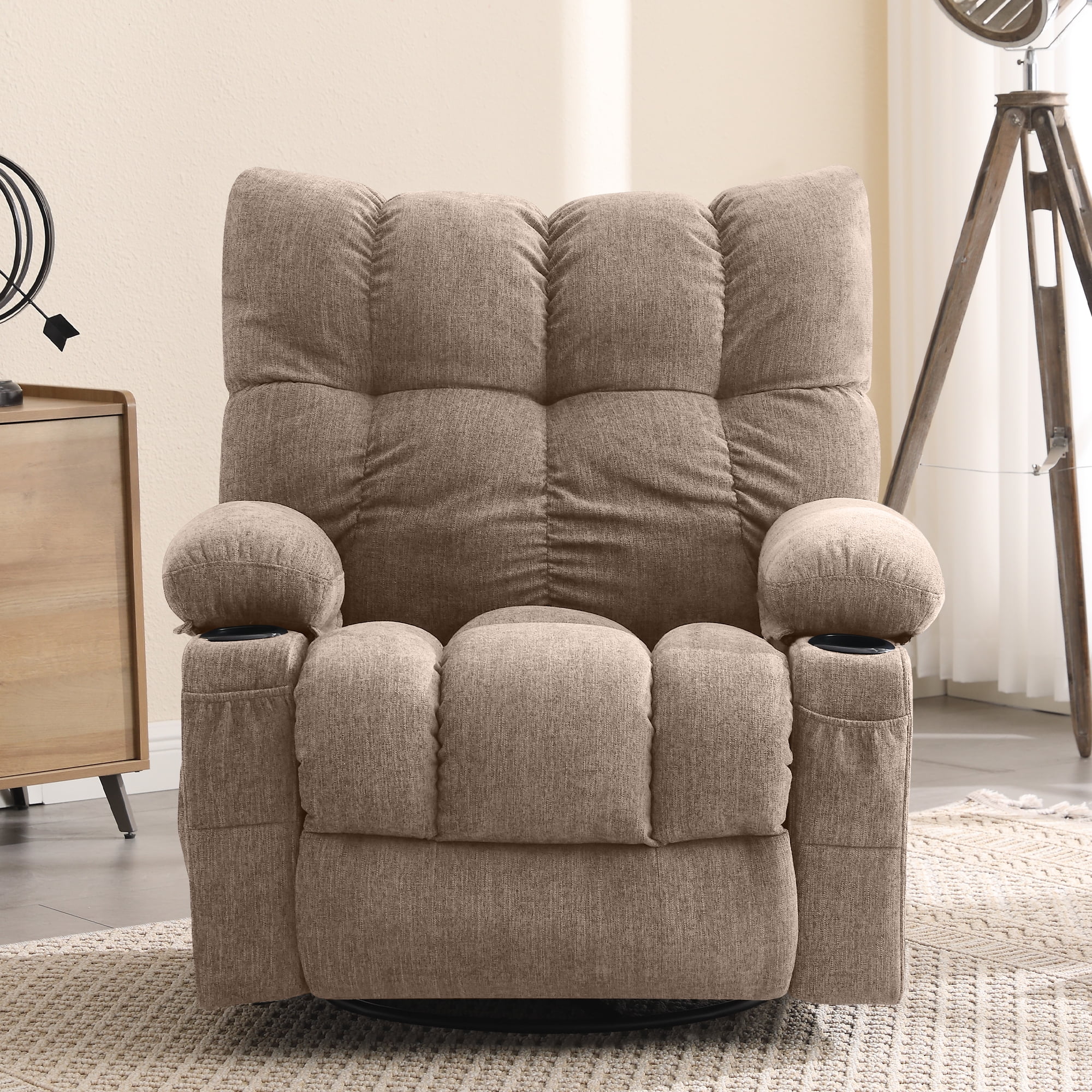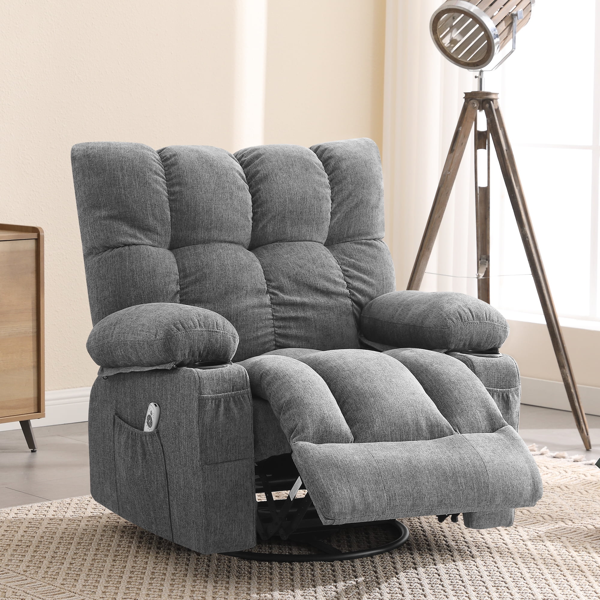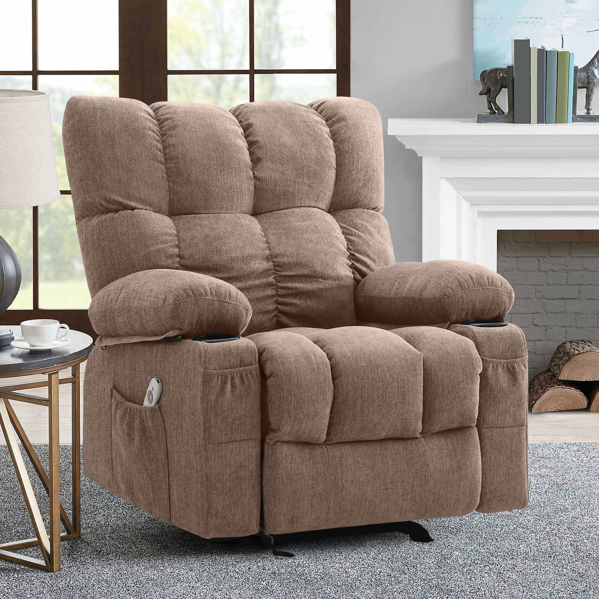 JONPONY Manual Recliner Chair with Heat Therapy and Massage Function, Heavy Duty Reclining Mechanism Massage Chair, Elderly Single Rocker Sofa with Cup Holders for Bedroom Home Theater, Grey