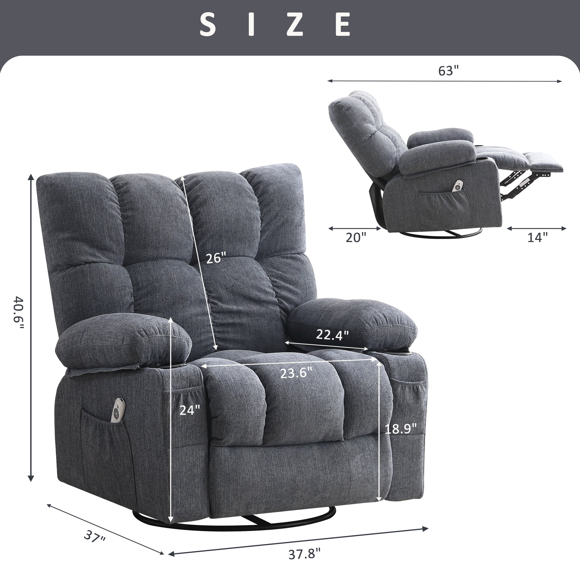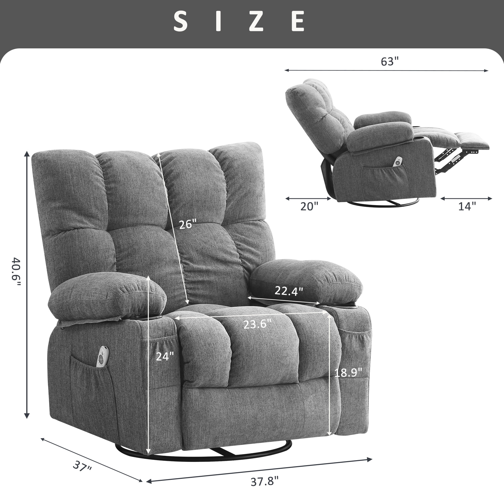- Overall Size: 36.22''W x 37.4''D x 40.16''H