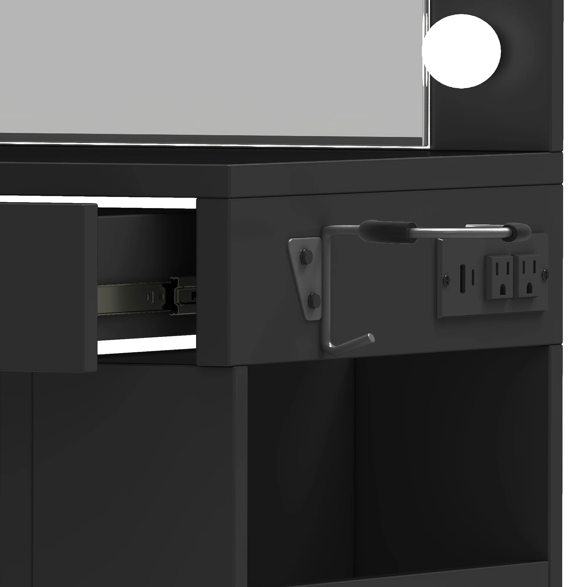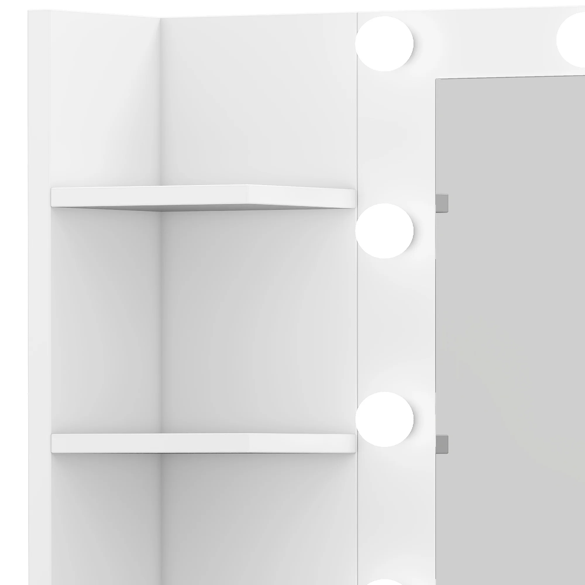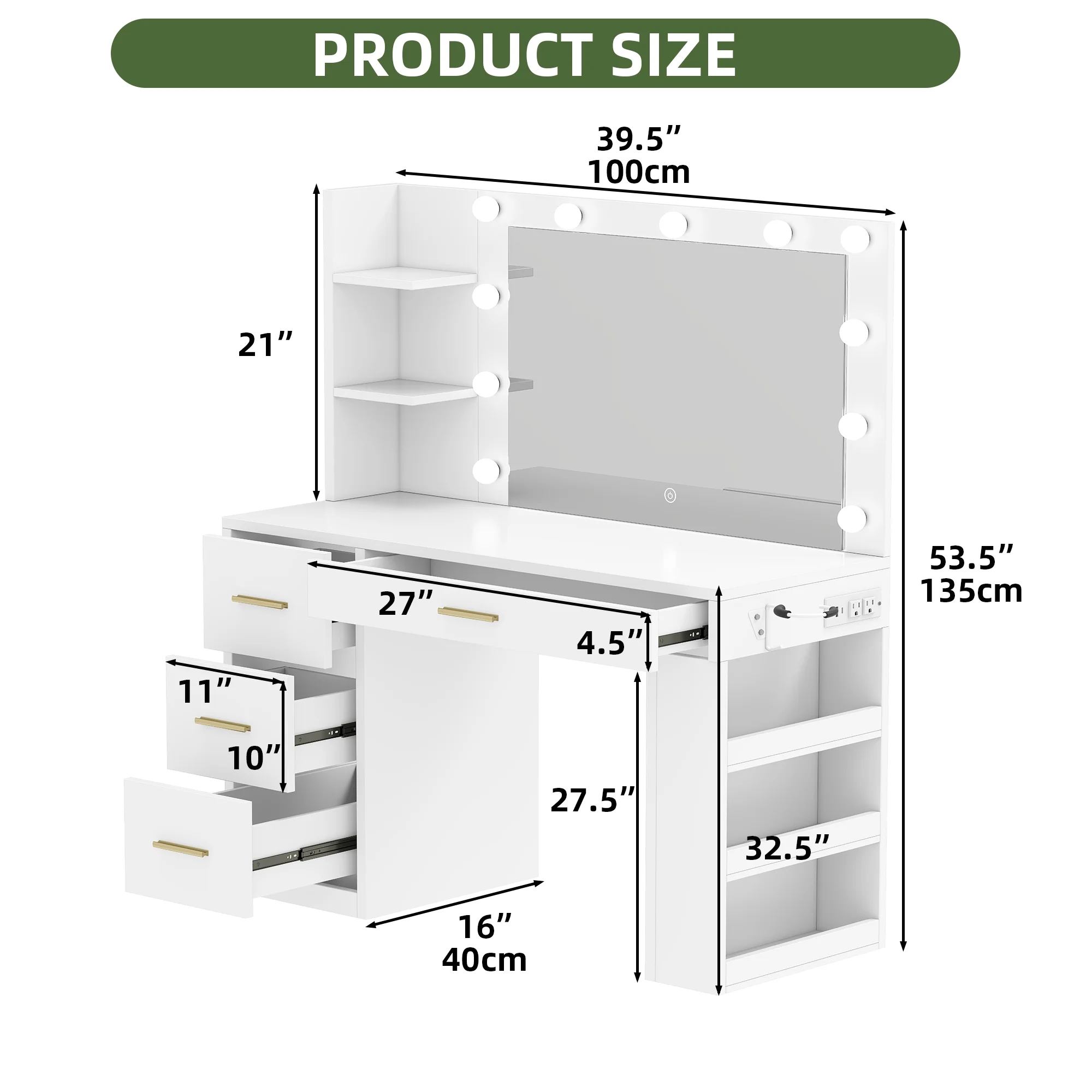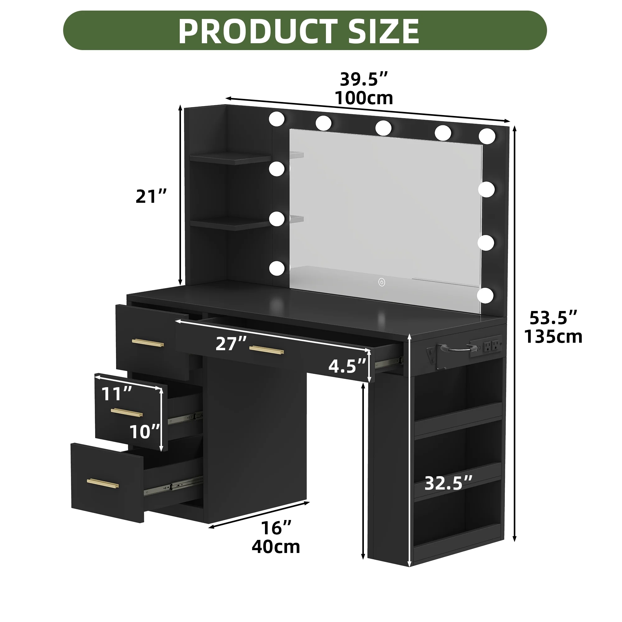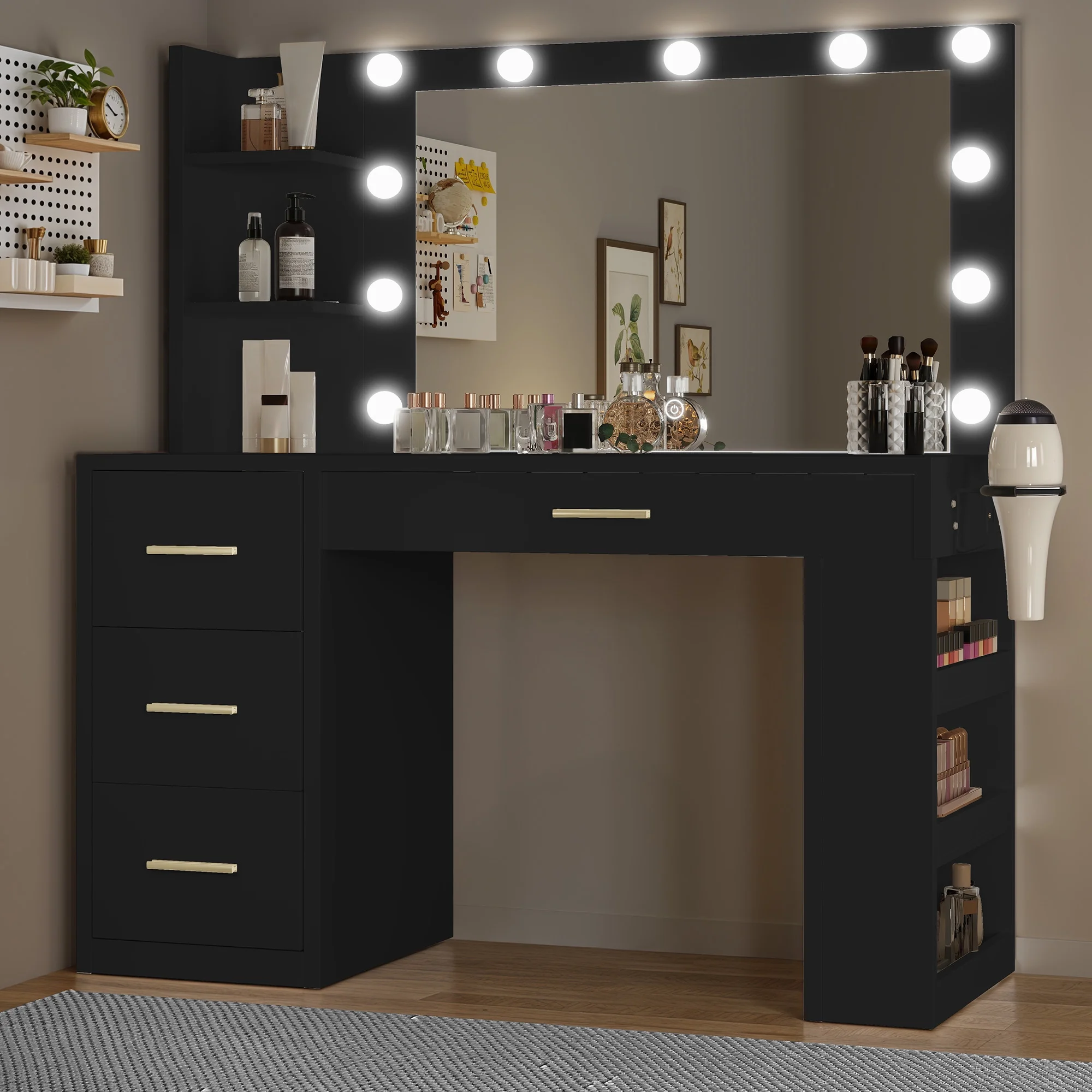 - Bulb-Illuminated Vanity with Power Ports: Our makeup table has a spacious mirror lit by 11 bulbs with 3 adjustable color modes. It also includes 2 AC outlets and 2 USB ports to charge your phone and power beauty tools in one spot.