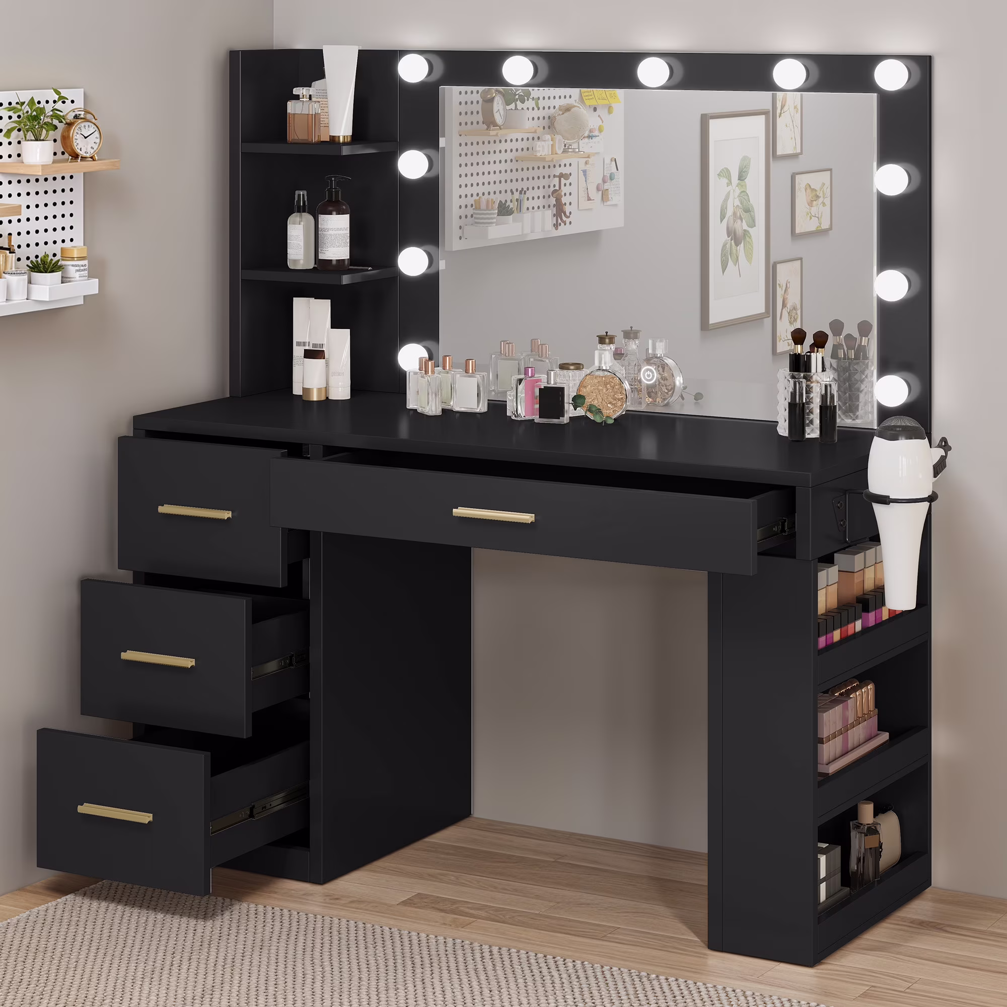 - Chic Vanity Desk: Elevate your daily beauty routine with our stylish vanity desk, transforming any corner into a chic and convenient dressing room. Enjoy effortless makeup and skincare moments while keeping everything organized and within reach.