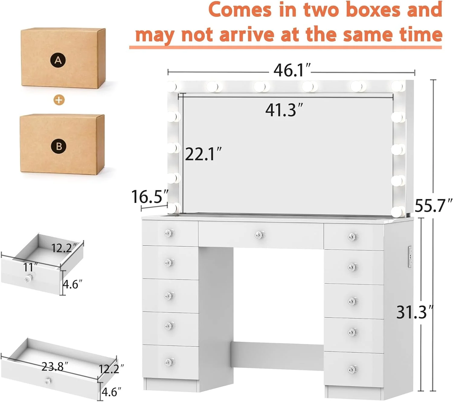 - ��Built-in Charging Station��This makeup vanity adds 2 standard plug sockets, 2 USB ports and 4.92 feet power cord that can be easily connected to the power supply. Make it convenient for you to use hair dryers, curling irons, beauty devices and charge
