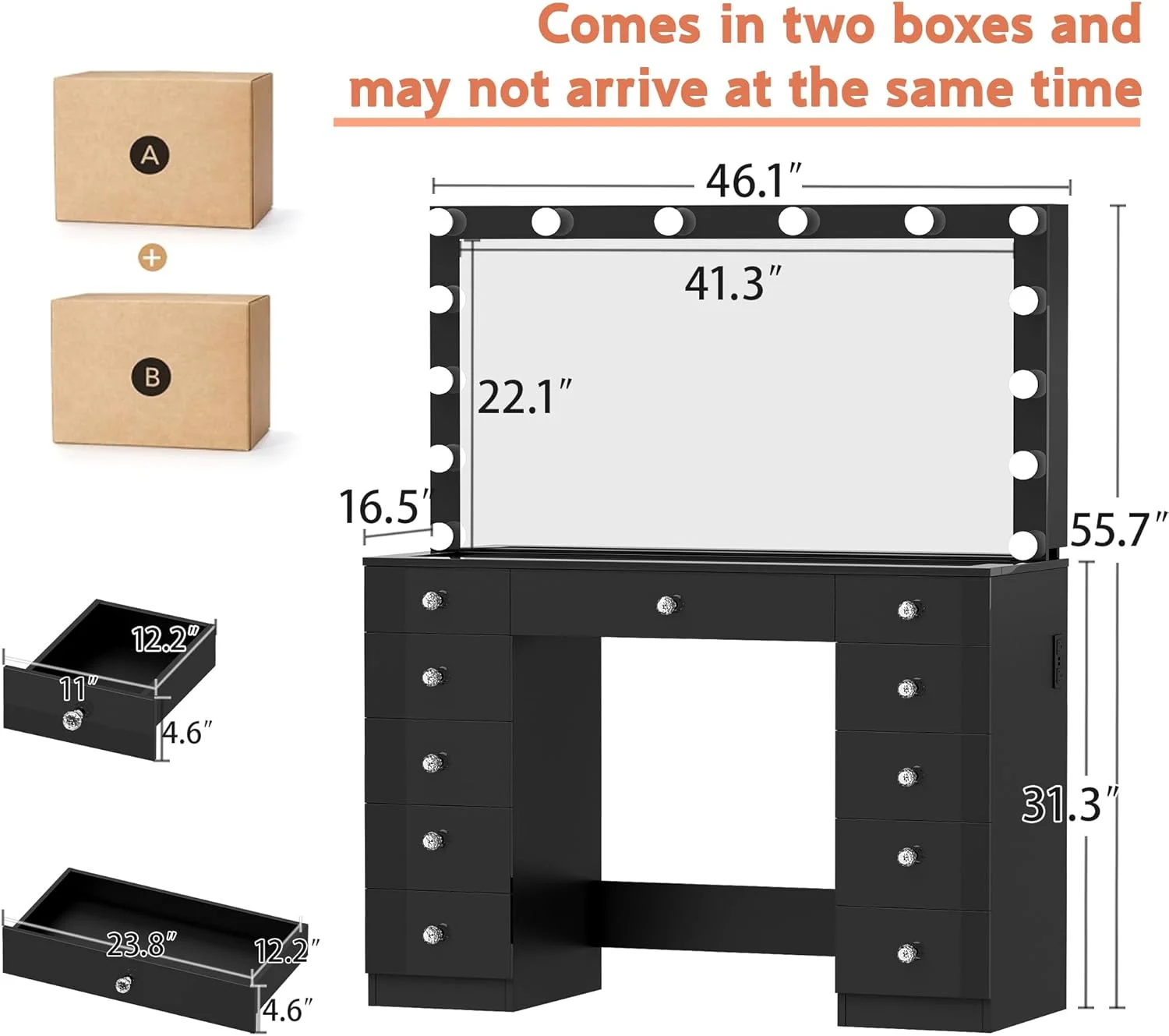 - ��Modern Luxury Design��Comprehensive details and quality upgrades, this vanity is popular in light luxury vanity. The specular paint surface has the texture of piano paint, which is more luxurious under the light of 14 large Hollywood lights; The Visible glass top can better display your dazzled cosmetics. Large mirror and crystal handles are both for the modern vanity style