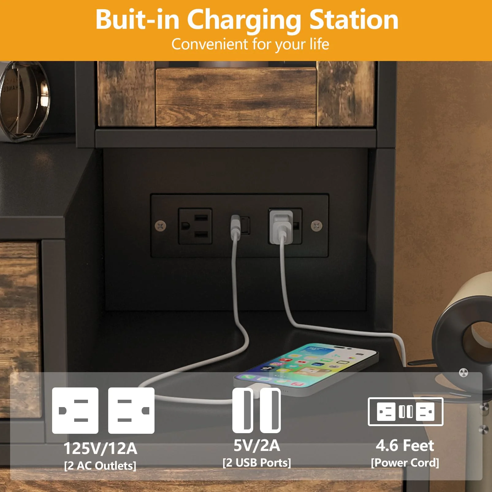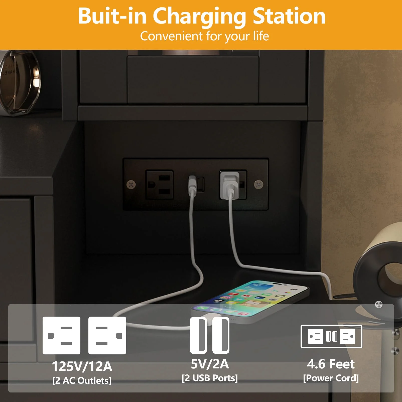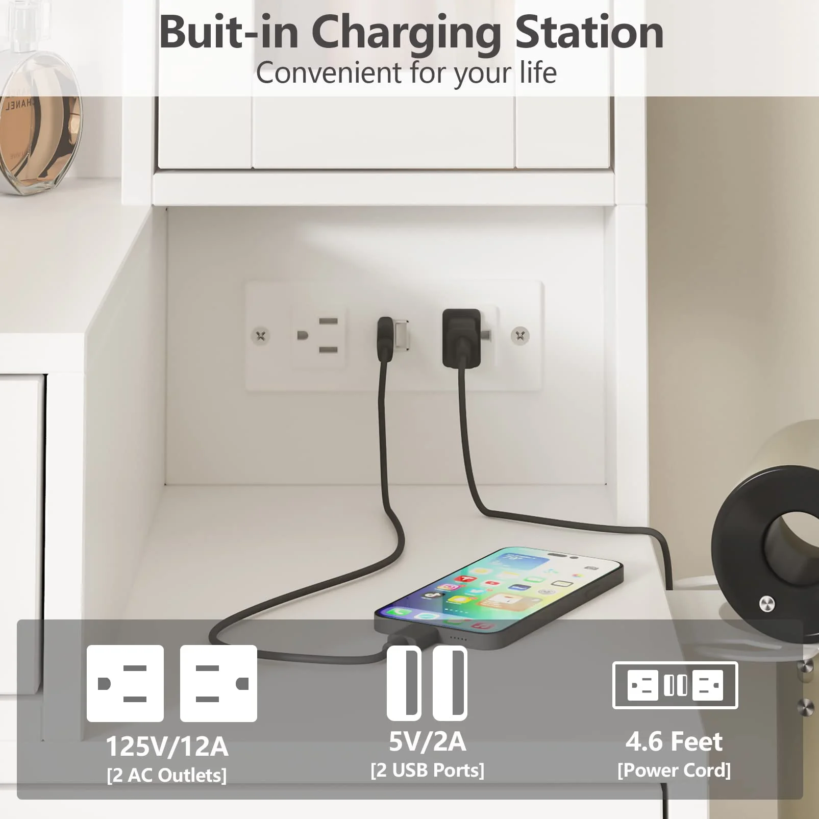 ��Built-in Charging Station Design��Built-in power strip contains 2 power outlets and 2 USB ports for designed to allow you to charge multiple electronic devices at the same time, such as mobile phones, tablets and so on.You can sit at your dressing table, use a hair dryer or curler, and the charging station is within reach.
