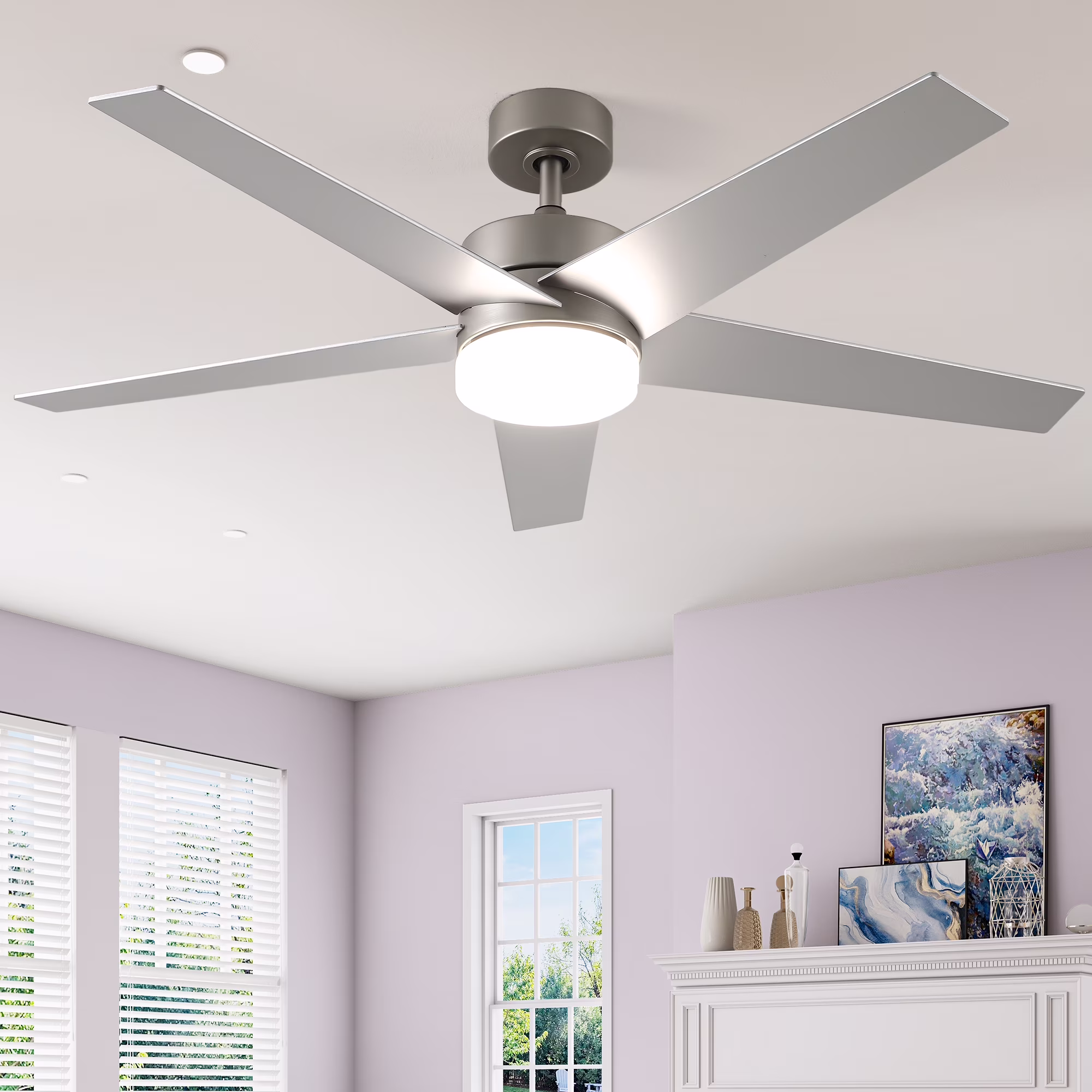 Uforic 52" Modern Ceiling Fan with Lights and Remote Control, 5 - Blade Ceiling Fan with Dimmable Tri - Color Light, Quiet and Reversible 6 - Speed DC Motor, Perfect for Bedroom, Living Room - Silver