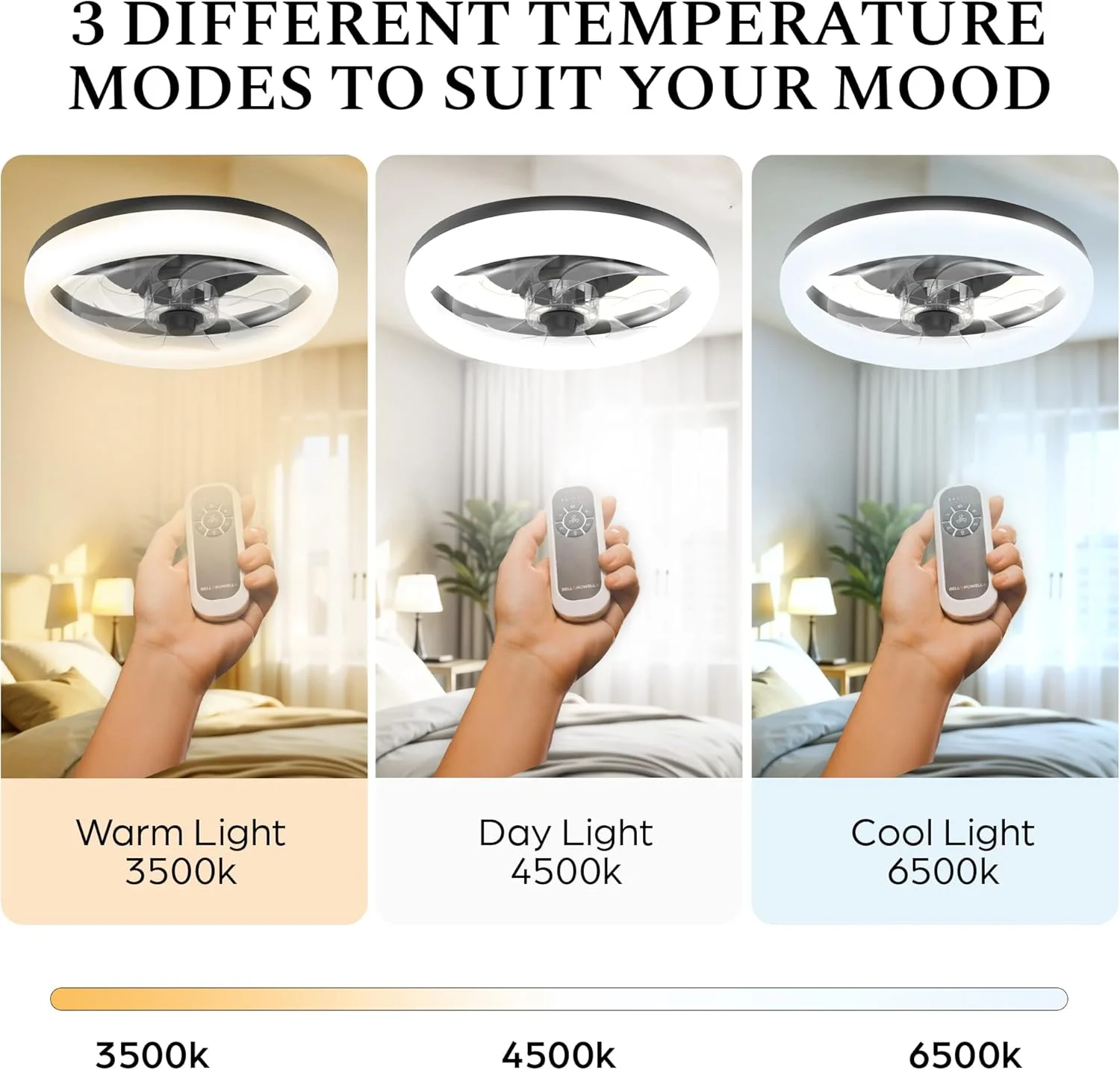 - Low Profile Flush Mount: Perfect for rooms with low ceilings, this flush mount ceiling fan is designed to fit seamlessly into any modern living space while providing both light and air circulation. The included remote control allows easy operation.