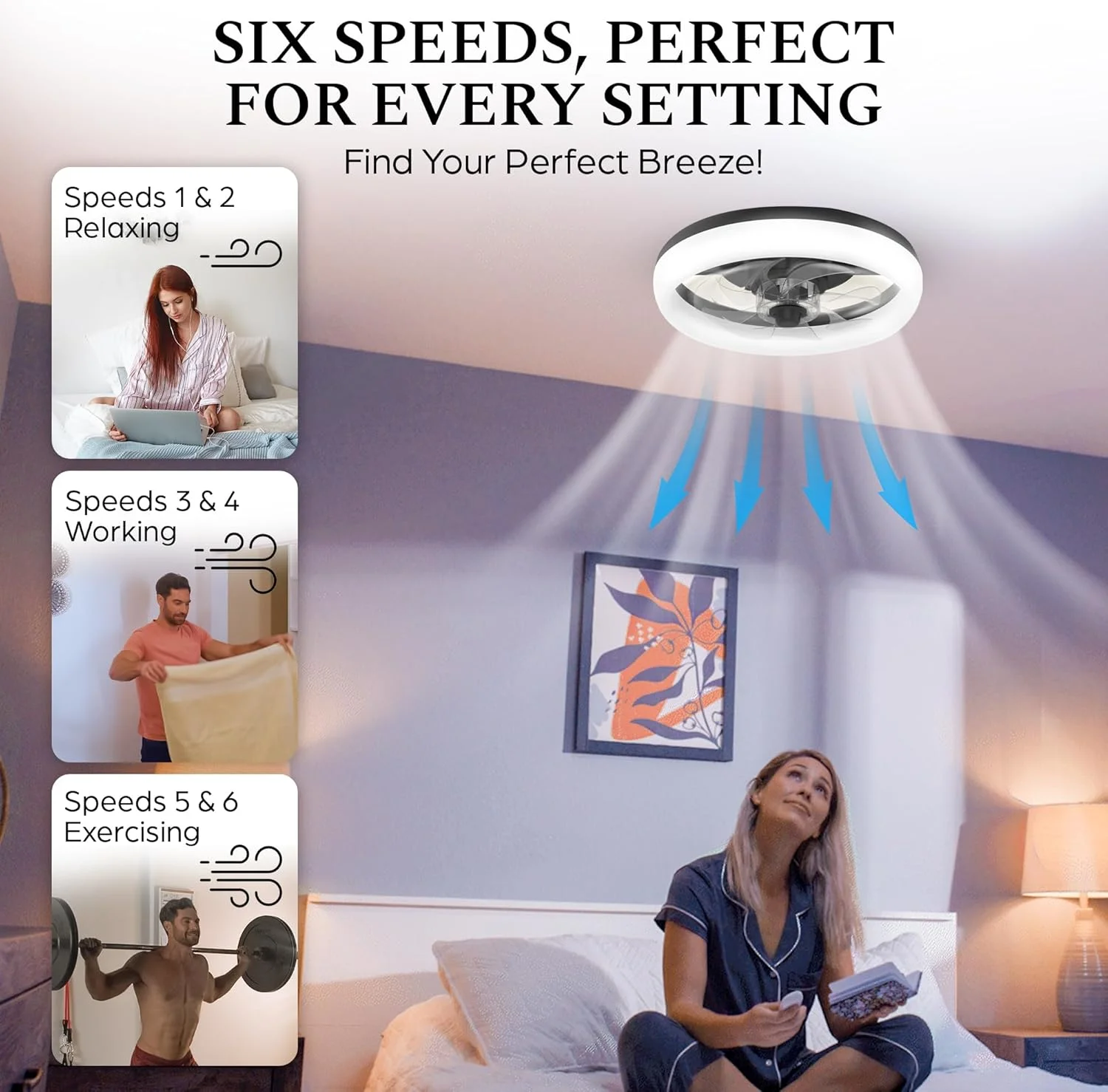 - 6-Speed Options for Custom Comfort: With 6 adjustable fan speeds, this modern Fandelier lets you control the airflow to your liking, whether you need a gentle breeze or maximum circulation.