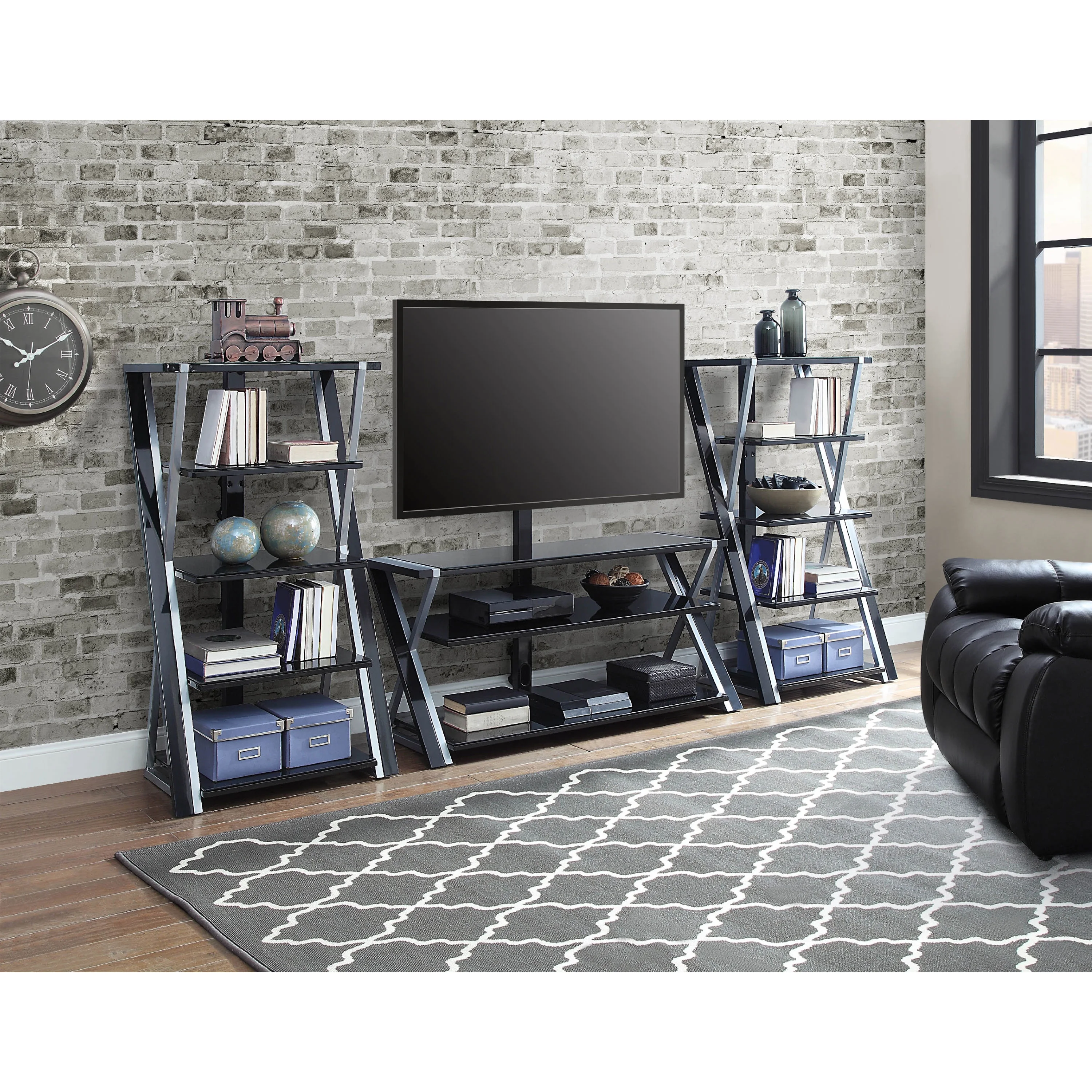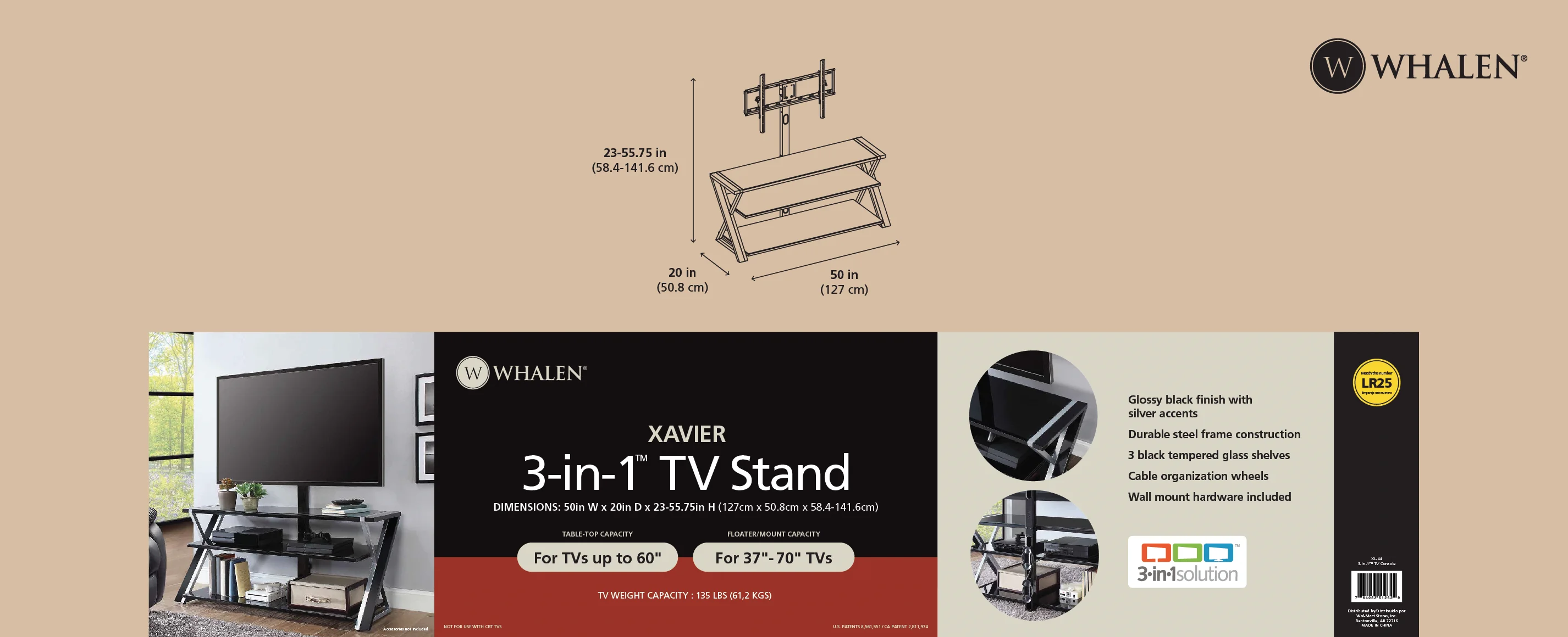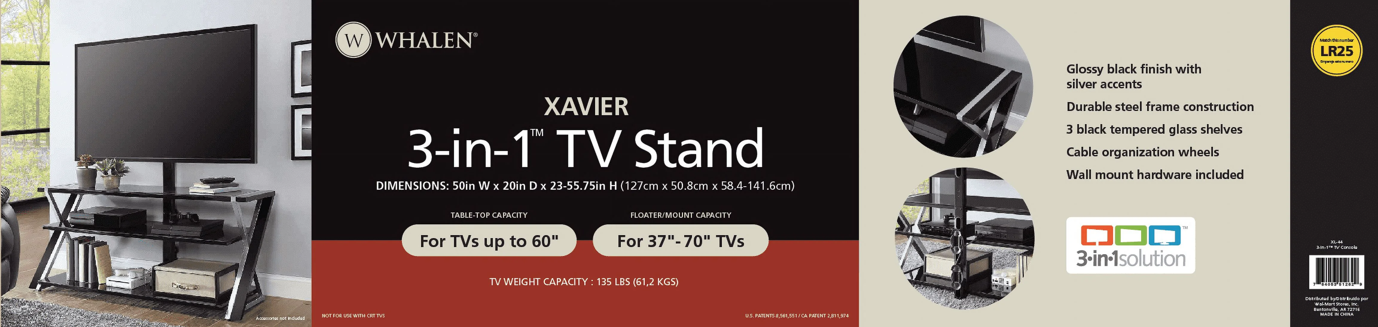 - The patented 3-in-1 display system gives you three different options for displaying your TV