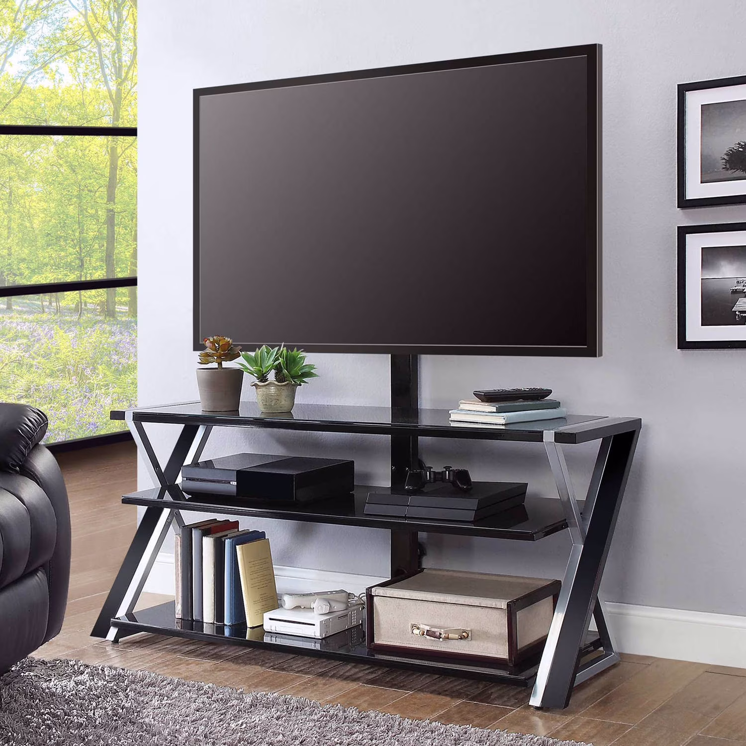- This versatile furniture provides plenty of space for all your entertainment components, gaming systems and accessories