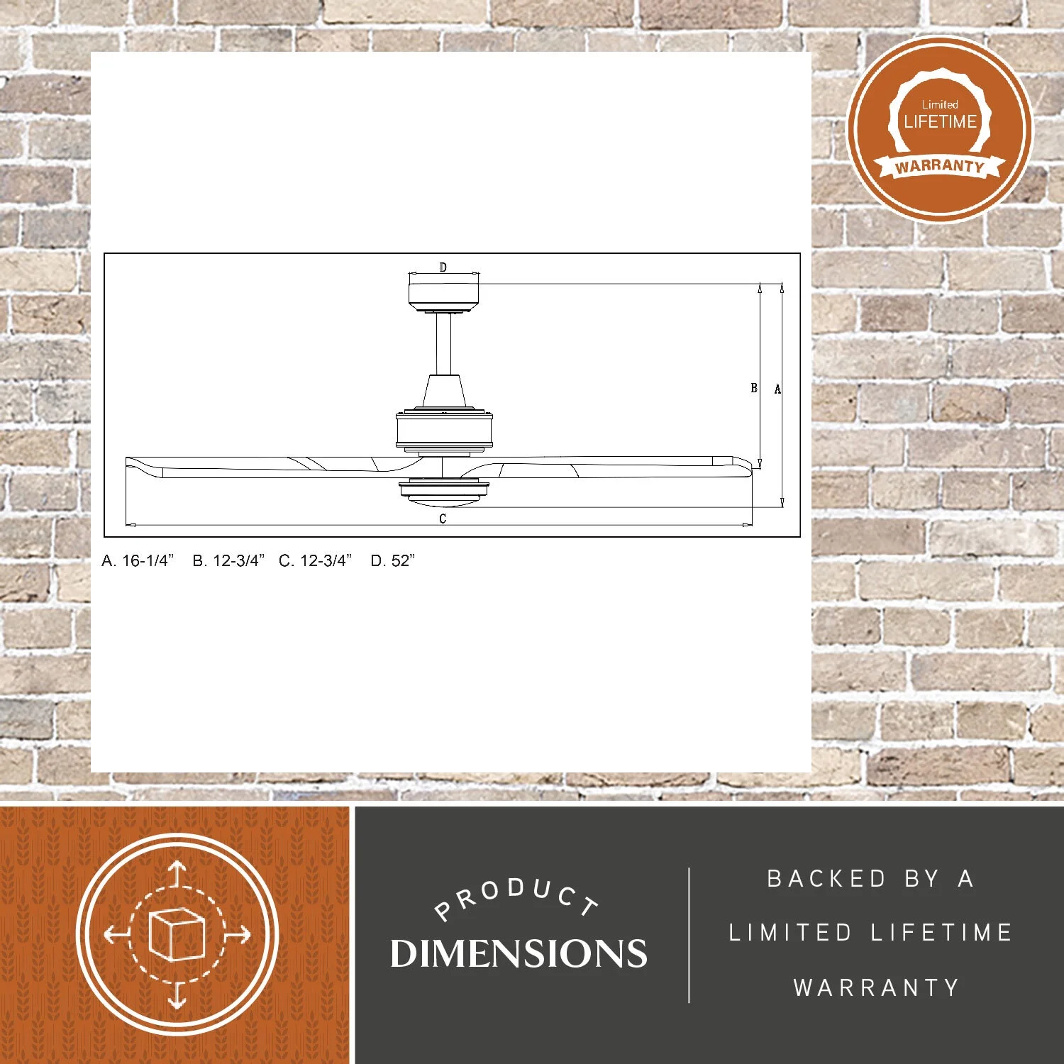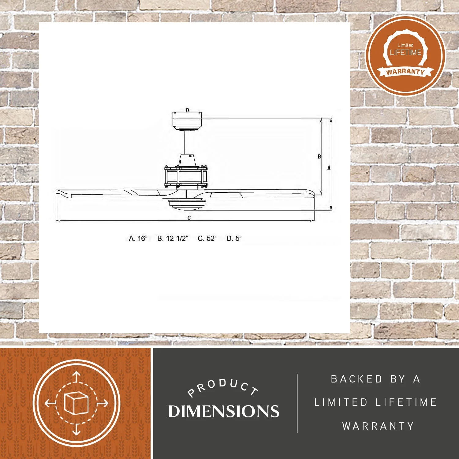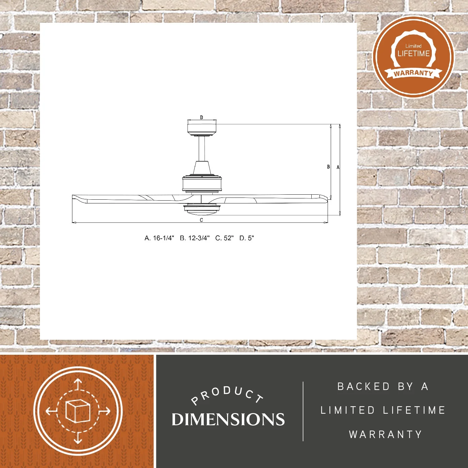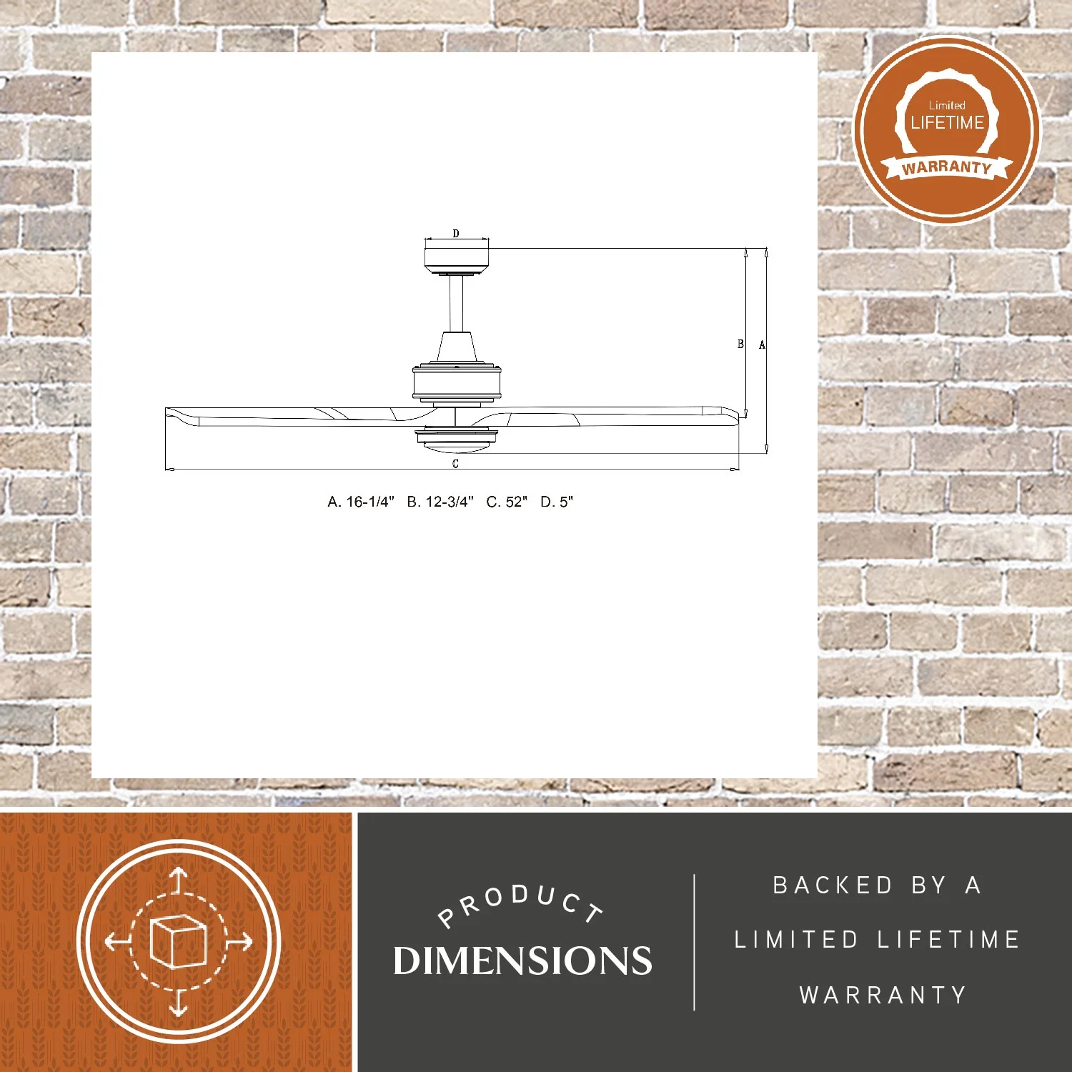 - Sized to fit rooms up to 350 sq. ft with a 52-in diameter and 3 propeller blades