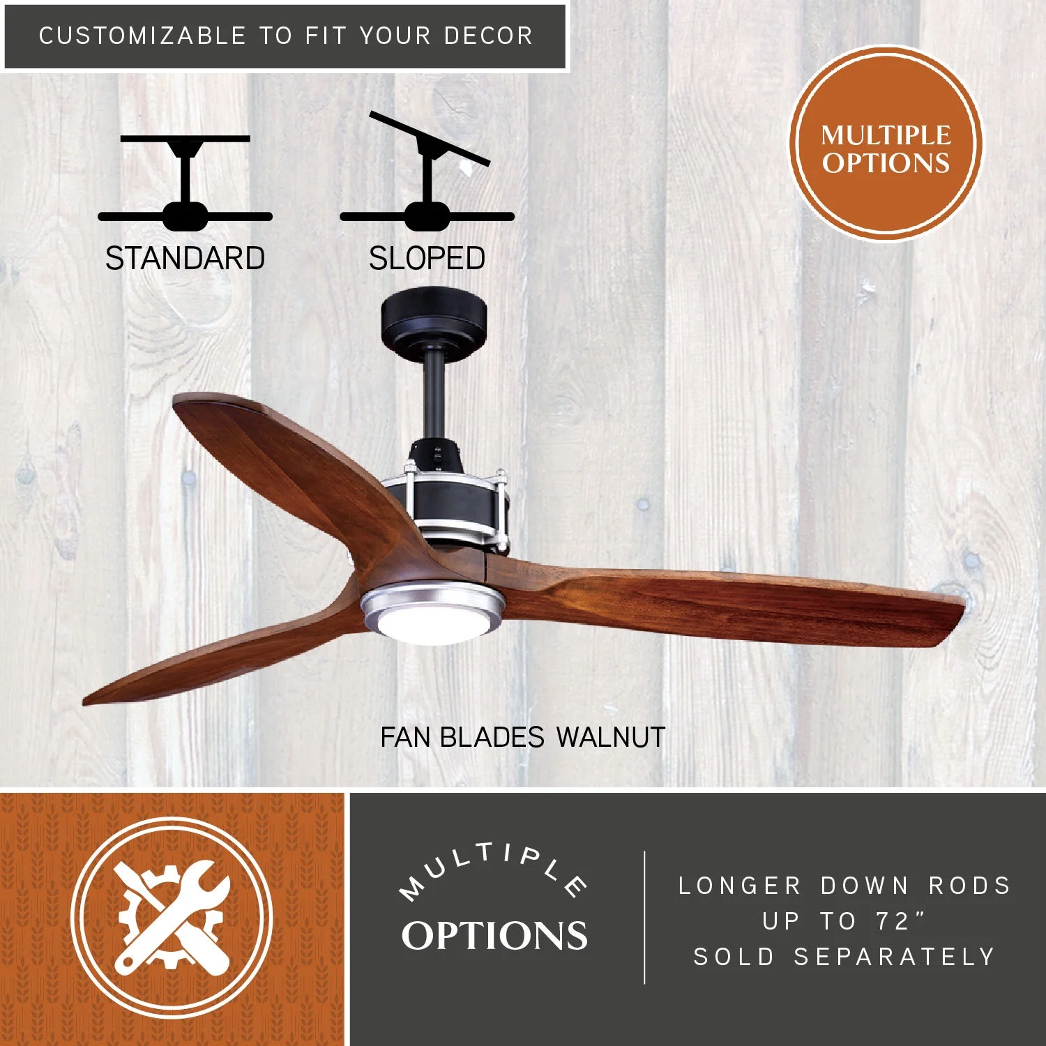 - Hard carved solid wood blades finished in walnut perfectly compliment the satin brass motor housing