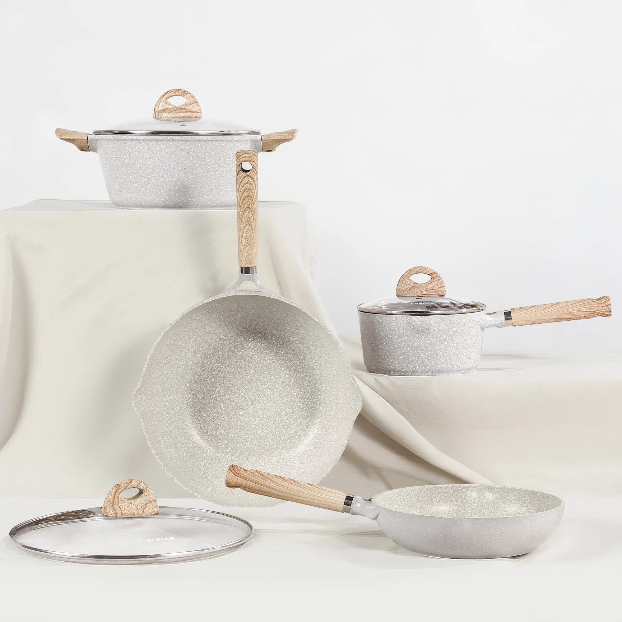 Forged with die-cast technology for impact-resistant durability, our cookware set withstand daily use while maintaining structural integrity. Precision heat distribution cooks food perfectly at medium-low temperatures, saving energy consumption. The pots and pans with upgraded coating ensures edible safety and effortless cleaning - simply rinses clean post-cooking. Ergonomic heatproof handles of the pots and pans set provide optimal grip control for searing, stir-frying, simmering and braising. Seamlessly transitions from home kitchens to camping trips, the cookware set is compatible with gas, induction and all major stovetops. Whether you're a novice cook or seasoned chef, unlock daily culinary mastery with this versatile cookware set.