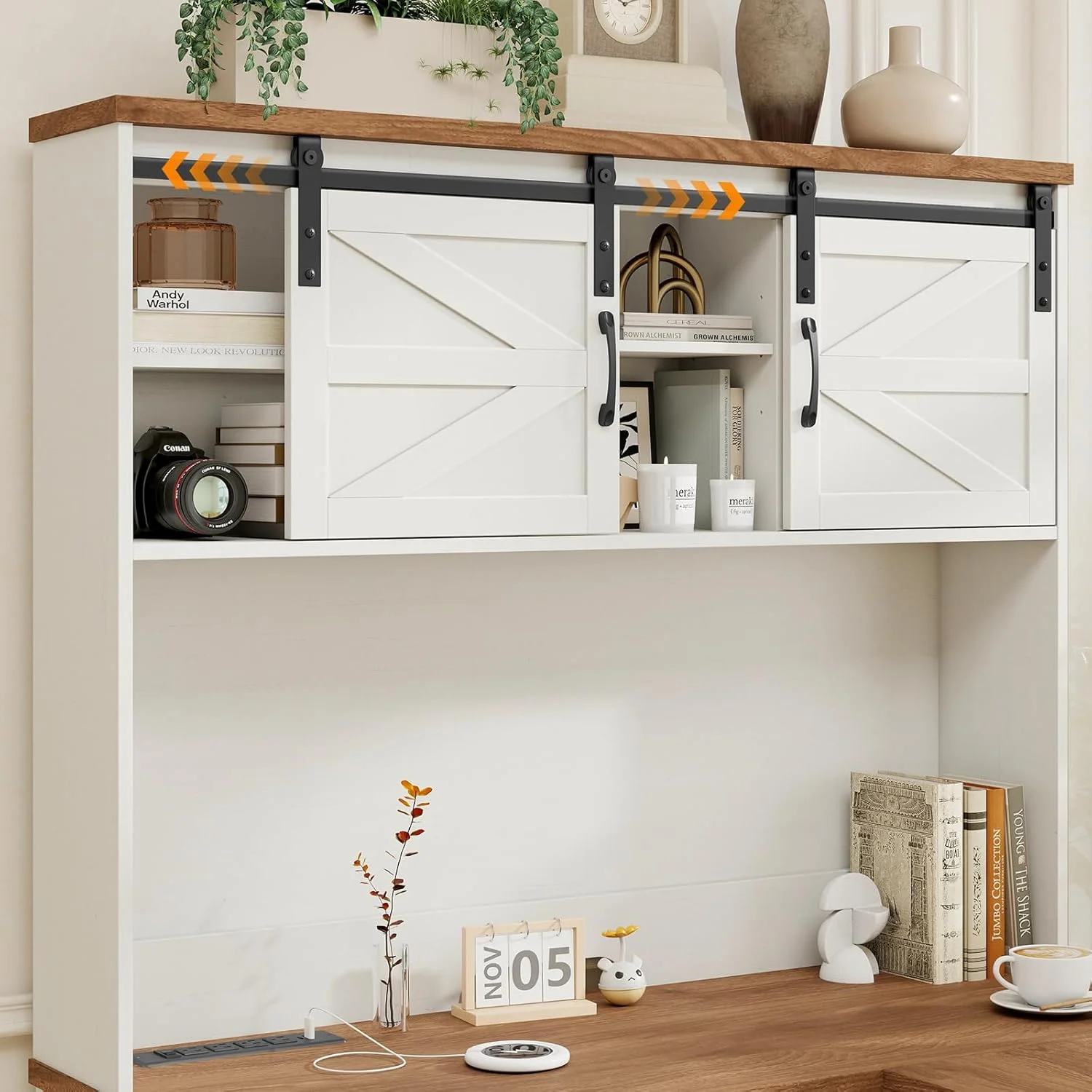 The desk features a two-tier shelving system with an Adjustable Partition between the layers, allowing you to customize the space for items of different heights. The charming Sliding Barn Door adds a unique decorative touch while providing easy access to your books and decorative items. - e??3e??????Classic Farmhouse Design???