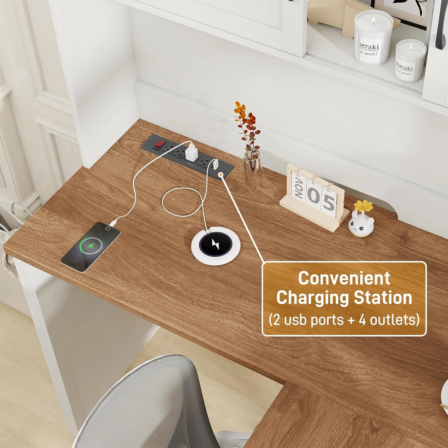 Convenience is key with the desk's Integrated Power Strip and multiple USB Charging Ports. This feature allows you to charge your electronic devices directly from the desk, reducing clutter and enhancing productivity. - e??3e??????Ample Storage with Filing Drawers???