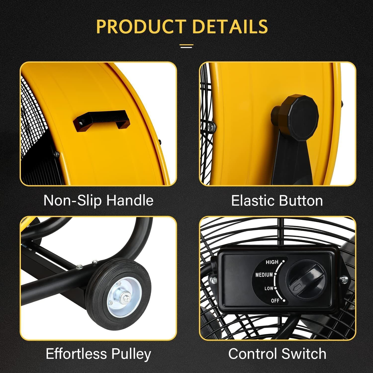 - Tilt Air Circulator Metal Drum Fan - This 24 Inches roll-around tilt fan from Simple Deluxe is ideal for garages, basements, covered patios, workshops or even warehouse and factory stations and it tilts a full 360 degrees.