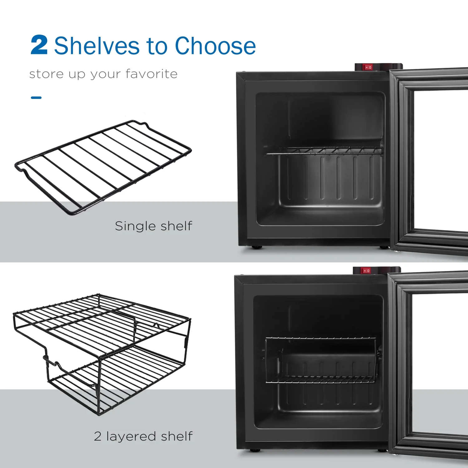 - 3-LAYER GLASS DOOR - Unlike most small upright freezers on the market, this model uses 3-layers of premium glass for an airtight construction that reduces most problems you experience with inferior display freezers. This helps keep a steady temperature whilst keeping the glass clear and the contents visible.
