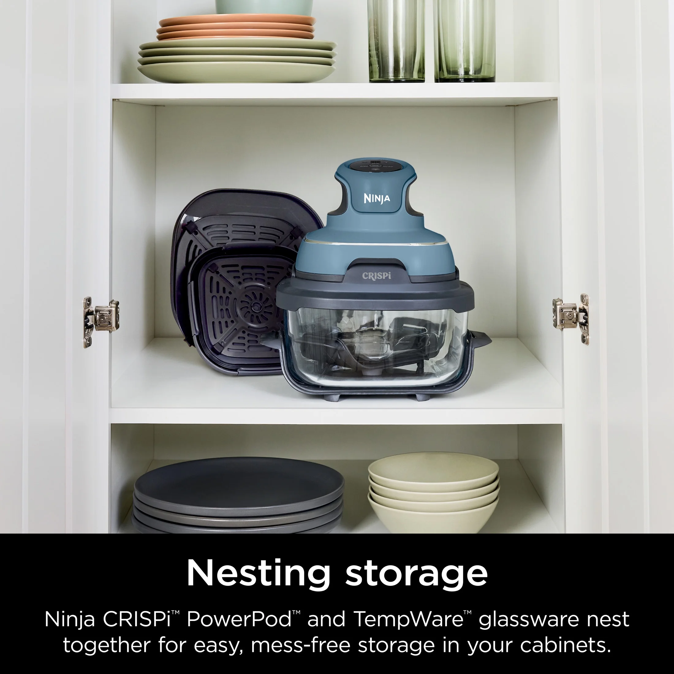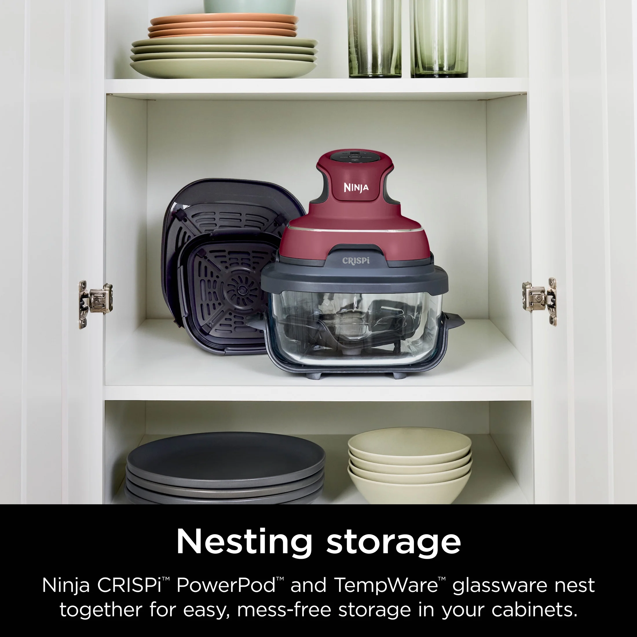 - EASY STORAGE: Ninjas Crispi PowerPod and TempWare glassware nests together for mess-free storage in your cabinets