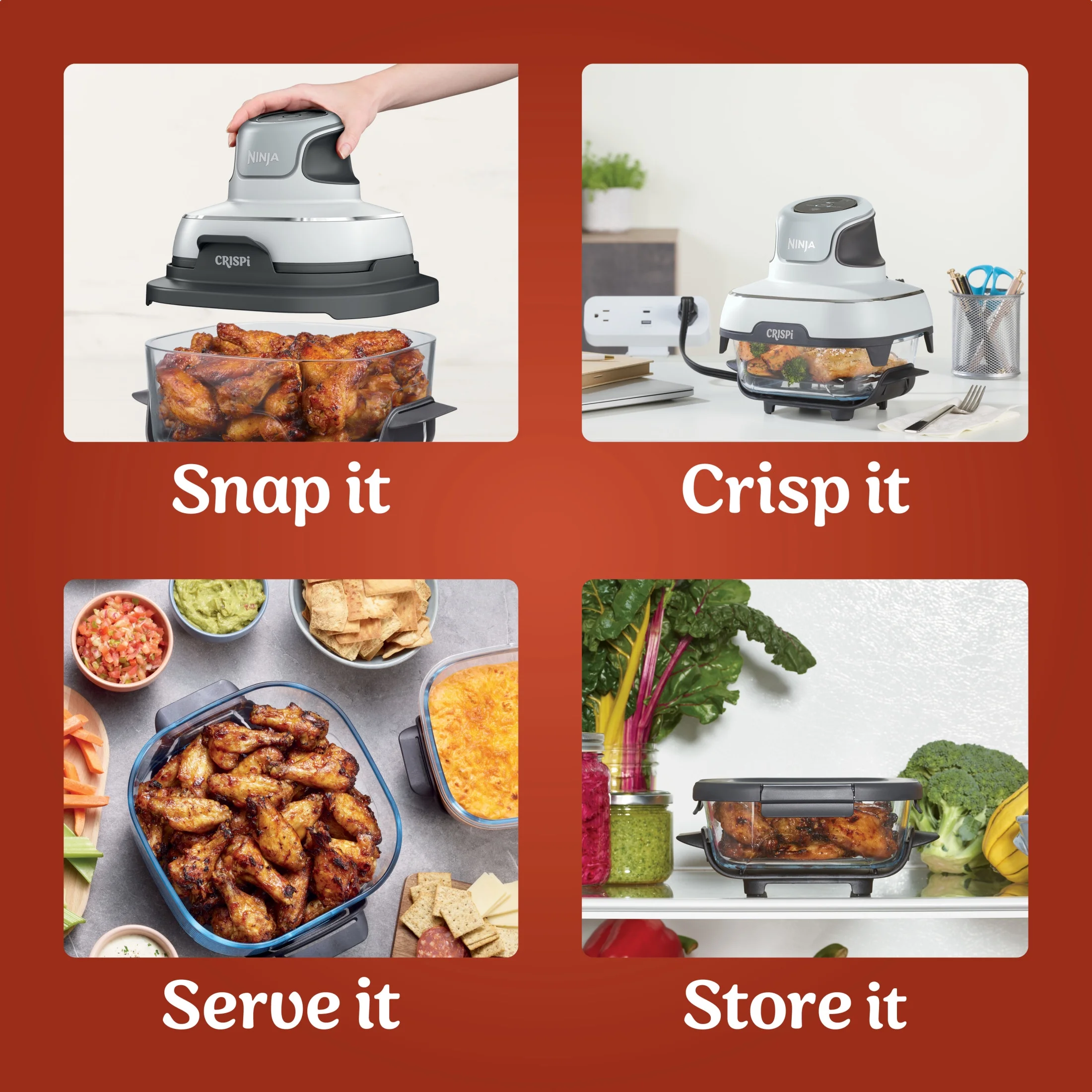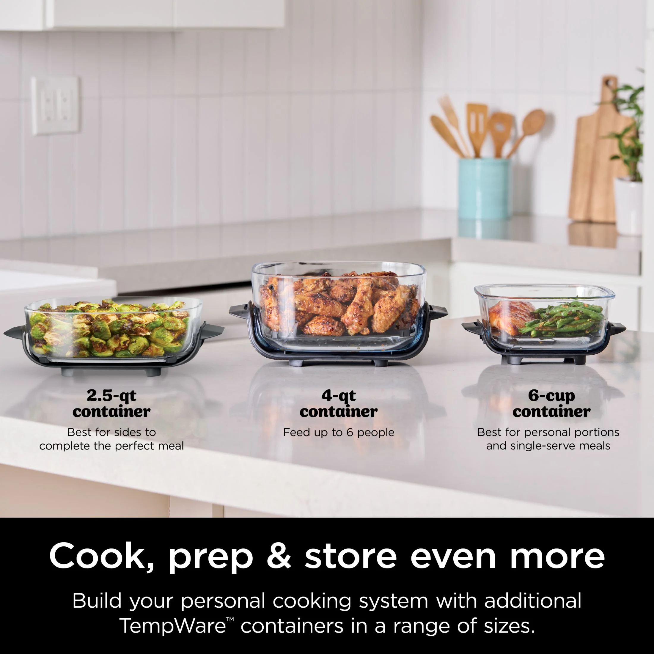 - ALL-IN-ONE SYSTEM: Includes the Ninja Crispi PowerPod, 4-qt and 5-cup TempWare glass containers, and 2 storage lids