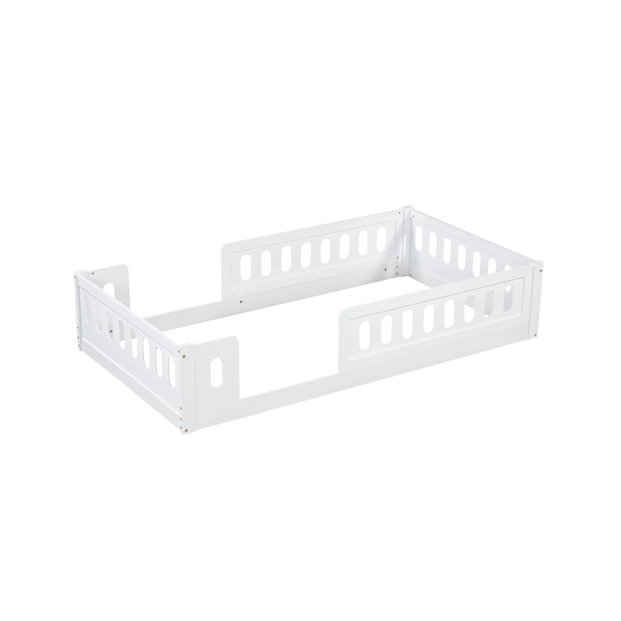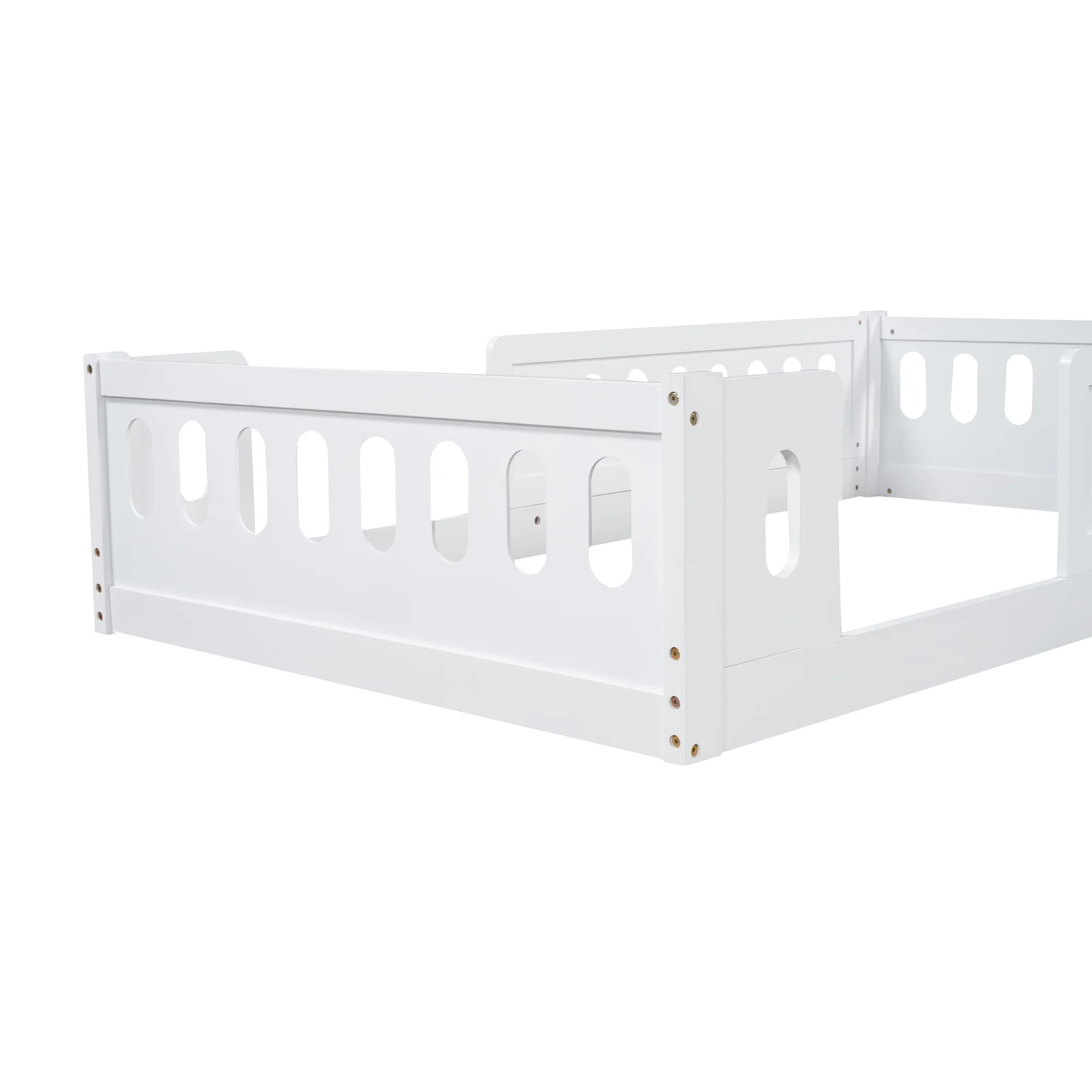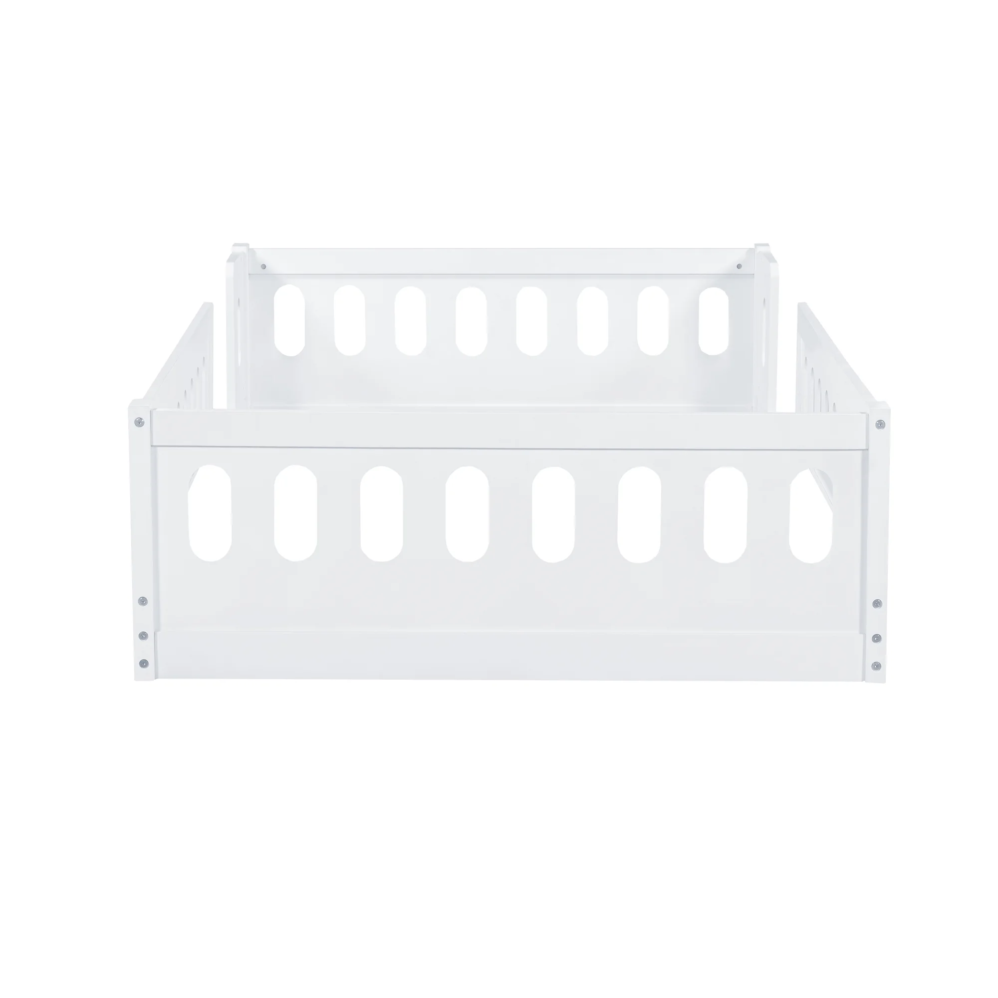 - [Play House in Kids Room]: Kids floor bed featuring a full lenght guardrails, which are relatively popular among children. This bed is a mini house in kids room which creates a fun and adorable space that not only serves as a cosy sleeping area but also double as a playhouse.