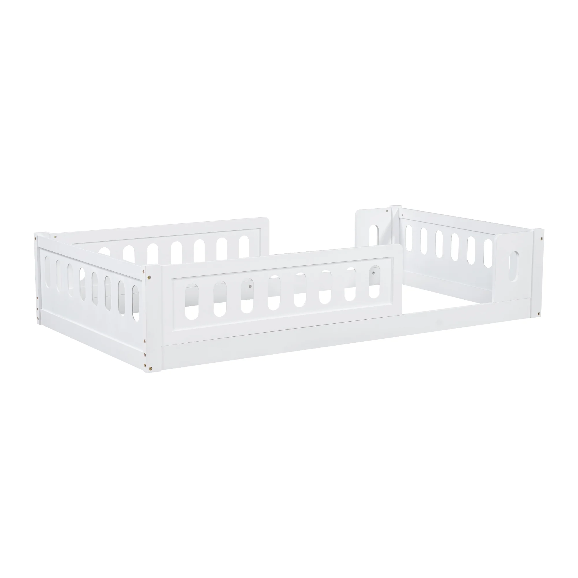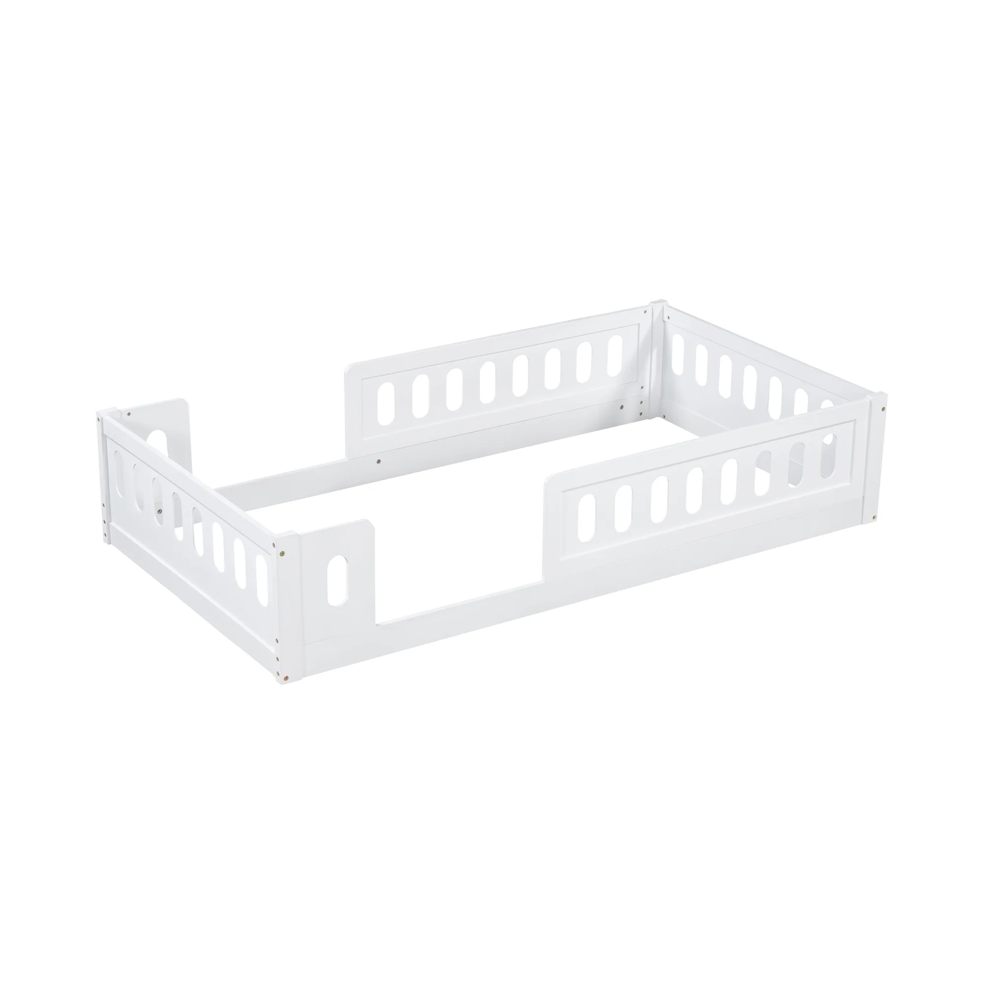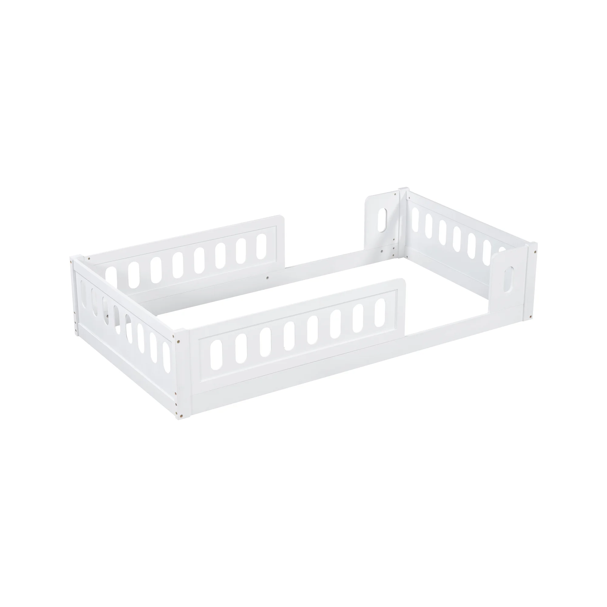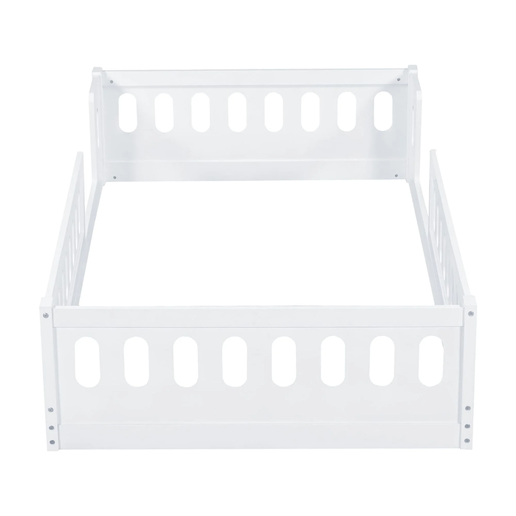 - [Play House in Kids Room]: Kids floor bed featuring a full lenght guardrails, which are relatively popular among children. This bed is a mini house in kids room which creates a fun and adorable space that not only serves as a cosy sleeping area but also double as a playhouse.