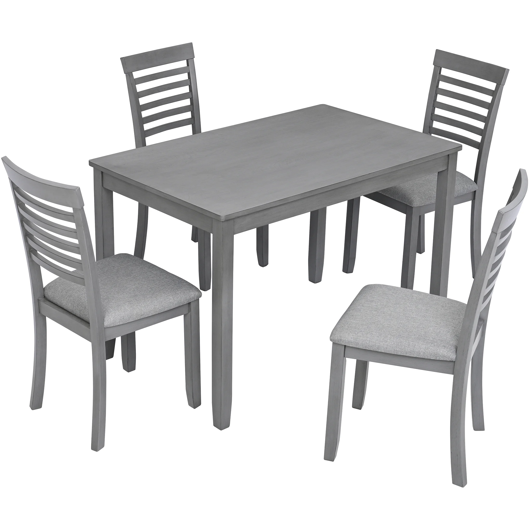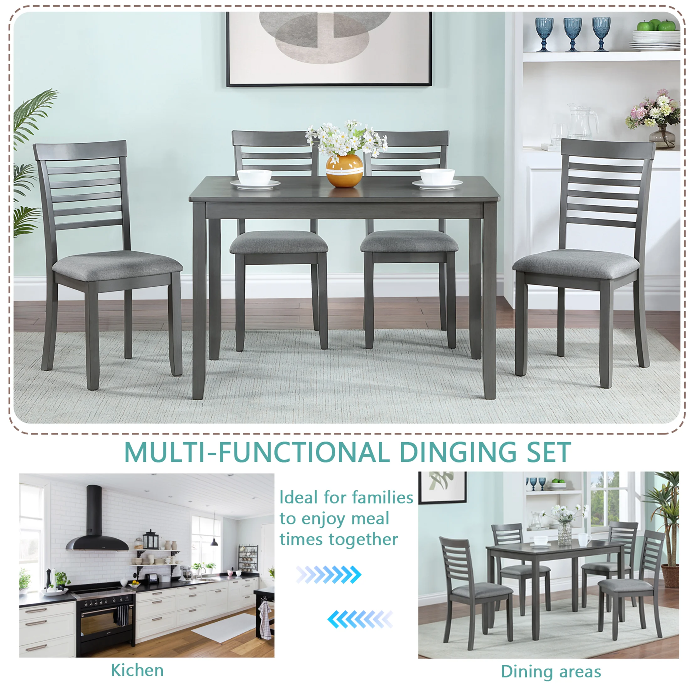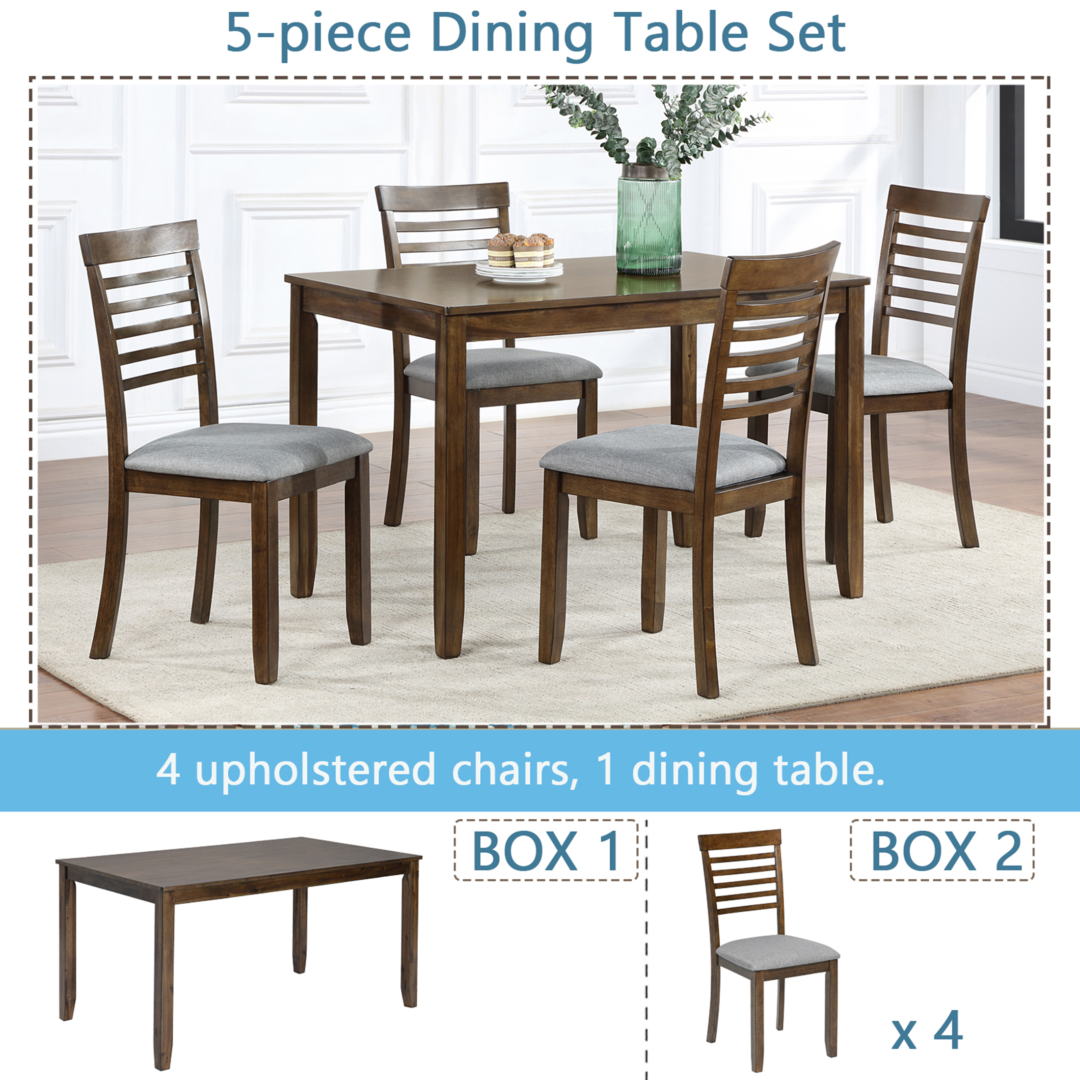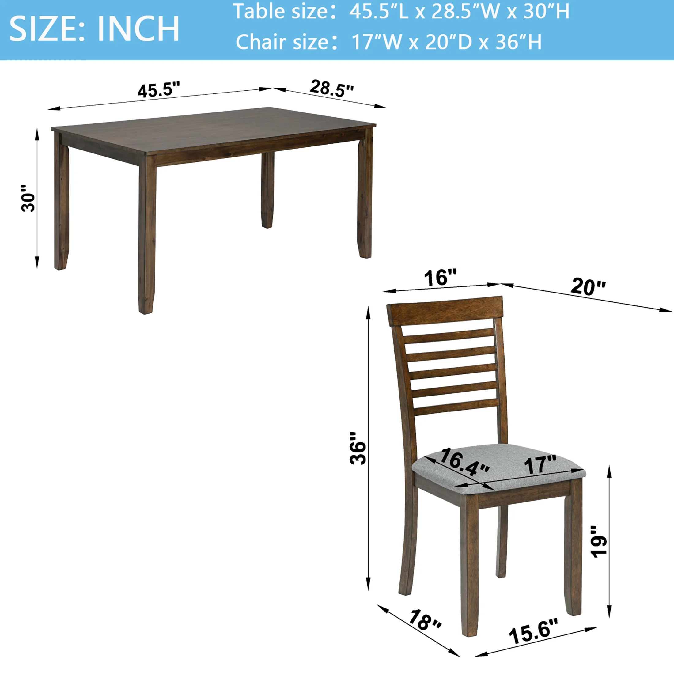 Perfect for Your Family: The dining table set comprises a table and 4 upholstered chairs, ideal for daily family dining. It is compact and provides ample legroom, making it perfect for families with limited space. After a meal, the chairs can be tucked under the table to create more space. The table and chairs can support a weight of up to 330 lbs.