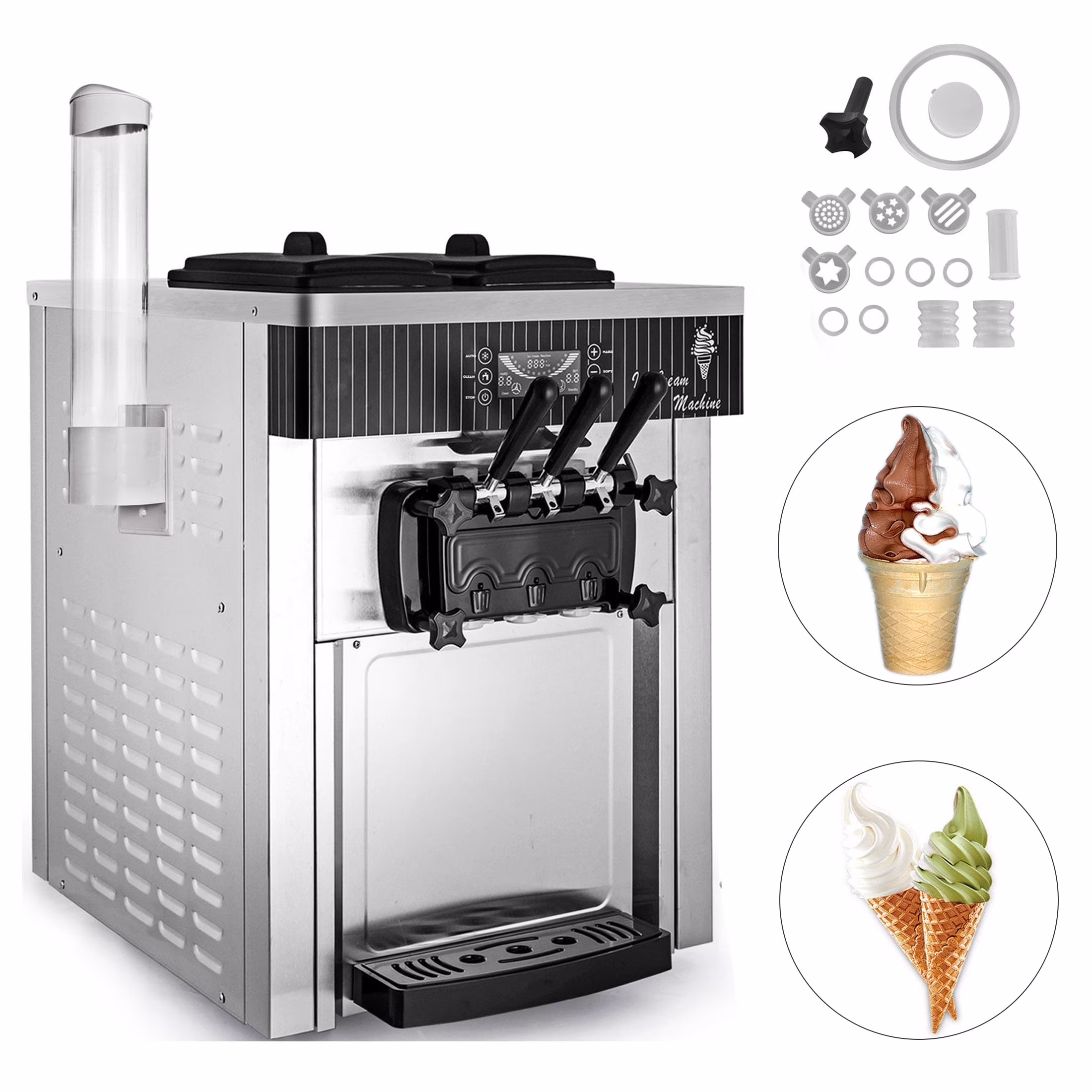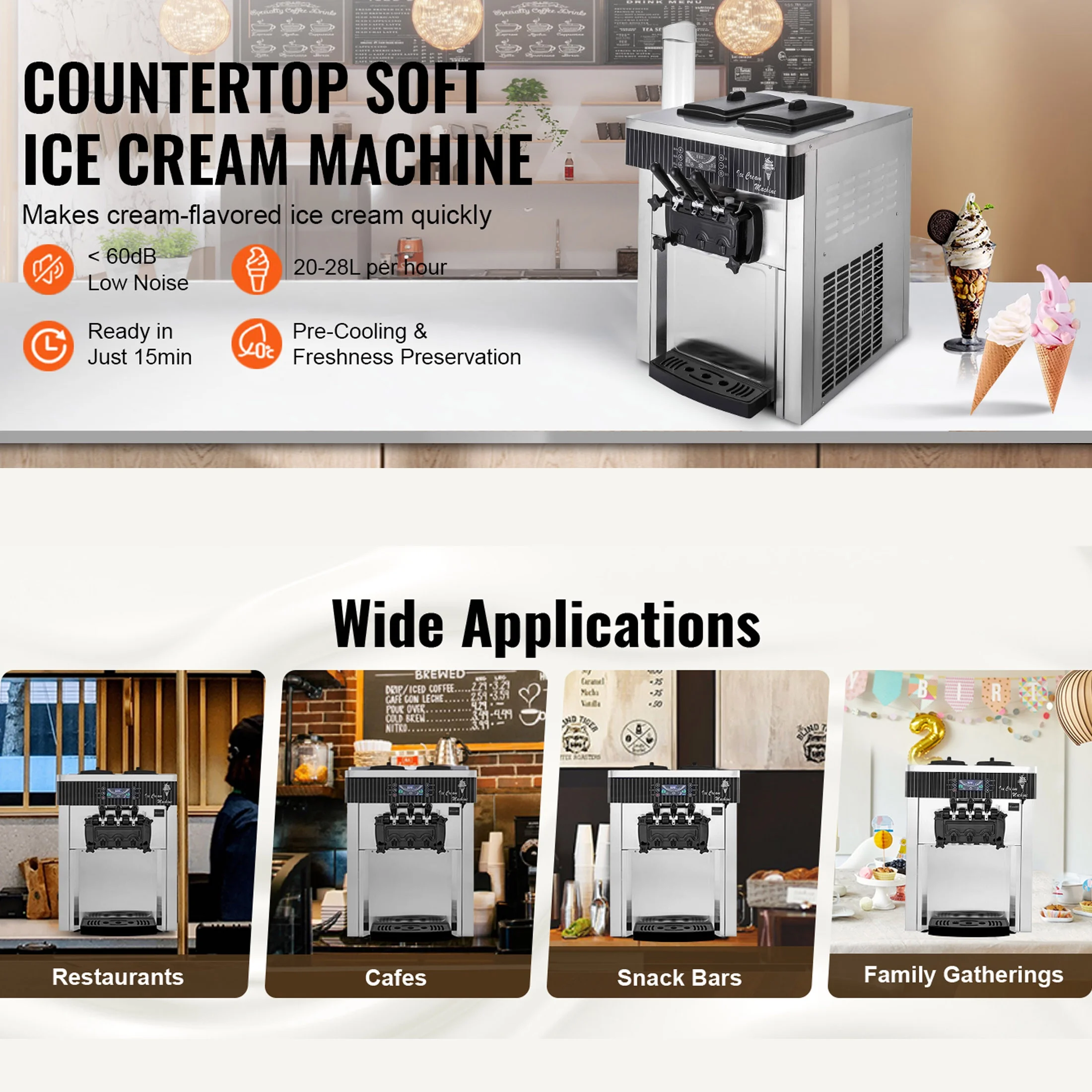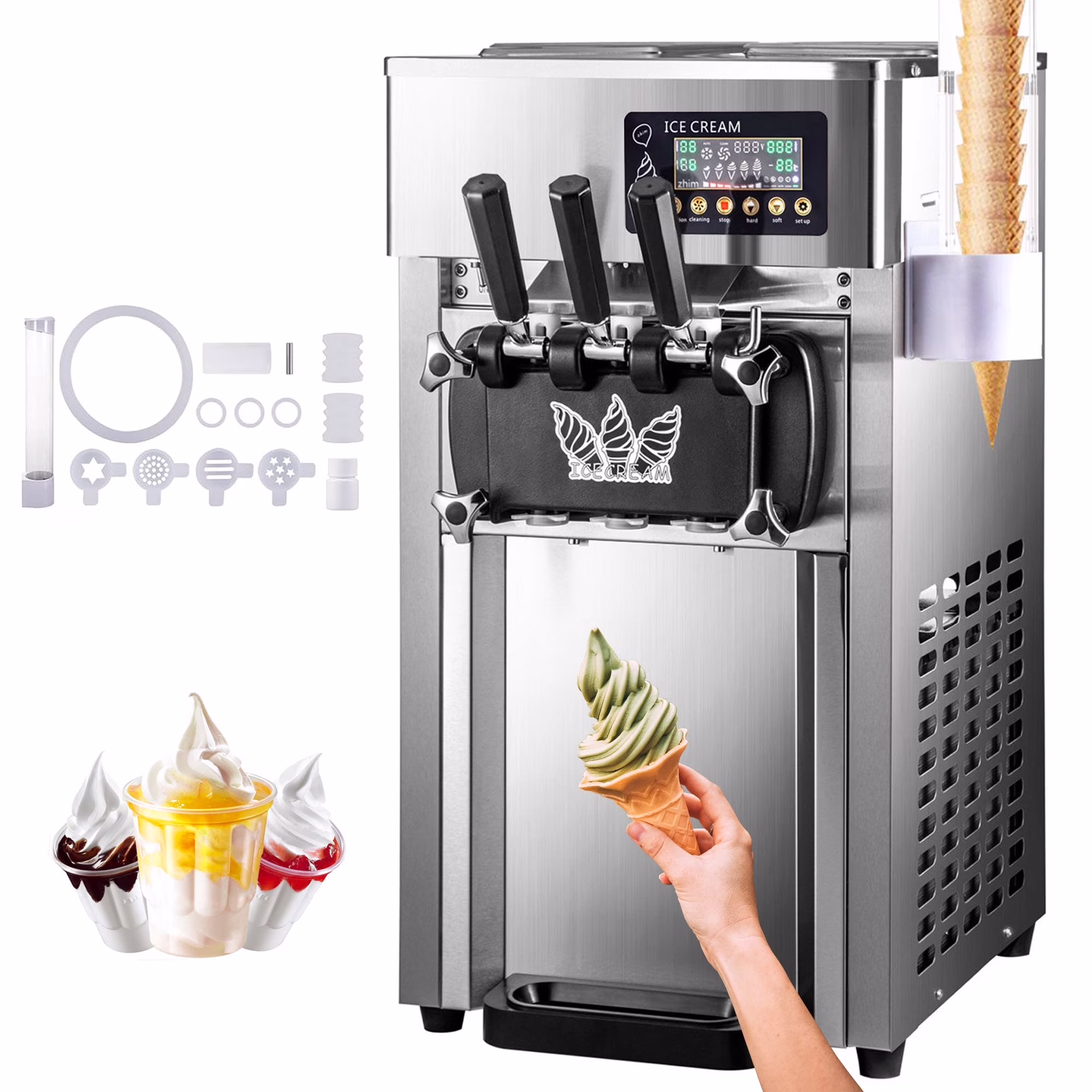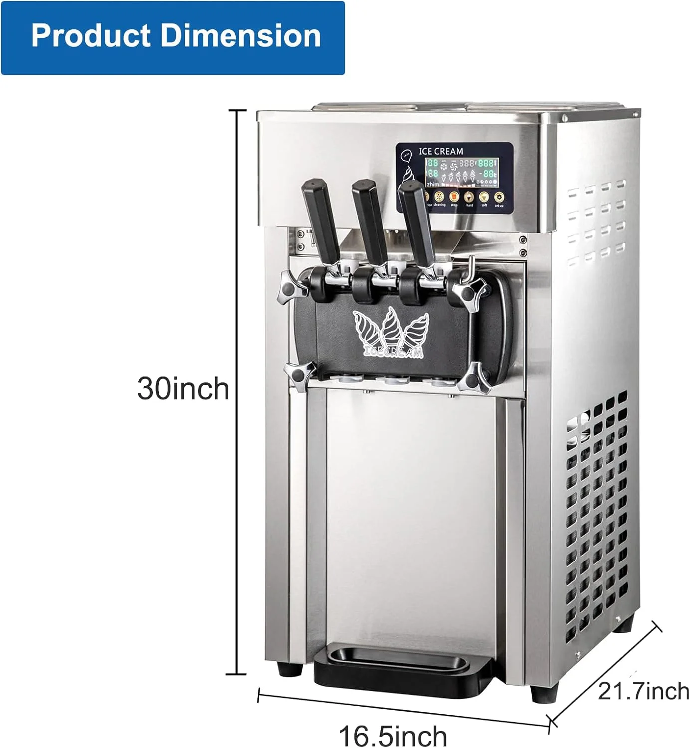 1. 3L High Production Capacity: This commercial ice cream machine is designed with double 0.8 Gal (3L) hoppers, both made of food-grade 304 stainless steel, and can produce up to 5 Gal gallons (18 liters) of ice cream per hour, which can meet daily household or commercial needs.