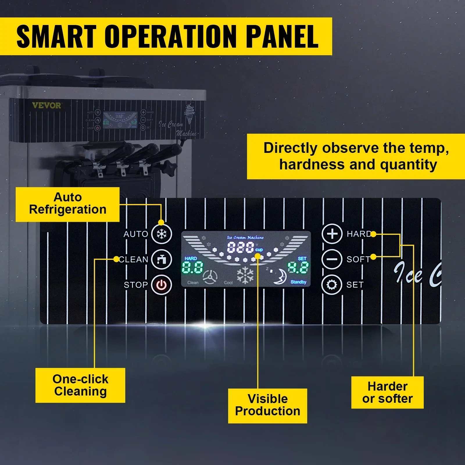 3. 1200W Powerful Compressor: Driven by a 1200 watt brand compressor, this commercial ice cream maker has faster cooling, less noise, and lower power consumption. R410a refrigerant makes ice cream production more efficient and energy-saving, allowing you to don't worry about soaring electricity bills while making the soft ice cream.
