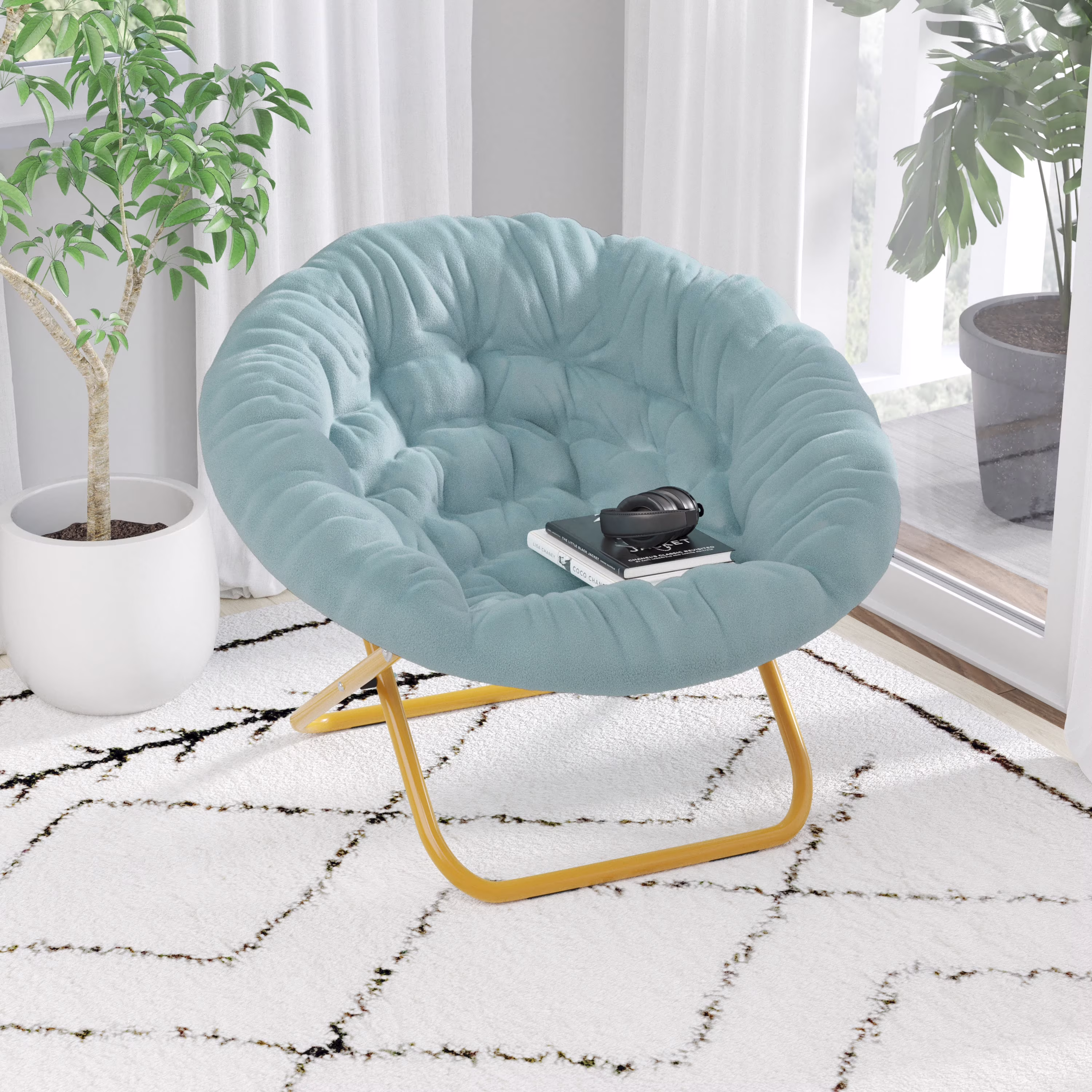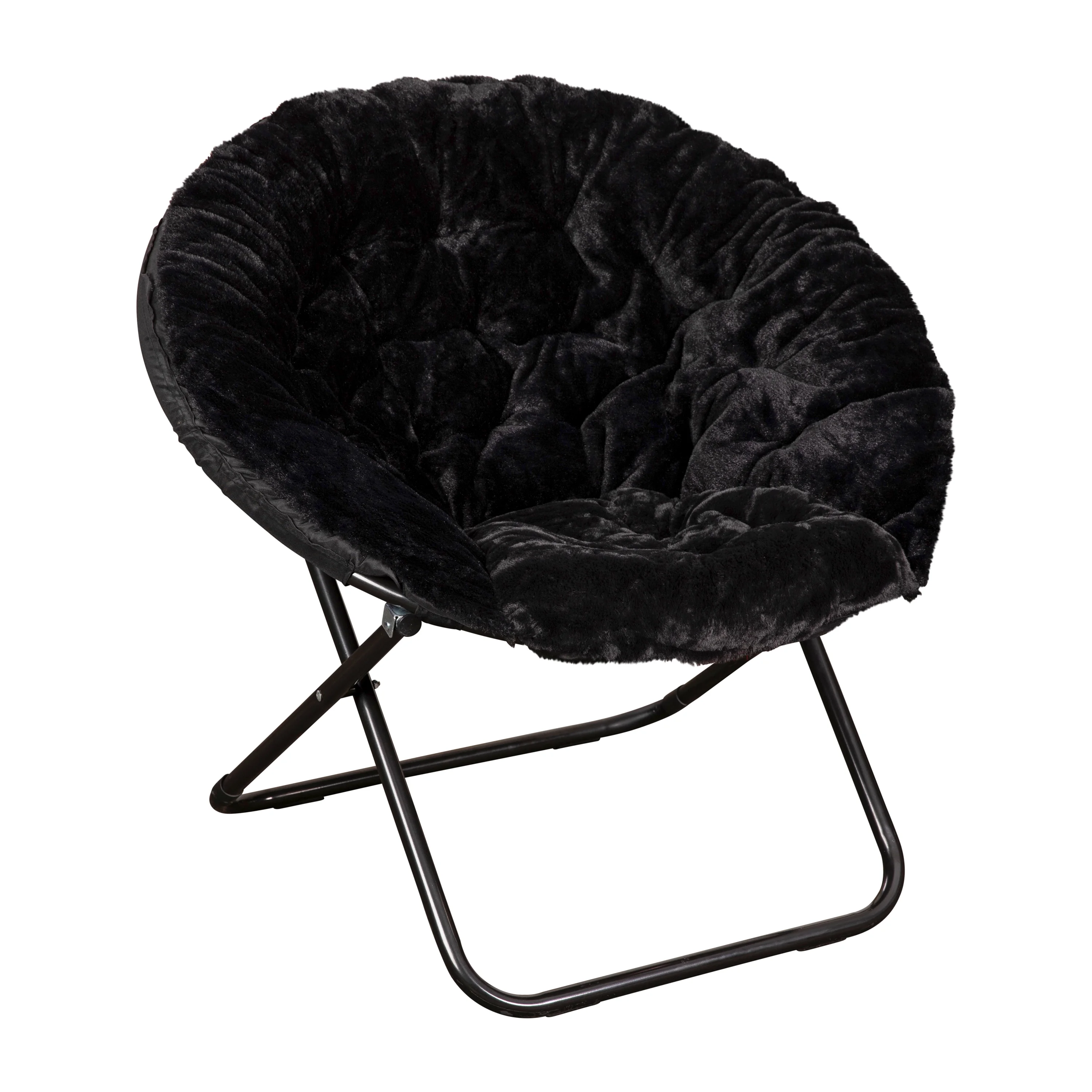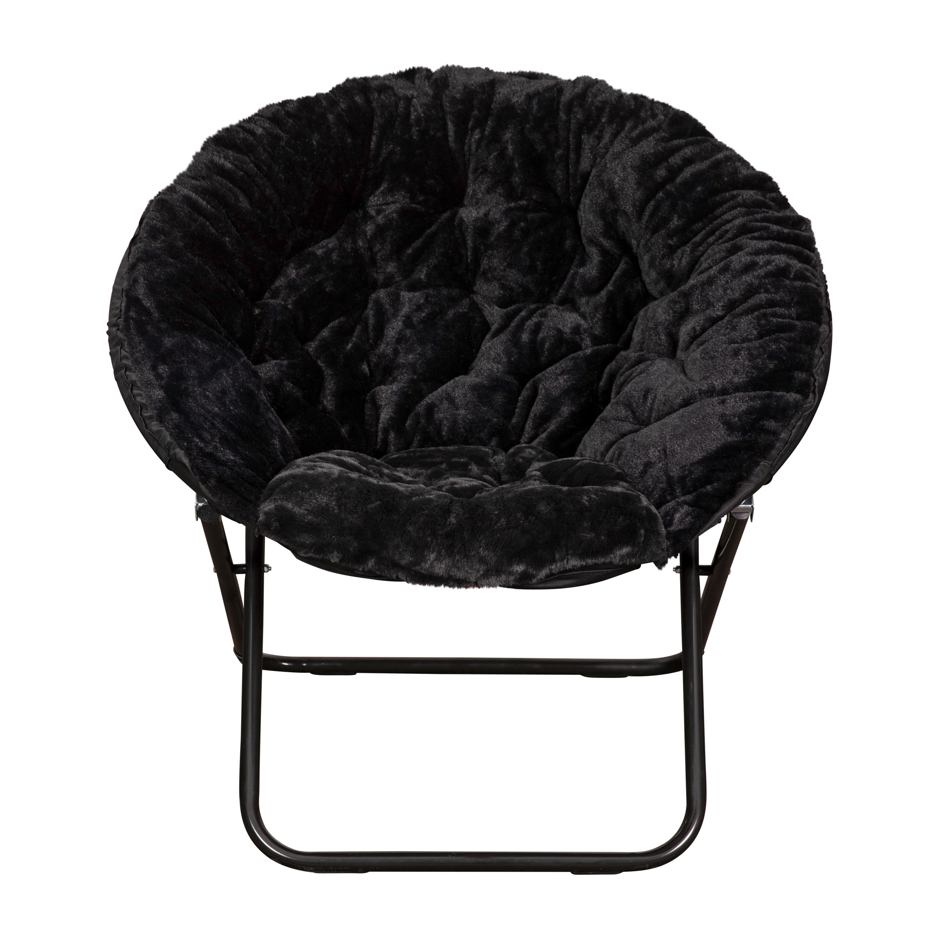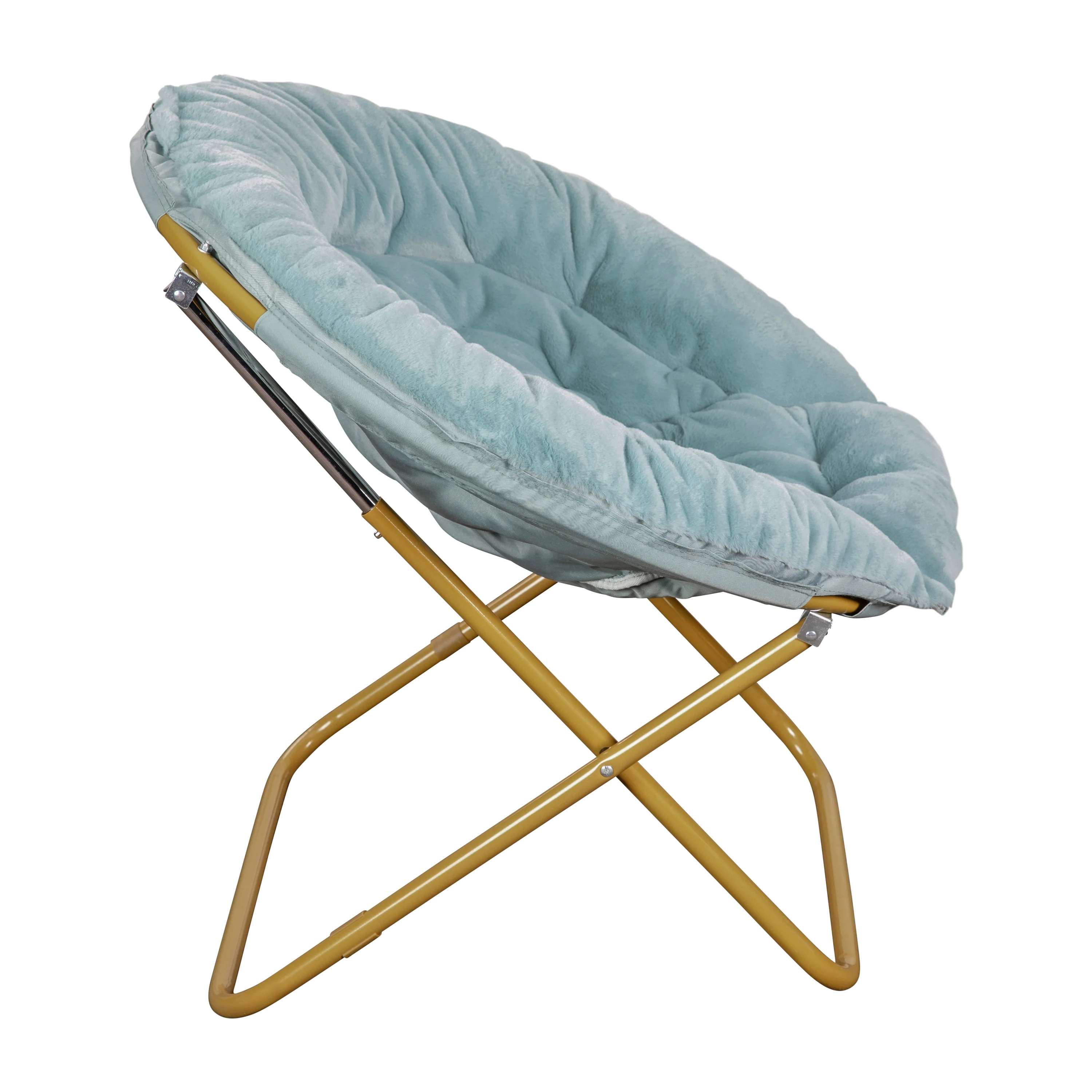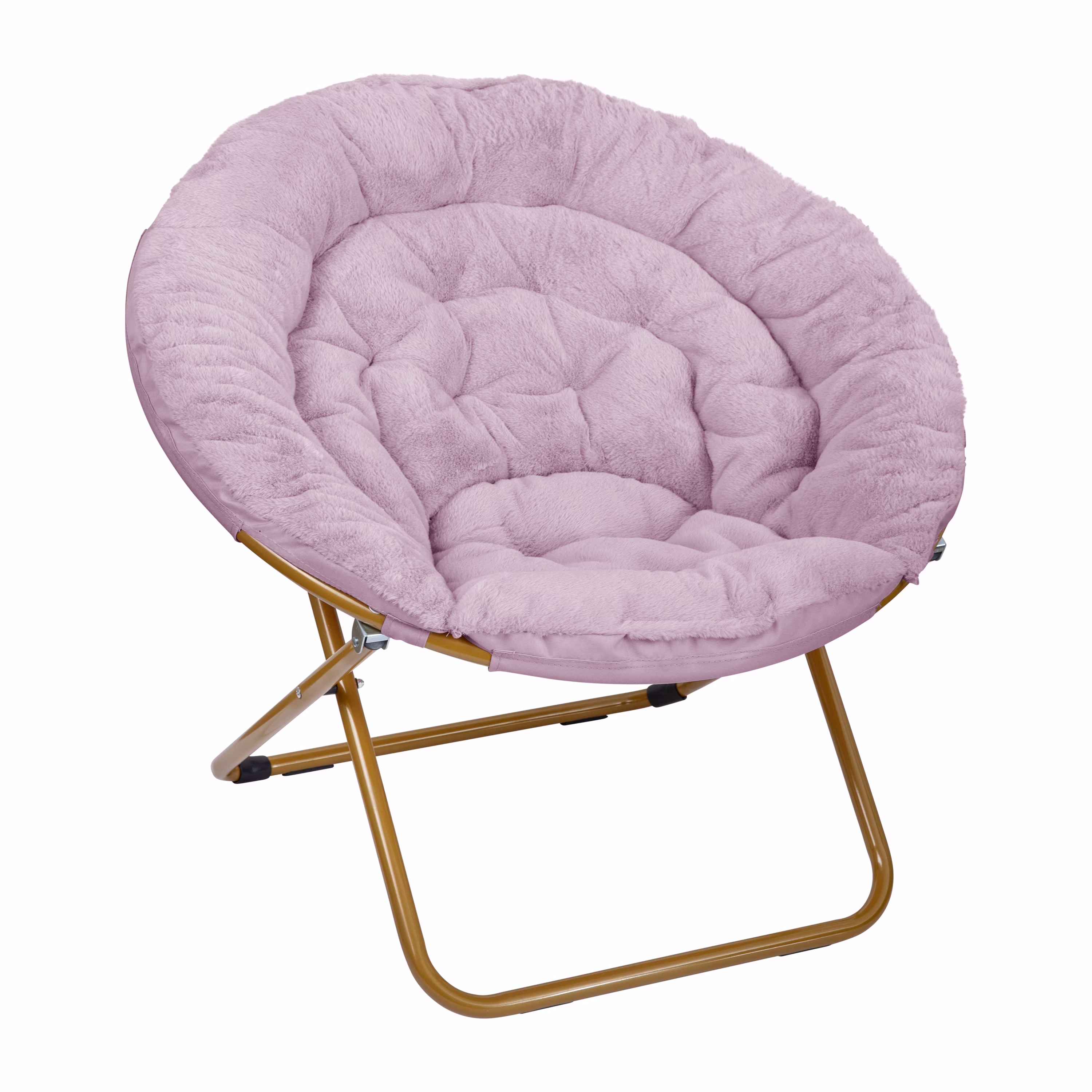 A resurgence in overall well-being elevates comfort to the top of the list when looking for seating making the soft, faux fur upholstery and extra padding in this oversize saucer chair a must have for any dorm room, apartment, or today's homes. The sturdy steel frame holds up to 300 lbs. static weight and folds flat when not in use making it ideal in small spaces and easily portable. The extra large, round frame lets you lounge in almost any position which is great for reading, gaming, or watching tv. Perfect for gift giving, this moon chair requires no assembly and can be enjoyed right out of the box. A damp rag with a mild detergent will keep your new favorite relaxation spot looking great.