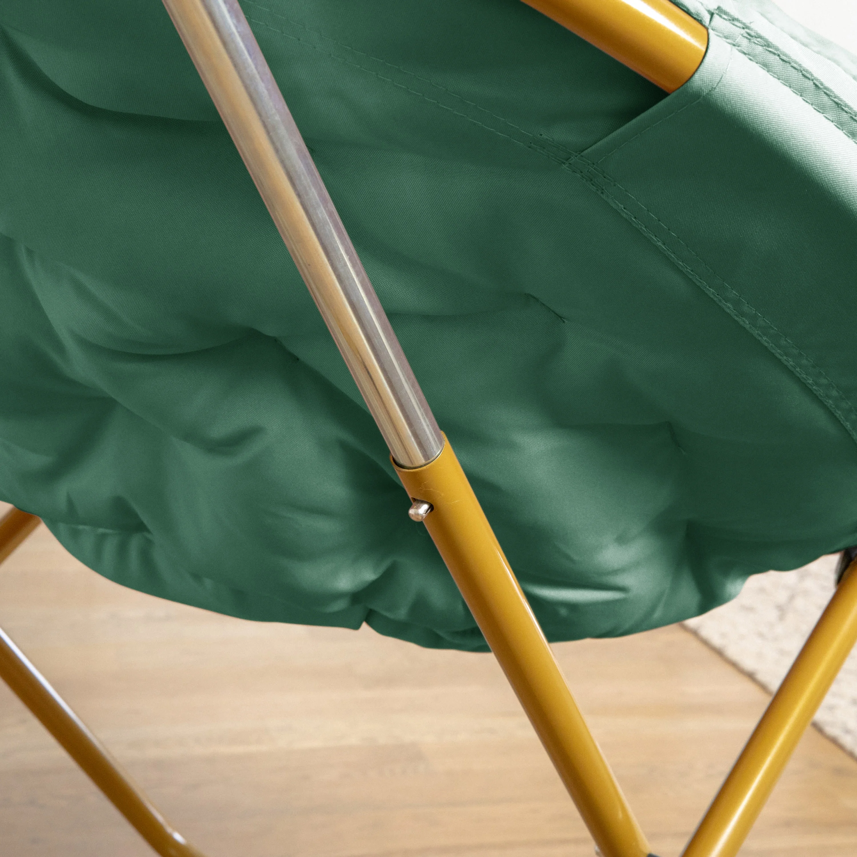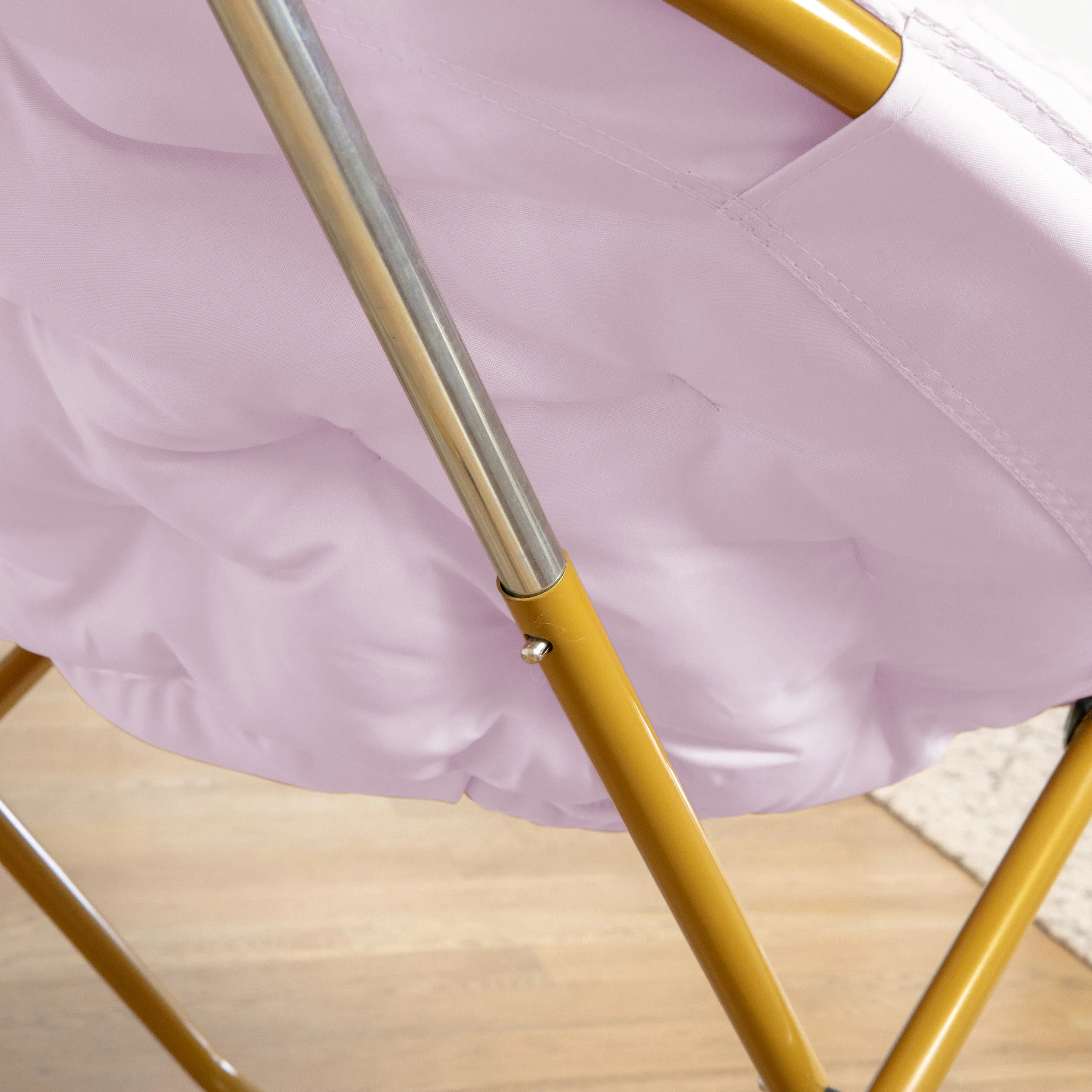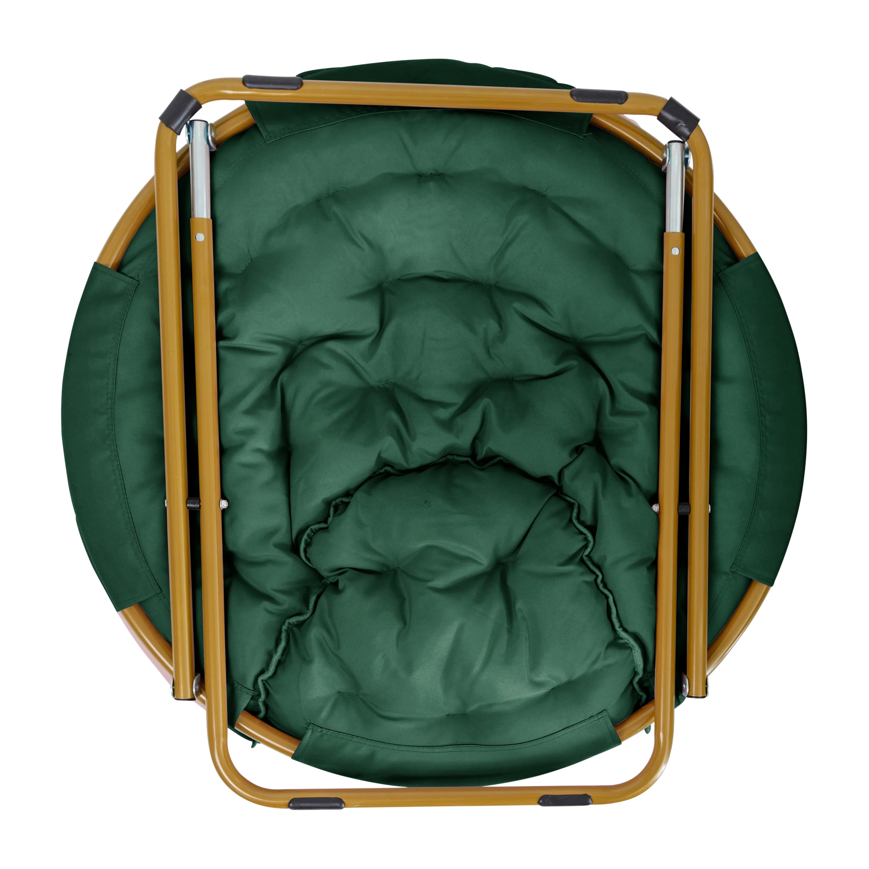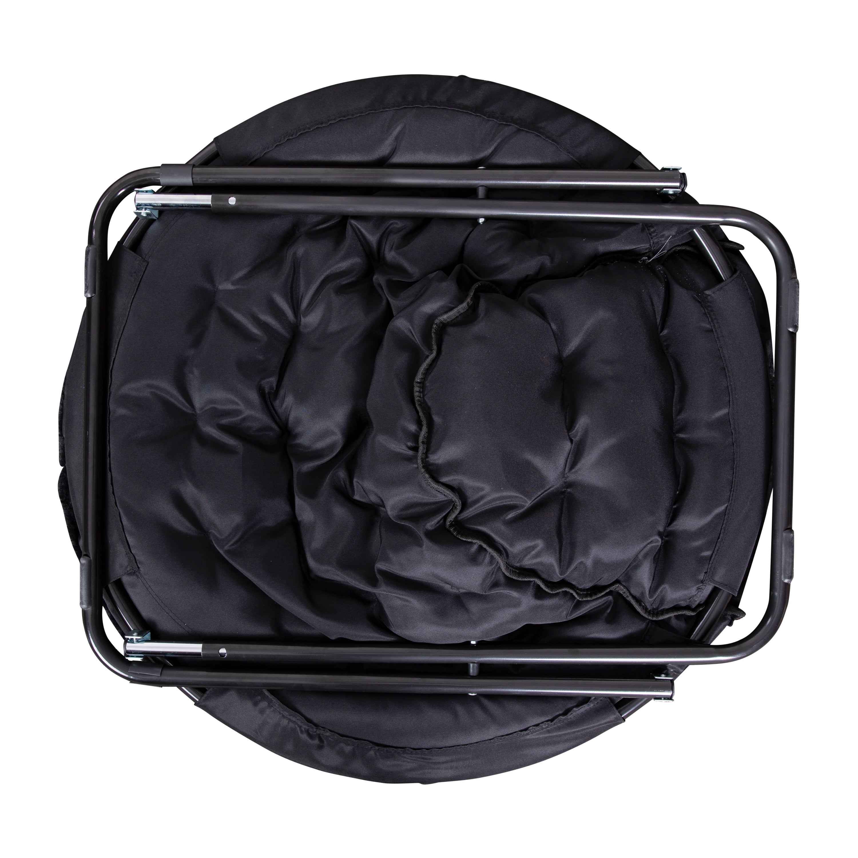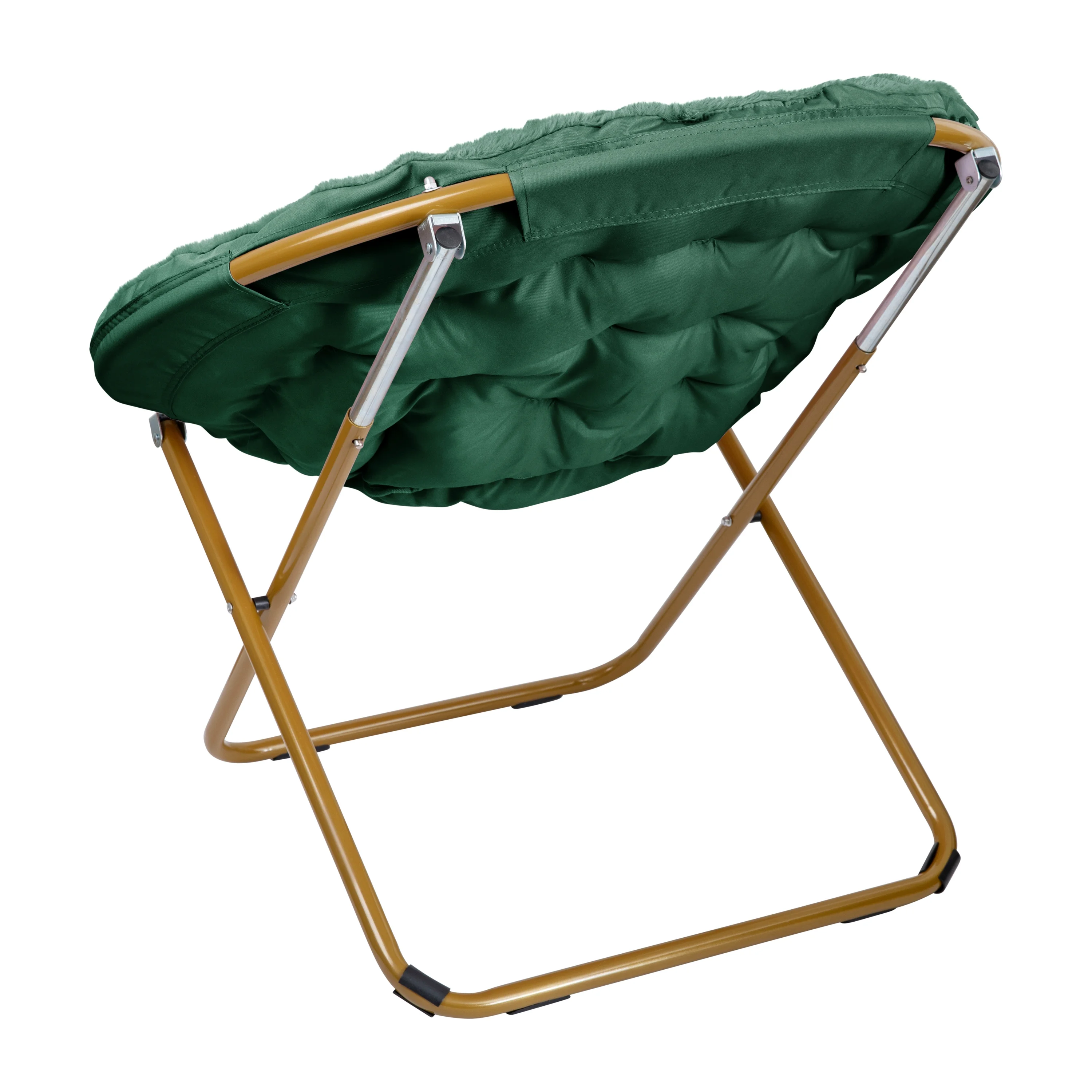 A resurgence in overall well-being elevates comfort to the top of the list when looking for seating making the soft, faux fur upholstery and extra padding in this oversize saucer chair a must have for any dorm room, apartment, or today's homes. The sturdy steel frame holds up to 300 lbs. static weight and folds flat when not in use making it ideal in small spaces and easily portable. The extra large, round frame lets you lounge in almost any position which is great for reading, gaming, or watching tv. Perfect for gift giving, this moon chair requires no assembly and can be enjoyed right out of the box. A damp rag with a mild detergent will keep your new favorite relaxation spot looking great.