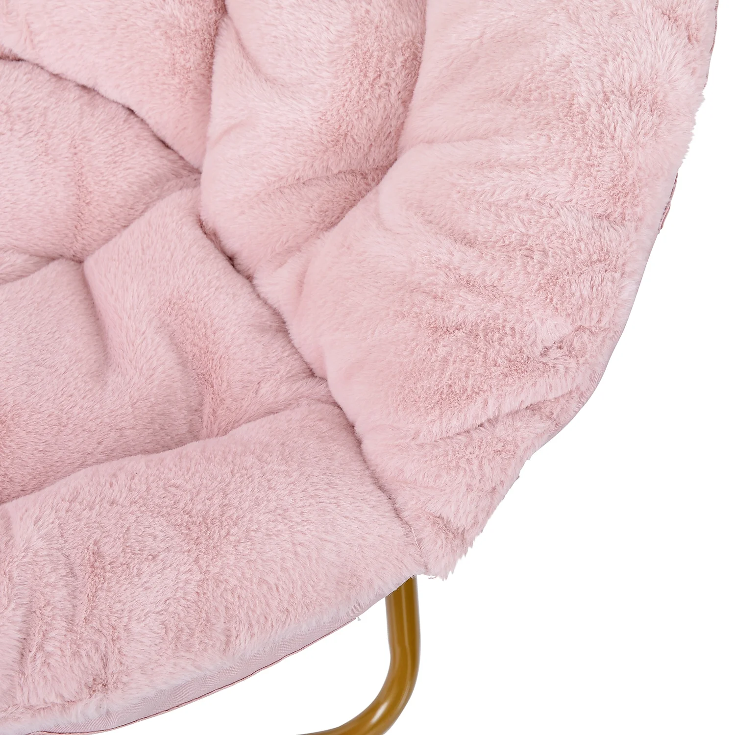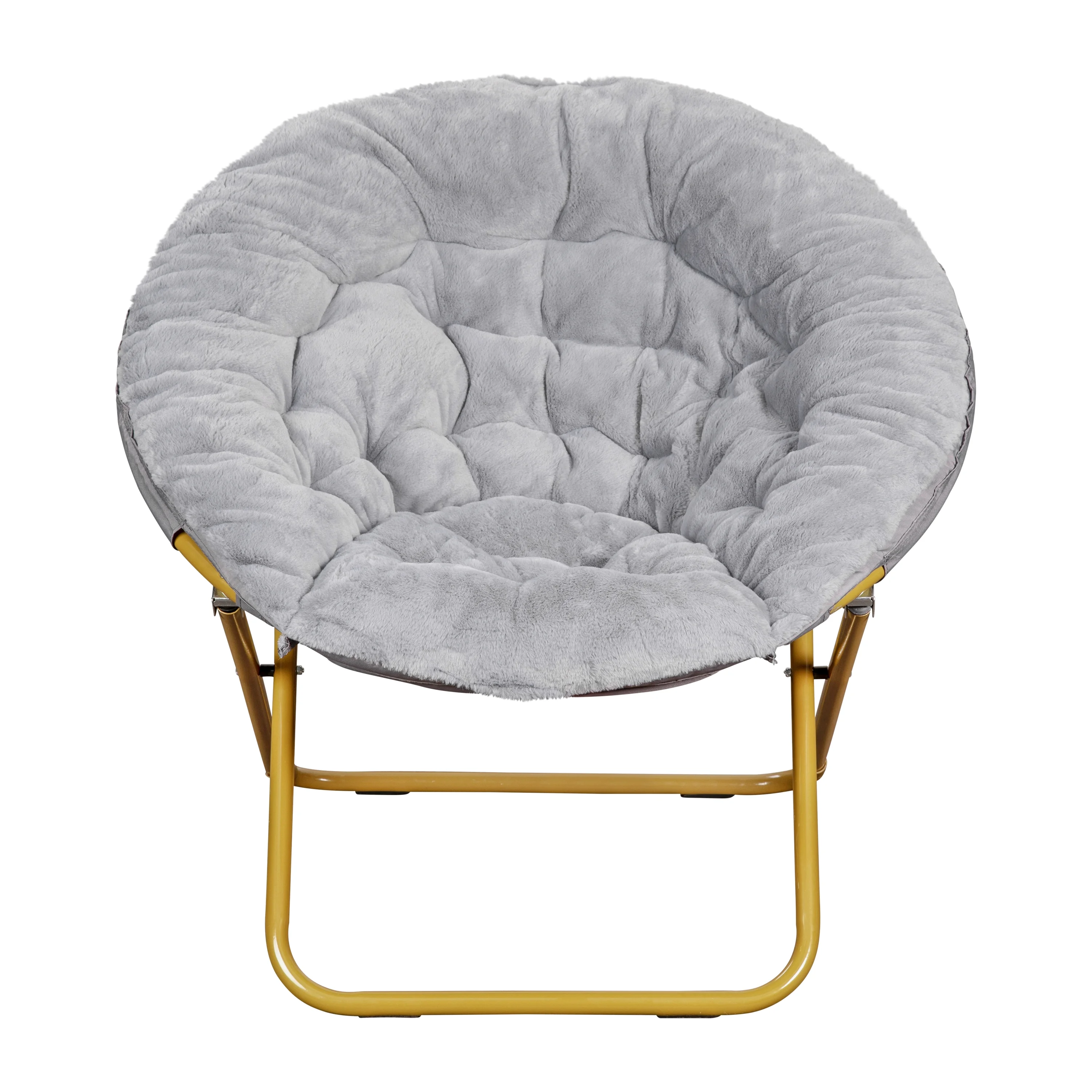 • Bizchair 38" Oversize Portable Faux Fur Folding Saucer Moon Chair for Dorm and Bedroom, Gray Faux Fur/Soft Gold Frame