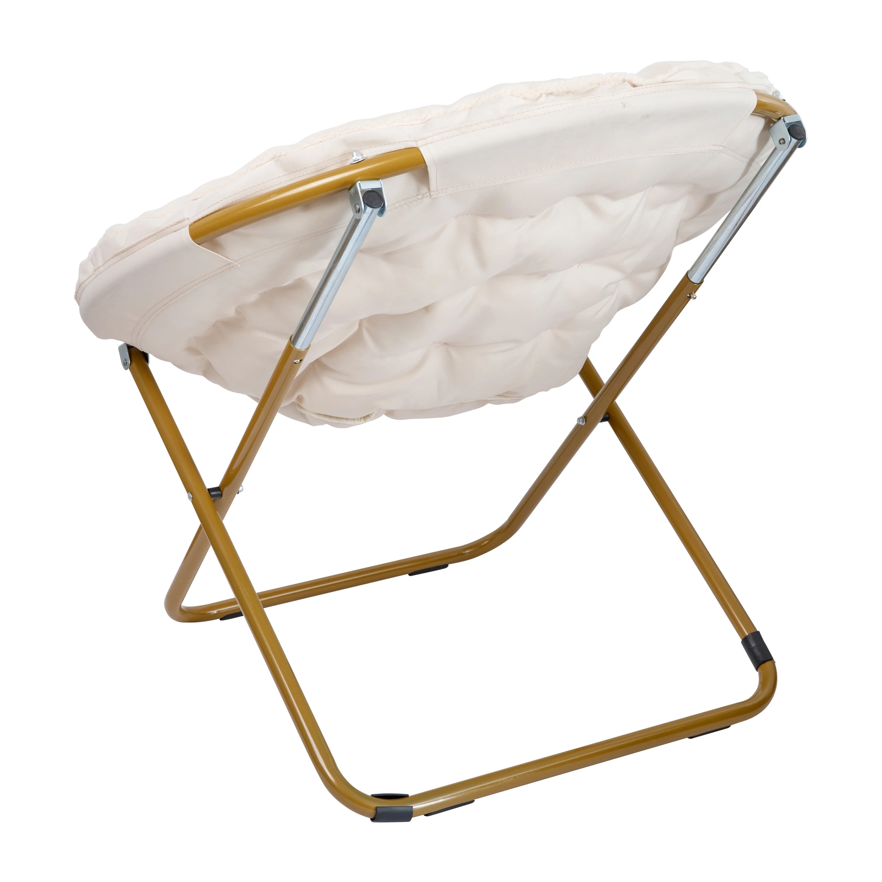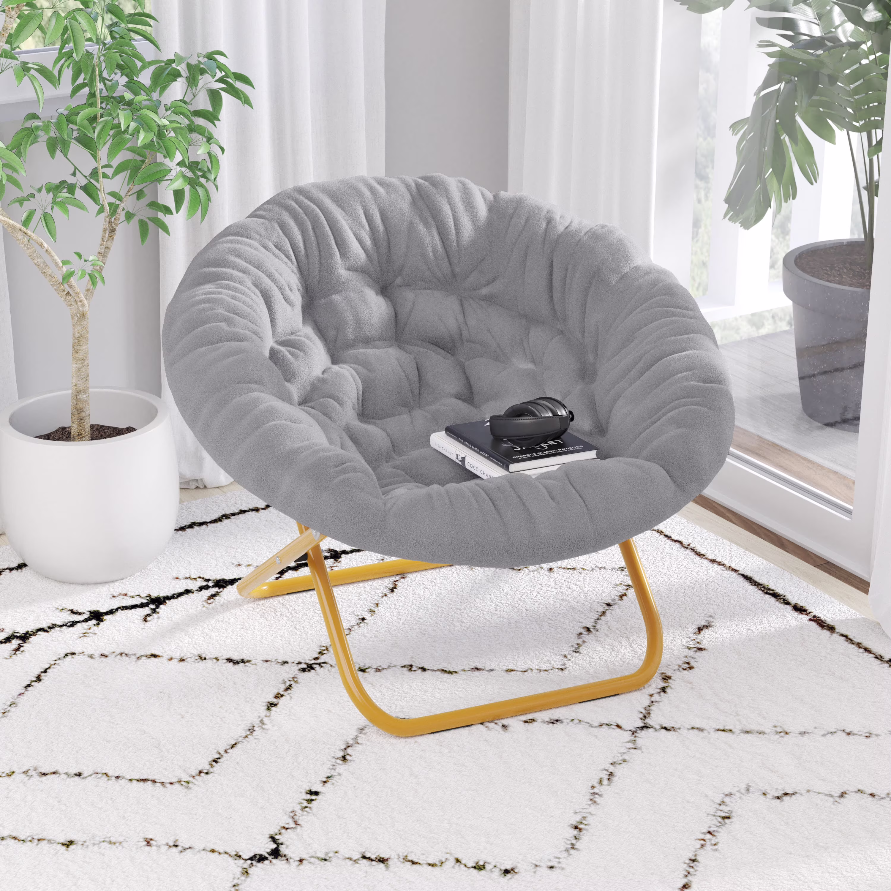 • BizChair 38" Oversize Portable Faux Fur Folding Saucer Moon Chair for Dorm and Bedroom, Gray Faux Fur/Soft Gold Frame