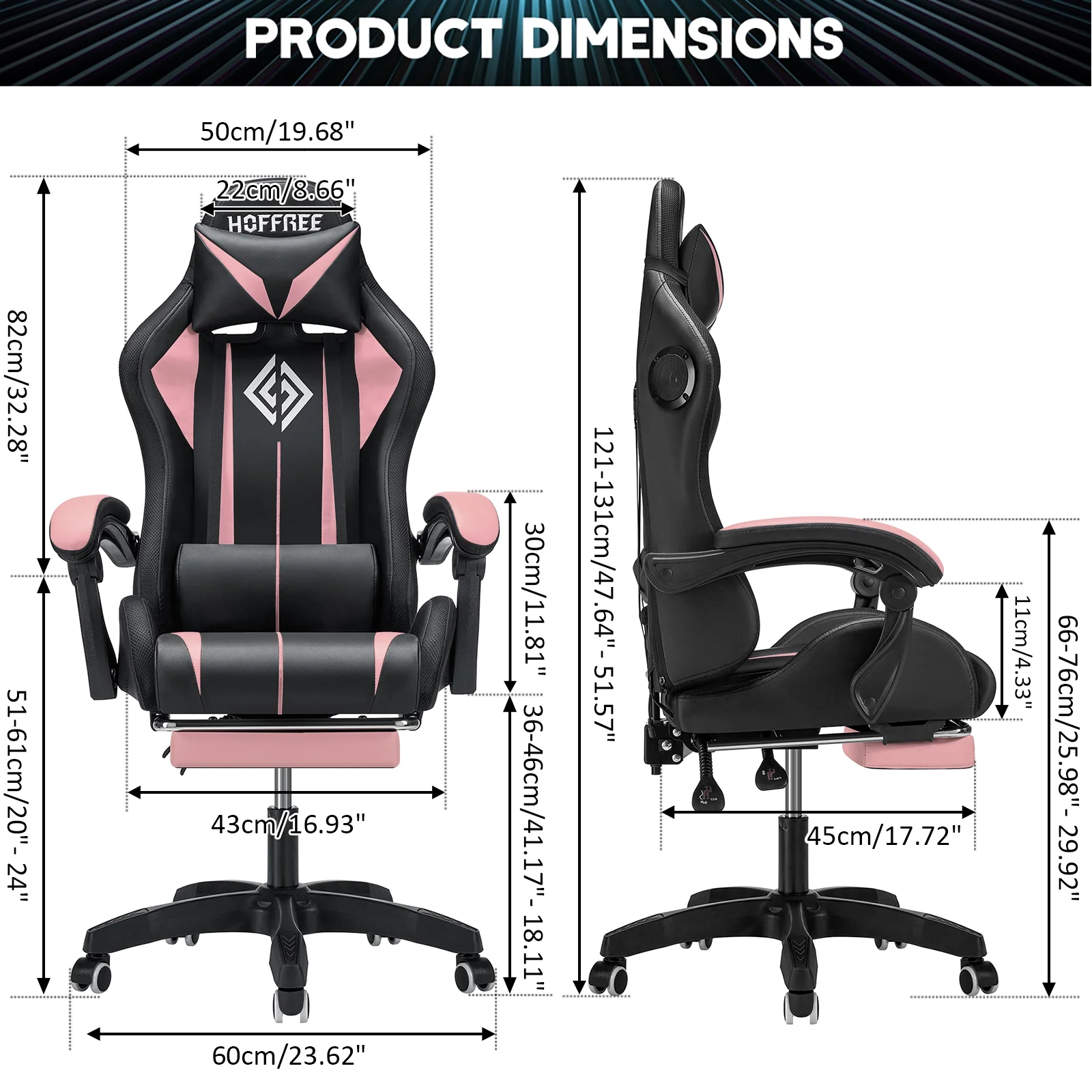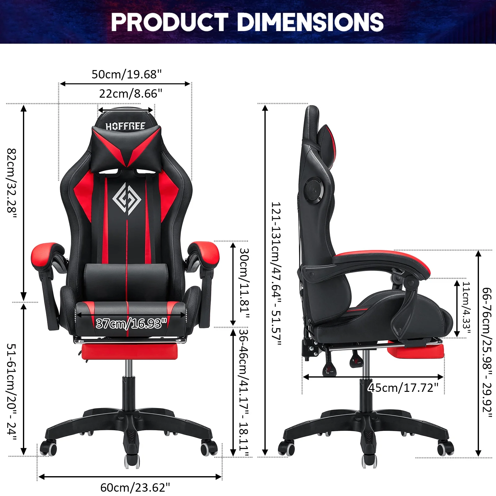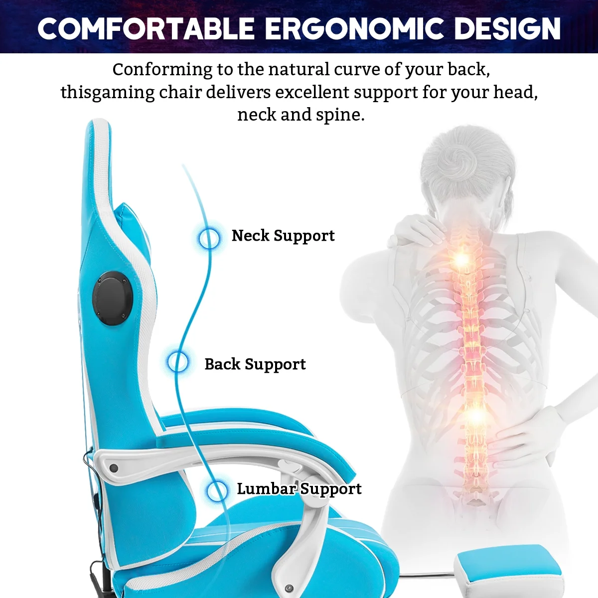 The massage gaming chair features two motors in the waist cushion position for lumbar massage function, providing you ultimate comfort and relaxationErgonomic Design