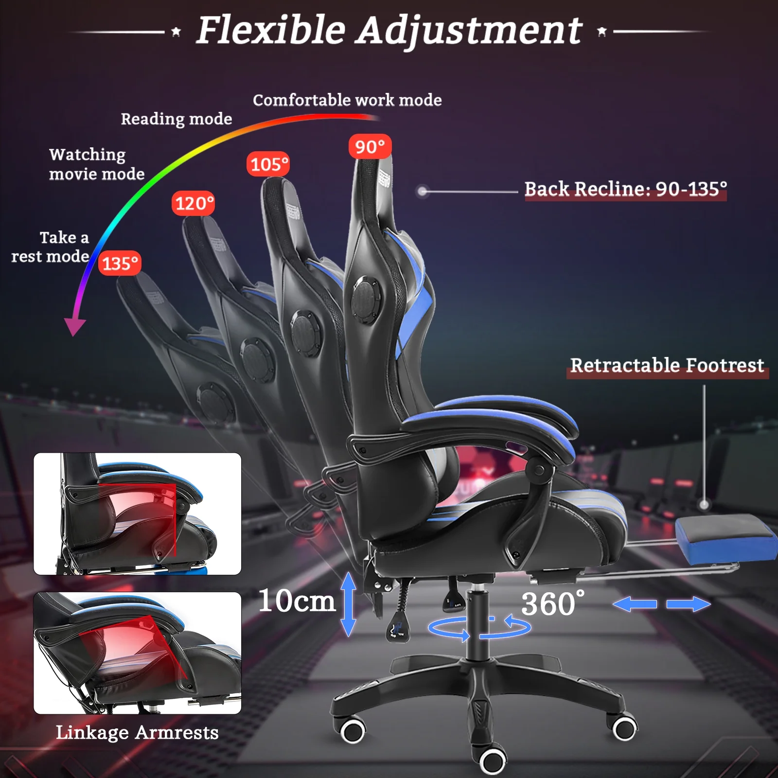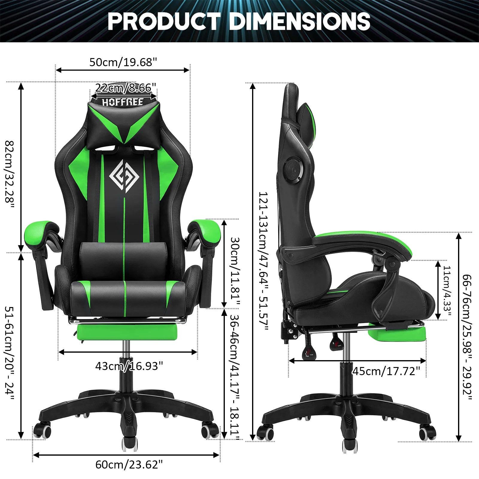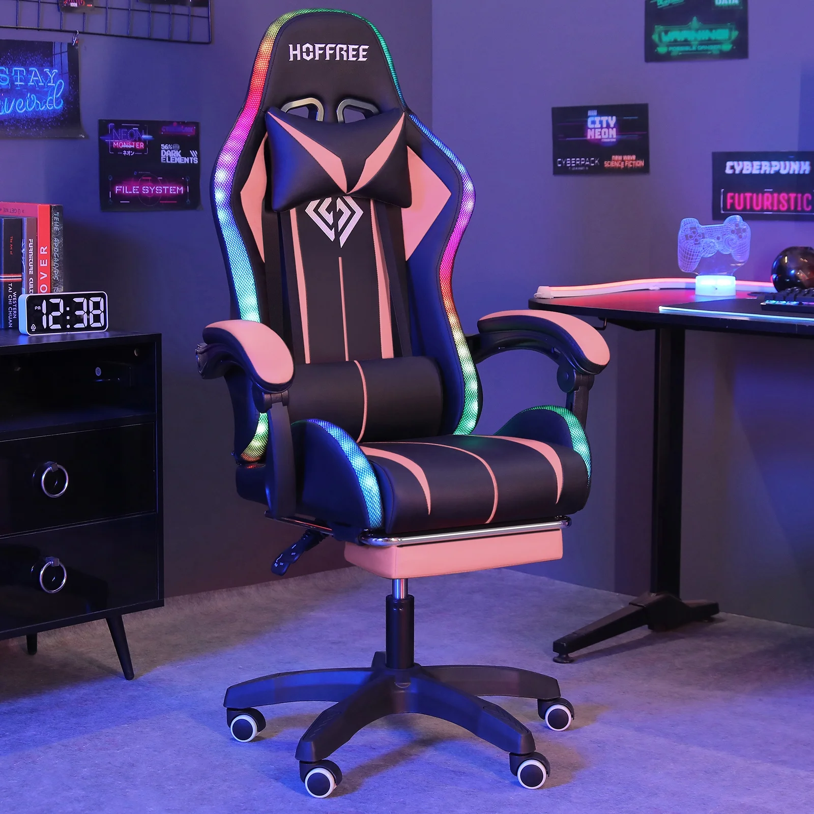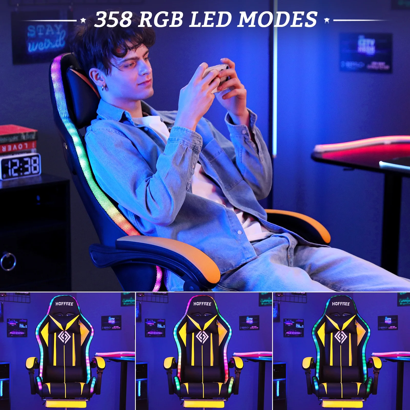 Hoffree Gaming Chair with Bluetooth Speakers and Footrest Massage Office Chair with LED Lights Ergonomic Game Chair High Back with Lumbar Support and Headrest Adjustable Swivel for Adults 300 lb