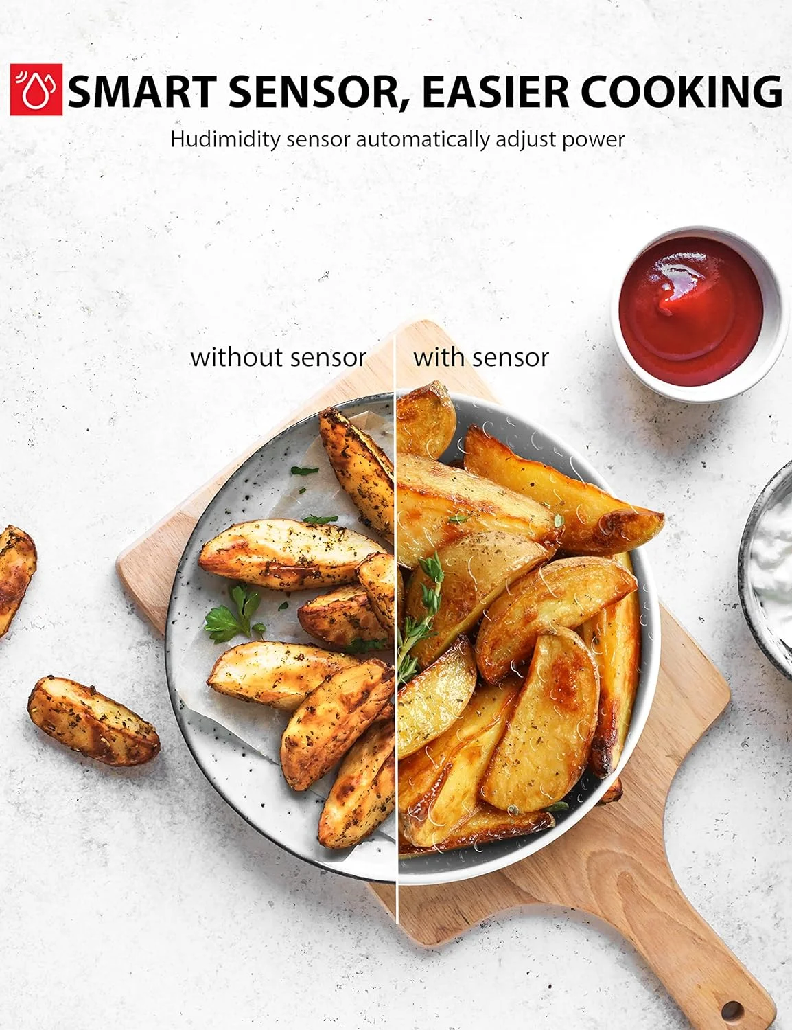 This microwave oven features sensor function that takes the guesswork out from cooking. Built-in sensor constantly detects the humidity level of the food during cooking, then automatically adjusts time and temperature for optimal results.